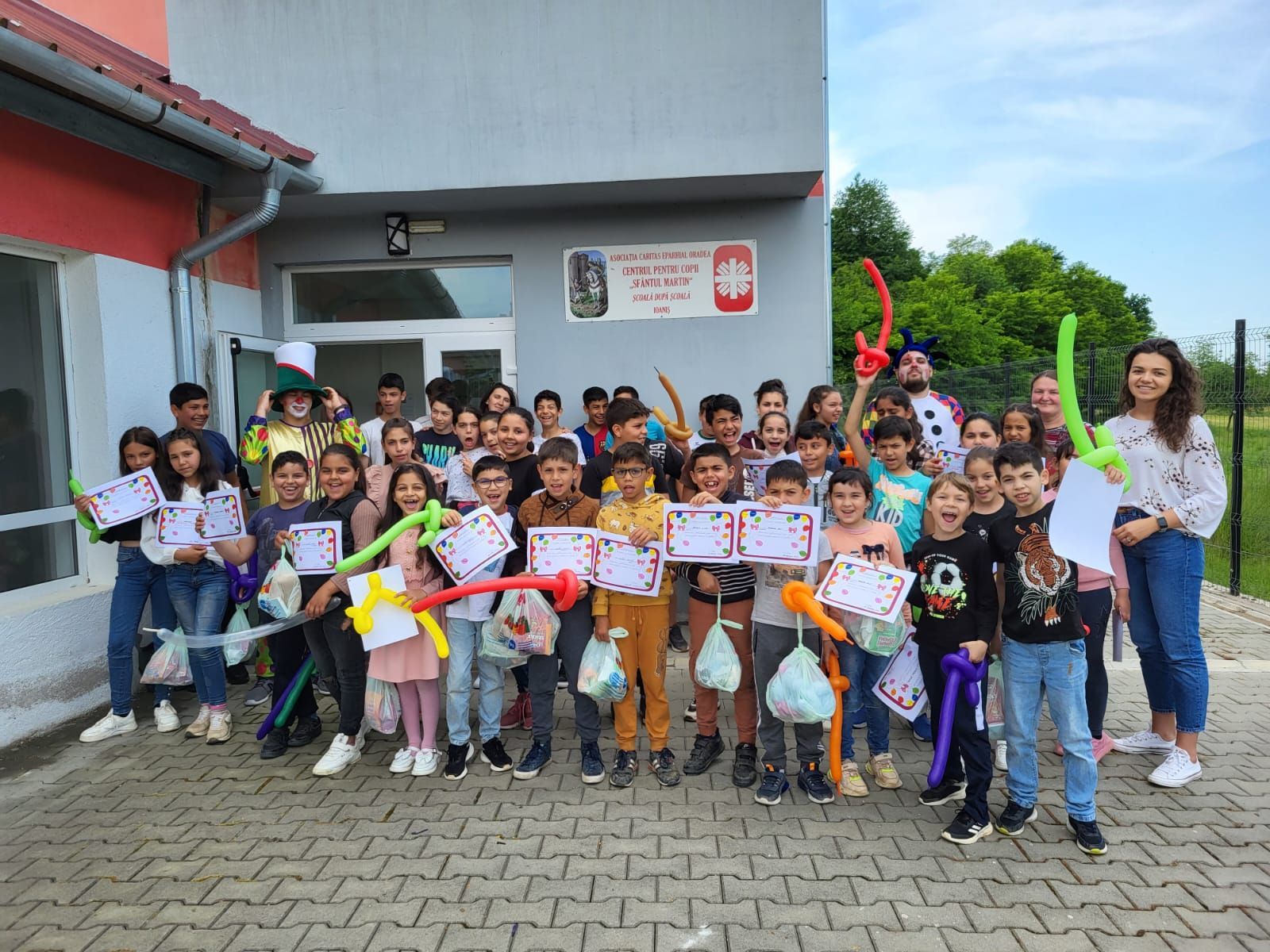Și pentru că ziua de 1 Iunie este o zi liberă, la Centrul after school ”Sfântul Martin” din localitatea Ioaniș, miercuri, 31 mai a.c., a fost o zi de sărbătoare, încărcată cu emoție, cântec și voie bună. Copiii au pregătit poezii, cântece, dans și câteva jocuri pe care le-au realizat împreună cu voluntarii clovni, care au fost mult așteptați de cei mici. Nu au lipsit nici baloanele modelate în formă de floare, fluture, câine și sabie care au înseninat fețele blânde ale copiilor.