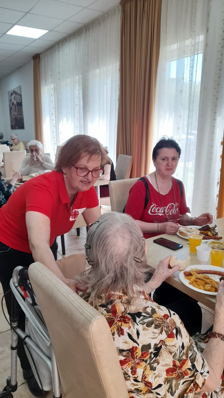 Sărbătoarea a fost marcată de un festin culinar tradițional, pregătit cu dragoste și atenție: mititei sfârâind pe grătar, cârnați rumeniți, slănină friptă și cartofi la cuptor, cafea și suc – toate au adus arome familiare și au deschis pofta de povești și zâmbete. Fiice, fii, nepoți, frați și prieteni ai rezidenților s-au alăturat evenimentului, întărind sentimentul de familie extinsă și solidaritate.
