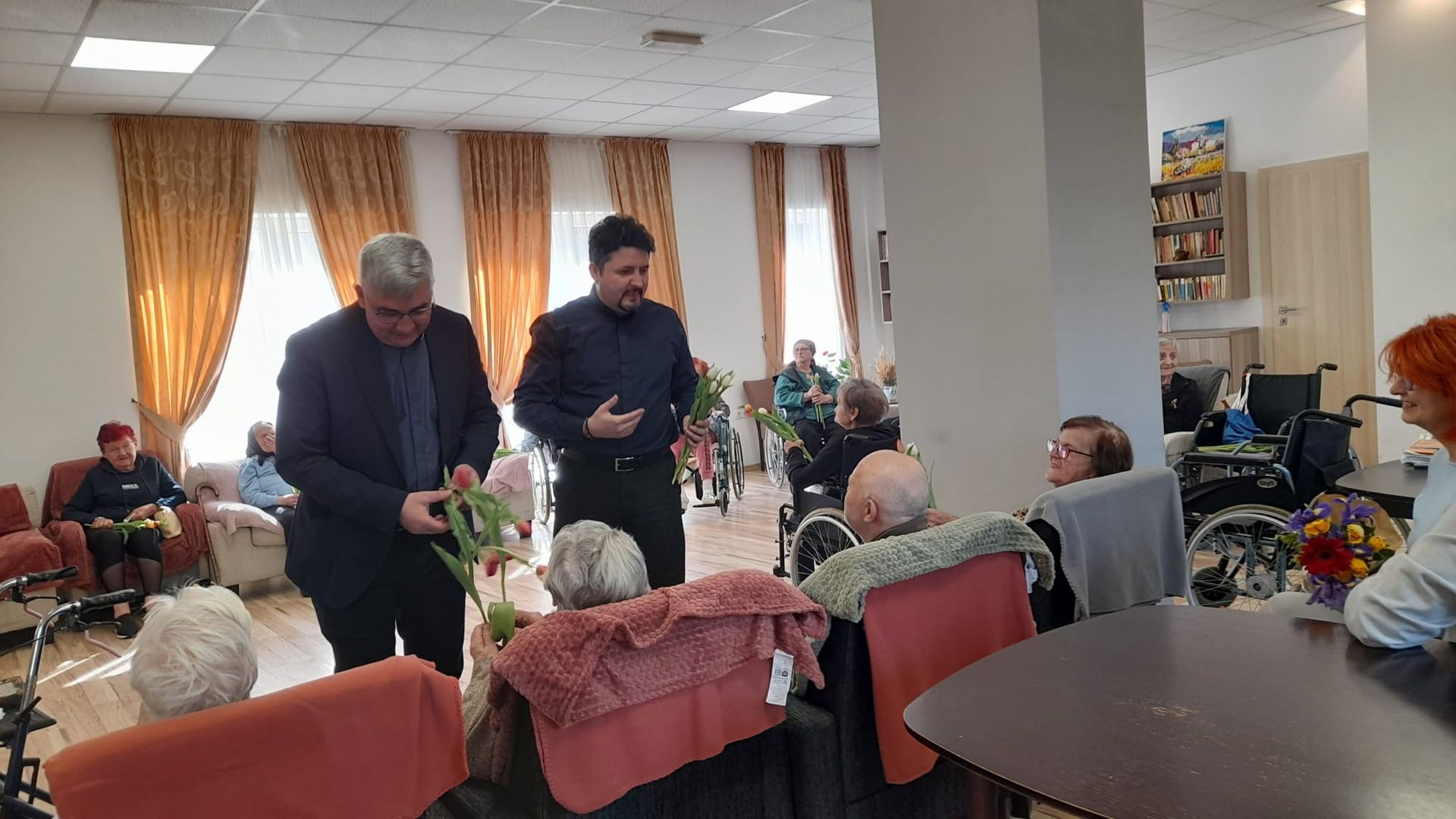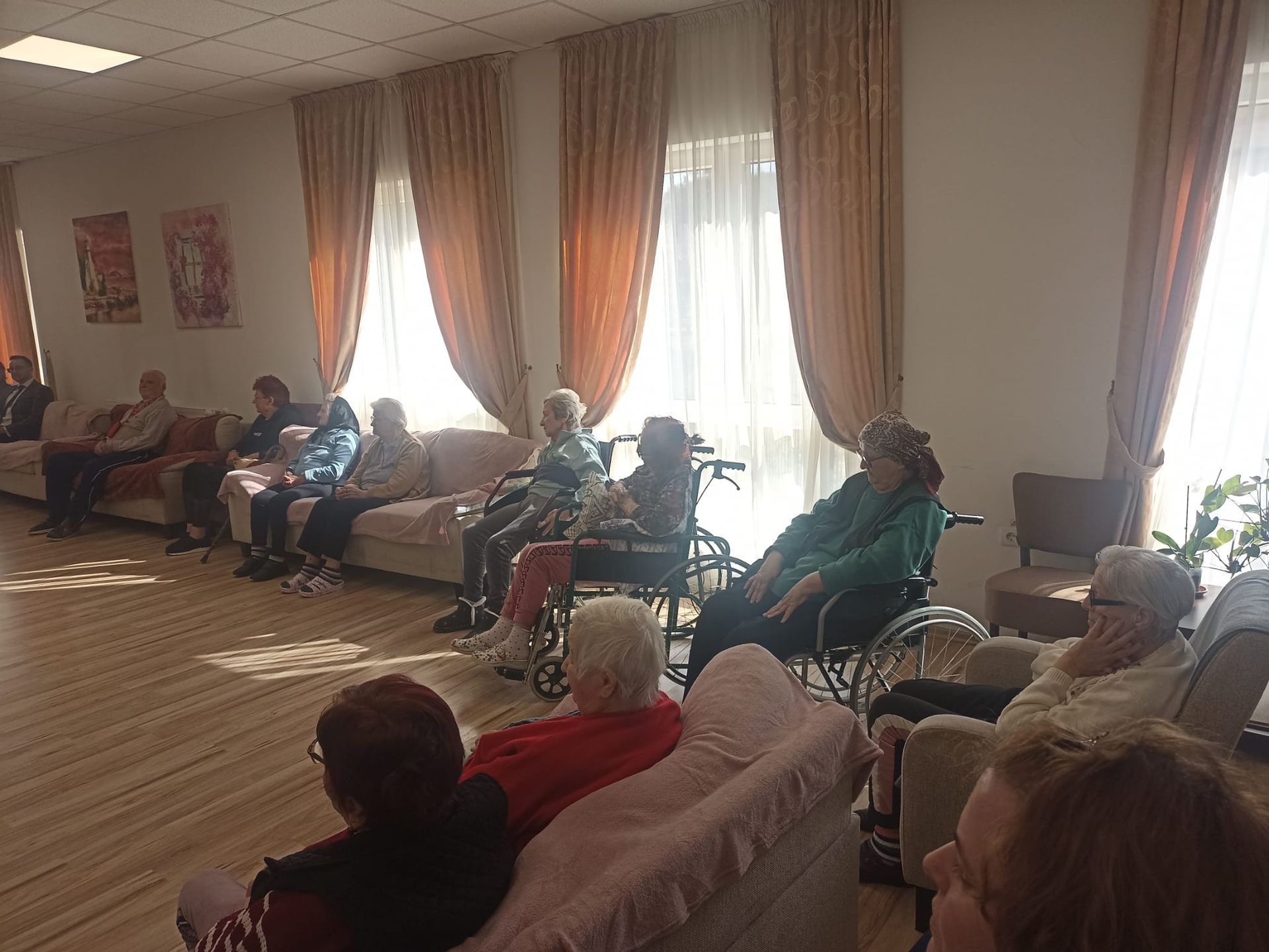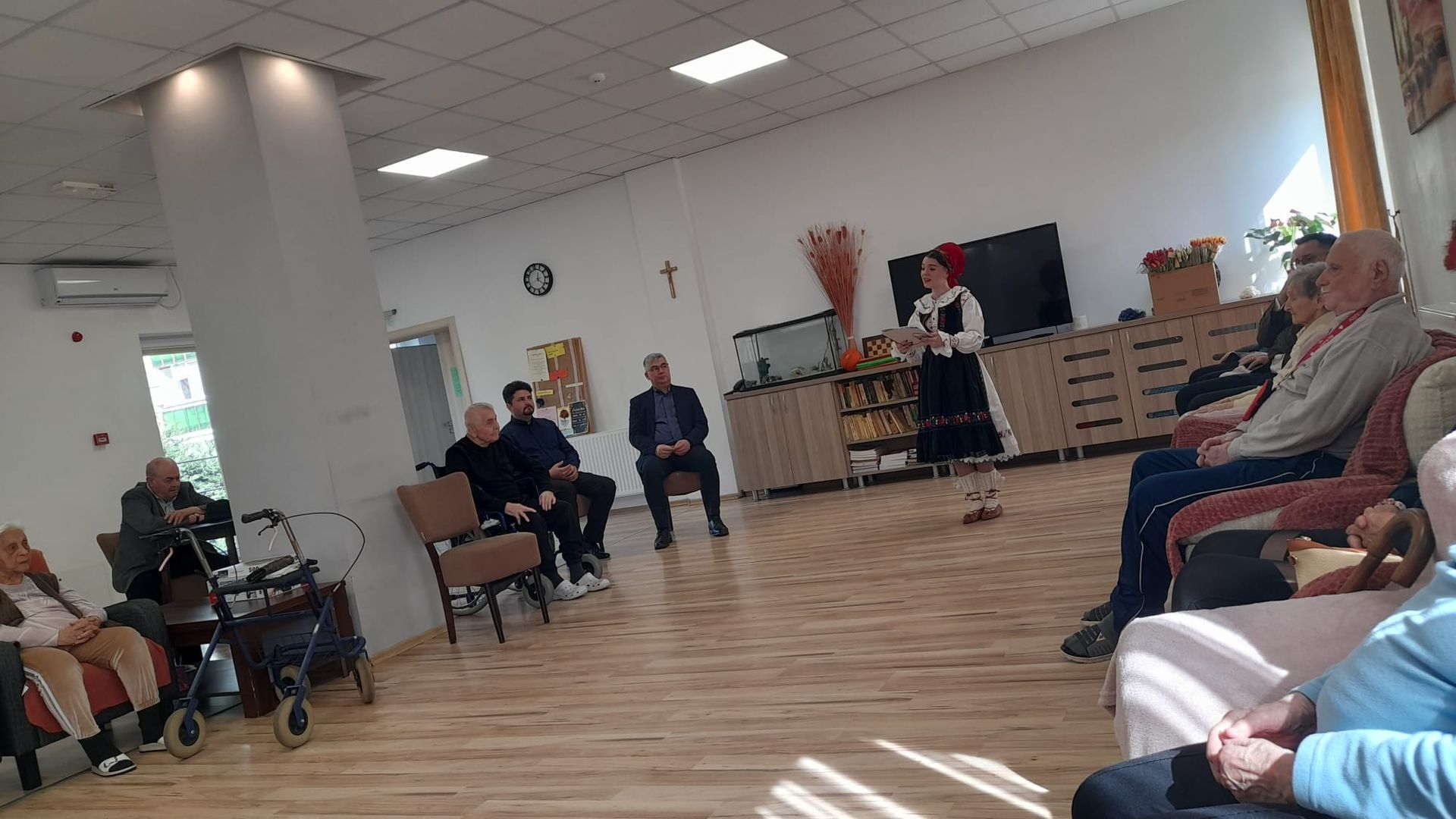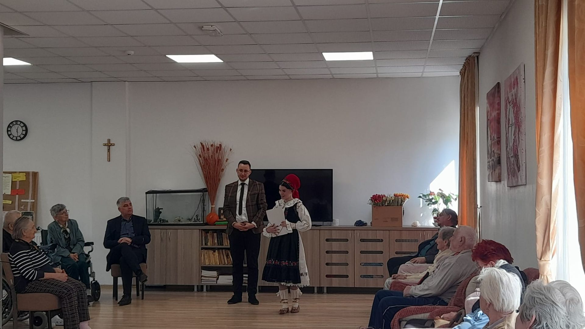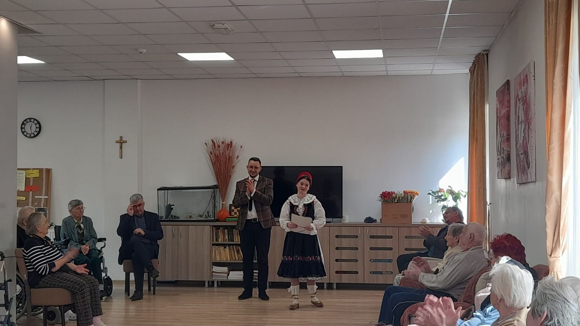 Pr. Ștefan Madarasi a vorbit în deschiderea evenimentului, prezentând interpreta care a adus nostalgii și licăriri de bucurie rezidentelor noastre și dorind rezidentelor centrului o zi și o primăvară senine!