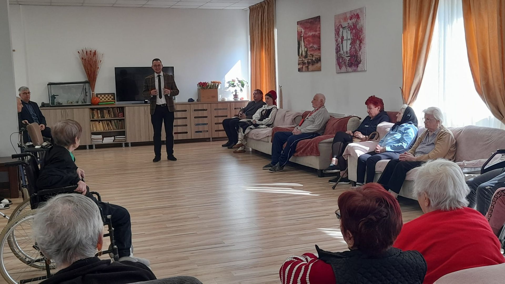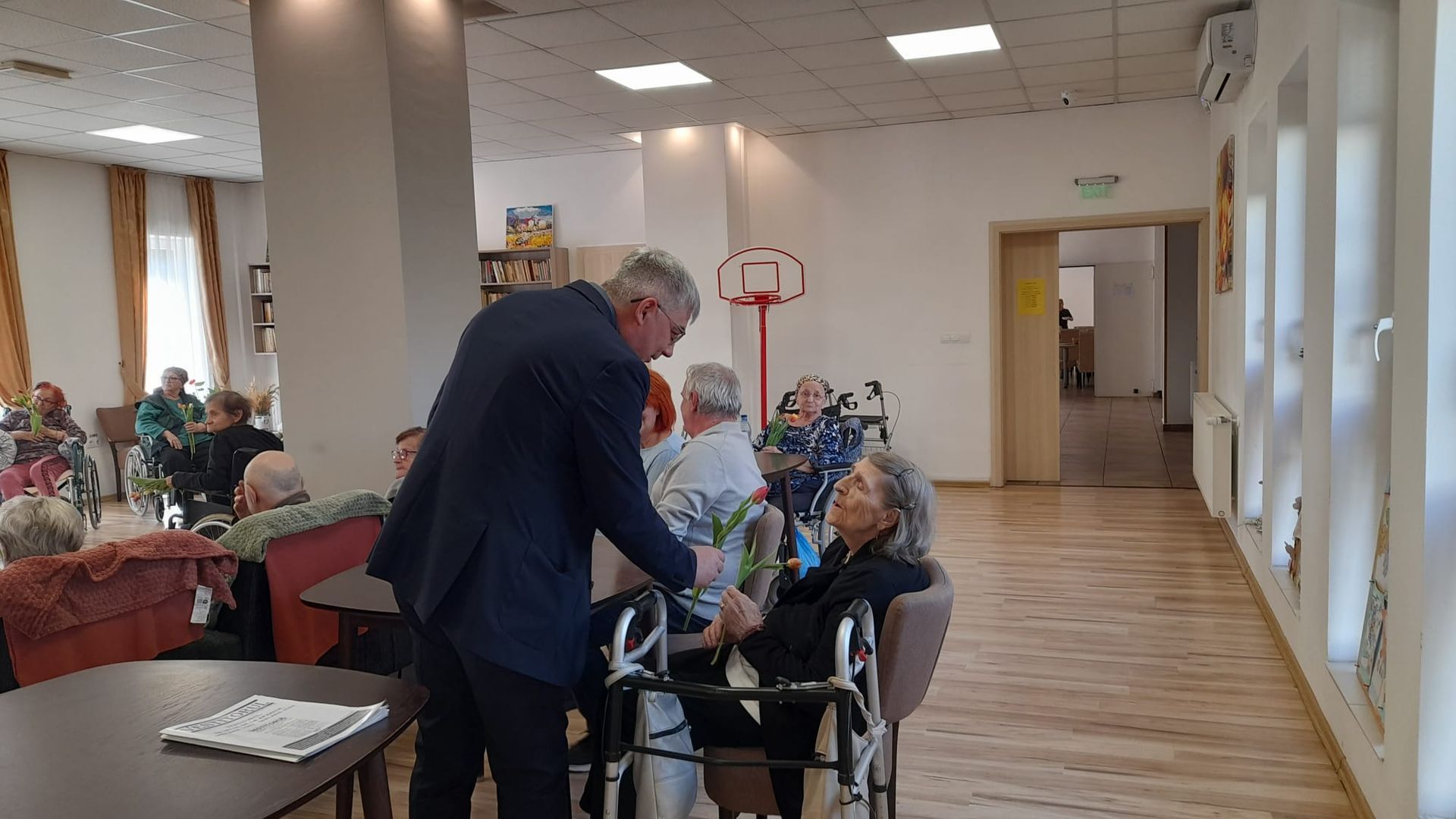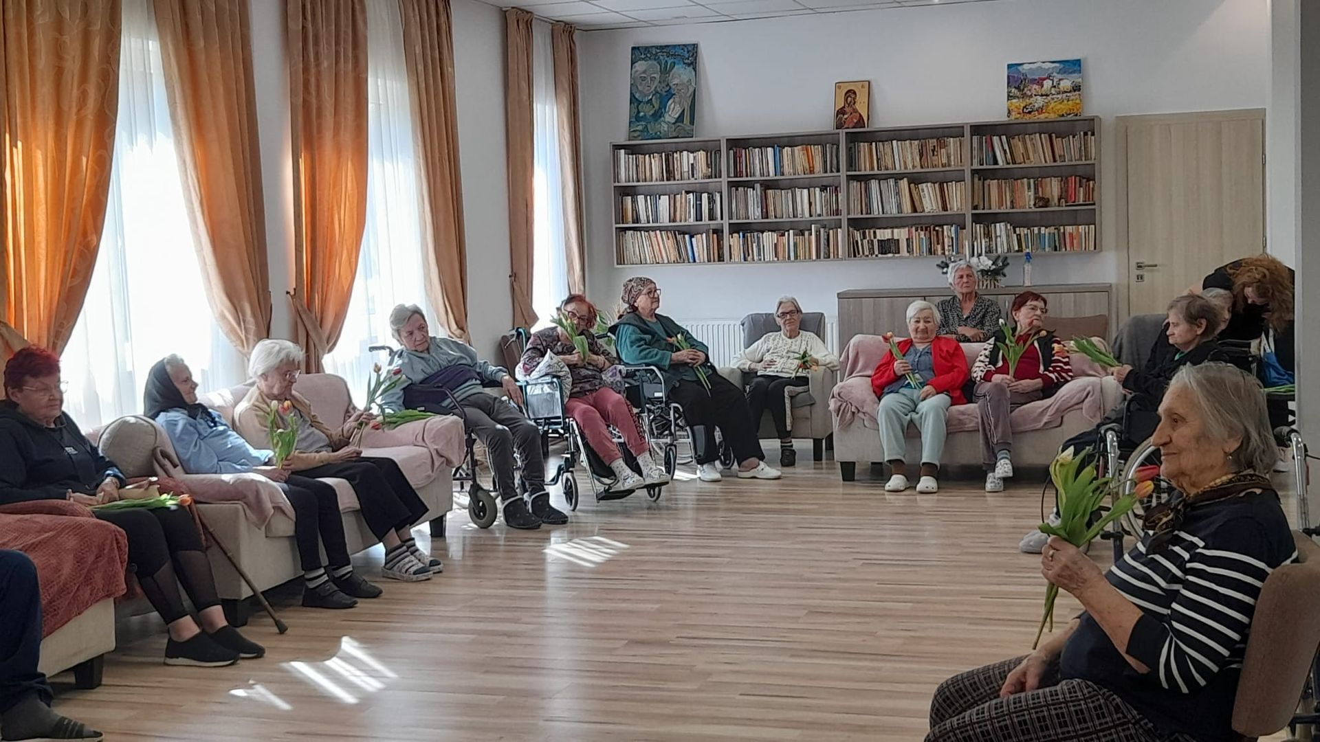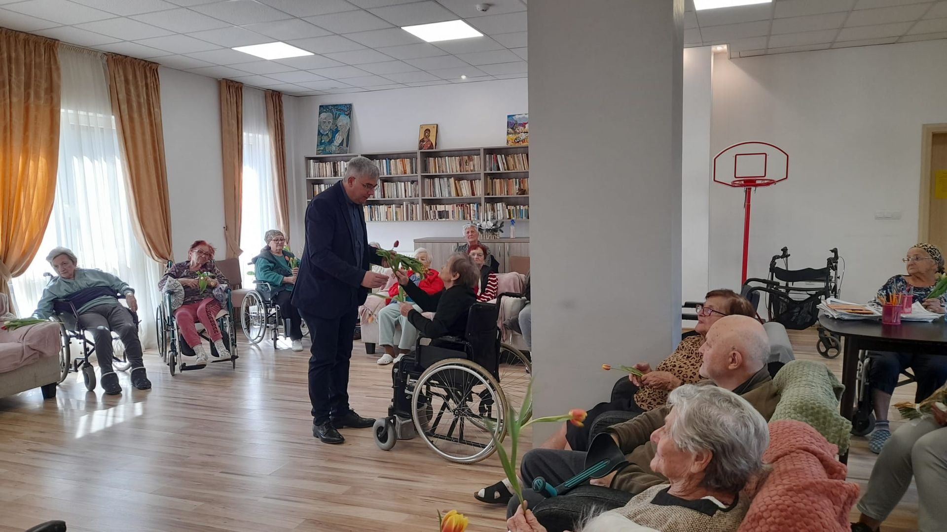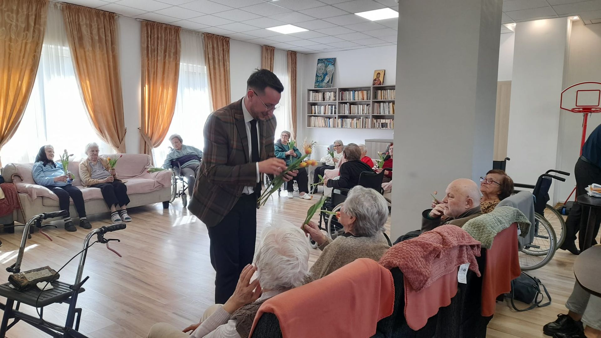 Pr. Ștefan Madarasi a vorbit în deschiderea evenimentului, prezentând interpreta care a adus nostalgii și licăriri de bucurie rezidentelor noastre și dorind rezidentelor centrului o zi și o primăvară senine!