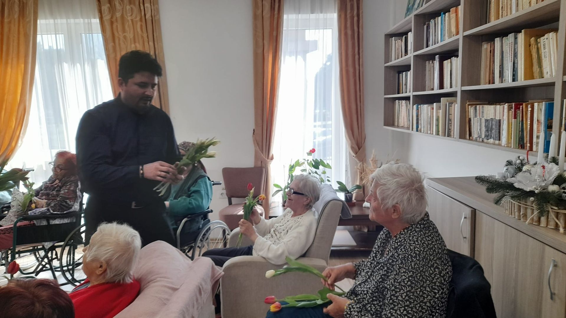 Momentul a fost unul vesel și emoționant, presărat cu îmbrățișări, odată cu gestul părintelui Ștefan Madarasi, părintelui Alexandru Fiț și părintelui Valentin Ilea, de a oferi fiecărei rezidente flori, adresându-le câte o vorbă prin care să însenineze și mai mult atmosfera.