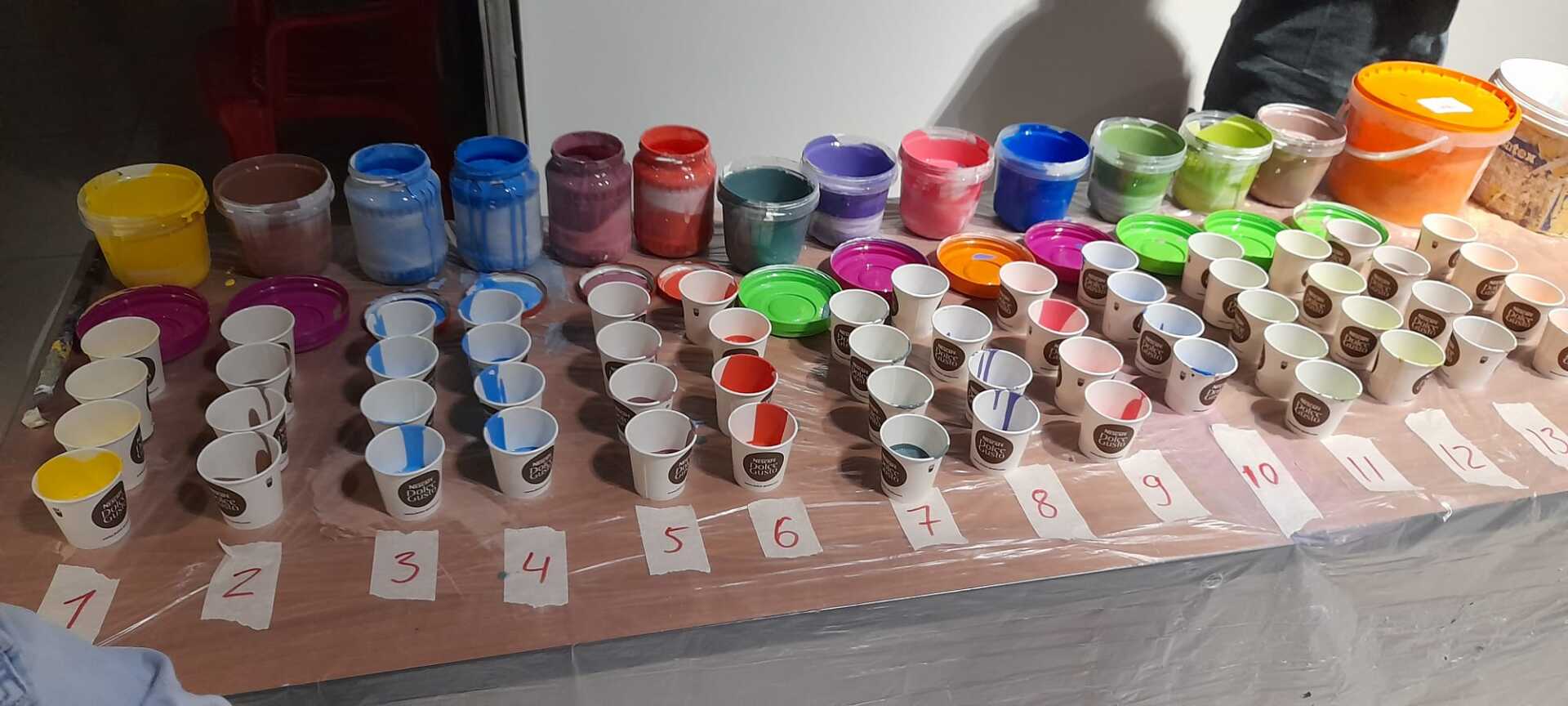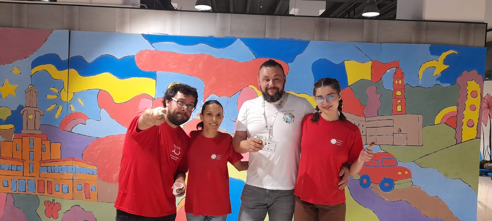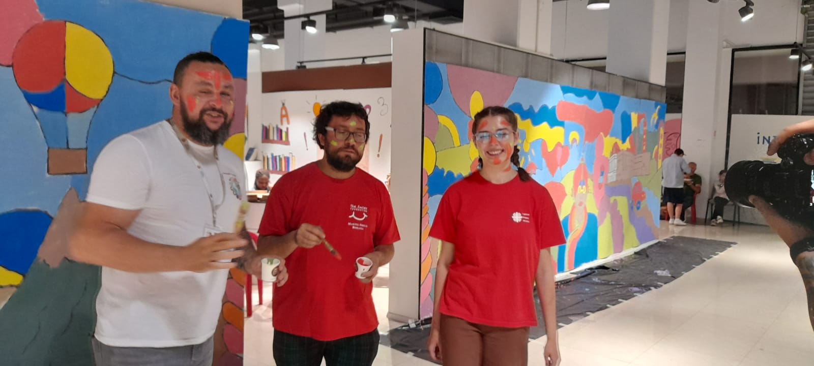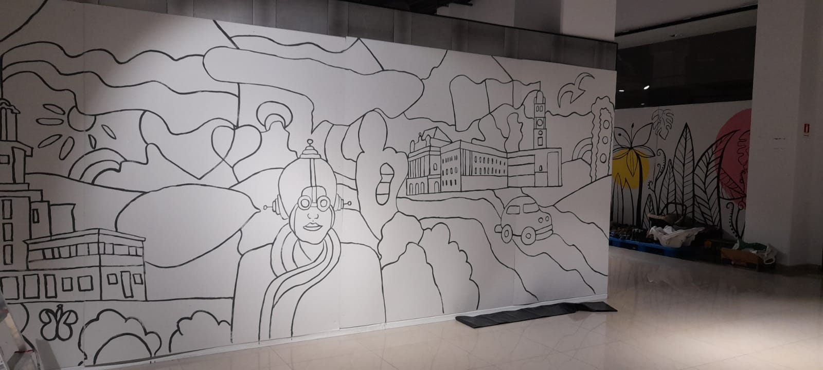 a atras atenția artistului, care a pregătit conturul mural urmând ca la final să rezulte un desen durabil și luminos, realizat prin creativitatea comună a copiilor.
