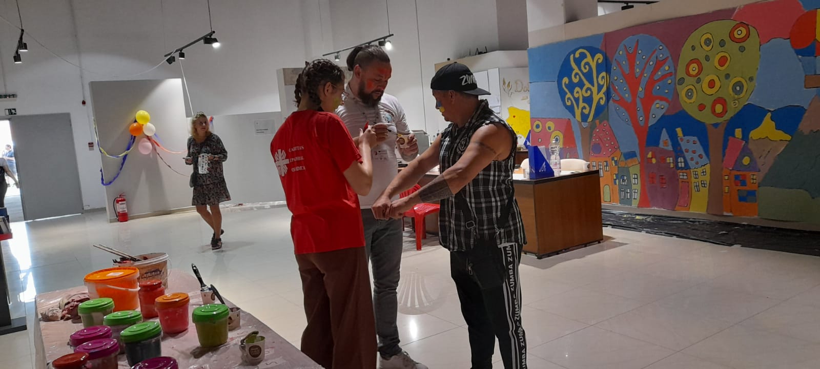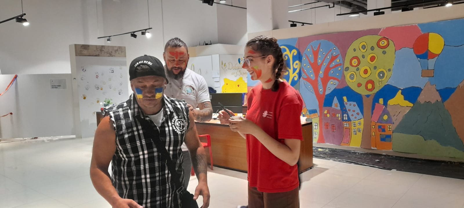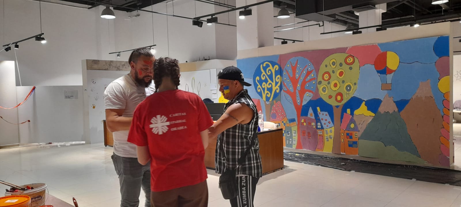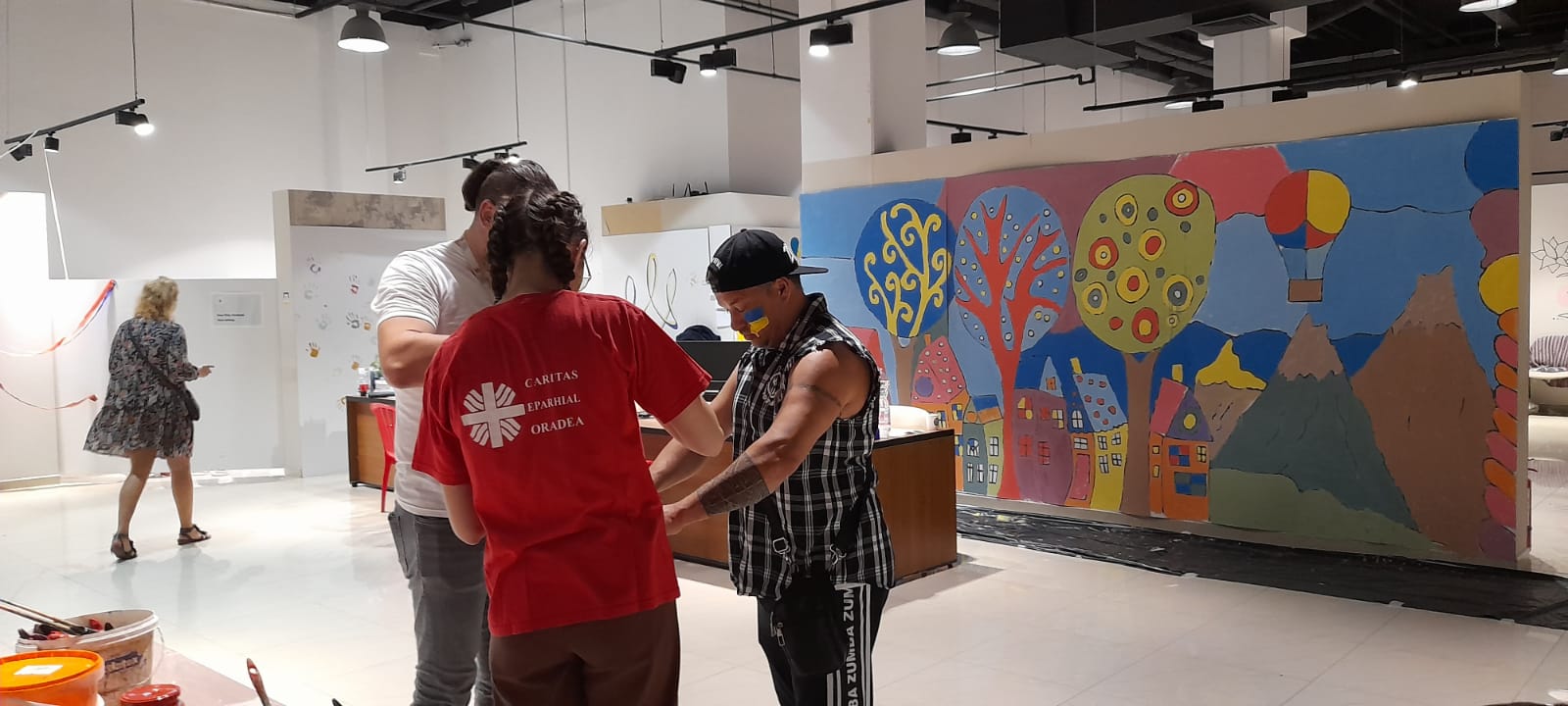 - artist ucrainean care, în cei 9 ani de activitate, în cadrul studioului său din Odessa, „Peach”, a realizat peste 800 de proiecte vizuale - a acceptat propunerea de a coordona un proiect de pictură murală, ca ultimă activitate a Centrului de Primire și Asistență Refugiați Bihor,