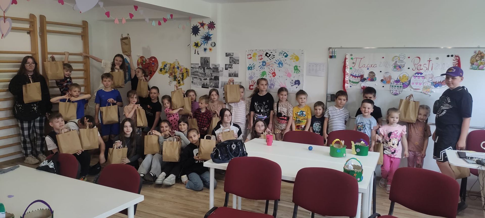 de diferite vârste au vorbit despre istoria și tradițiile sărbătorii, au vizionat un desen animat despre învierea lui Isus, au confecționat coșuri și ouă de Paști și s-au jucat împreună. Au servit pizza și au participat la loteria-surpriză gândită pentru ei, în urma căreia au primit cadouri dulci din partea Asociației Caritas Eparhial Oradea.