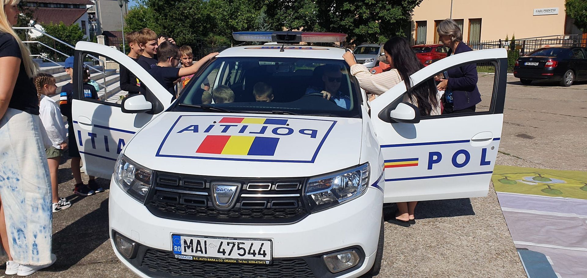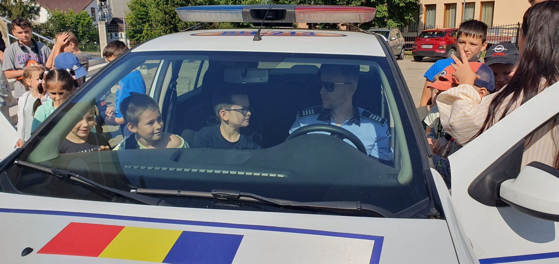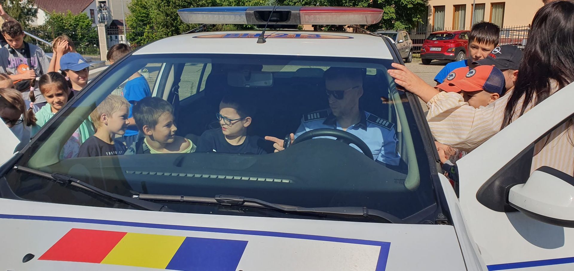 În plus, mulțumită explicațiilor oferite de reprezentanții poliției, elevii au reactualizat măsurile de precauție și prevenție și obiectele necesare pentru a asigura siguranța corporală în trafic. Spre bucuria copiilor din clasele primare, aceștia au fost invitați să descopere mașina de poliție și să testeze toate elementele ei specifice: girofar, stație, sirenă.