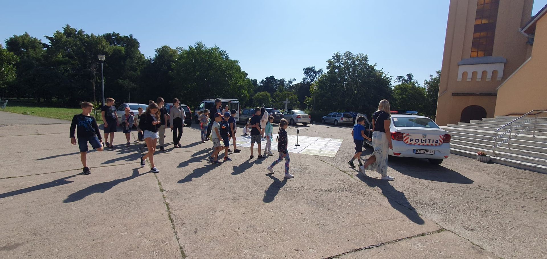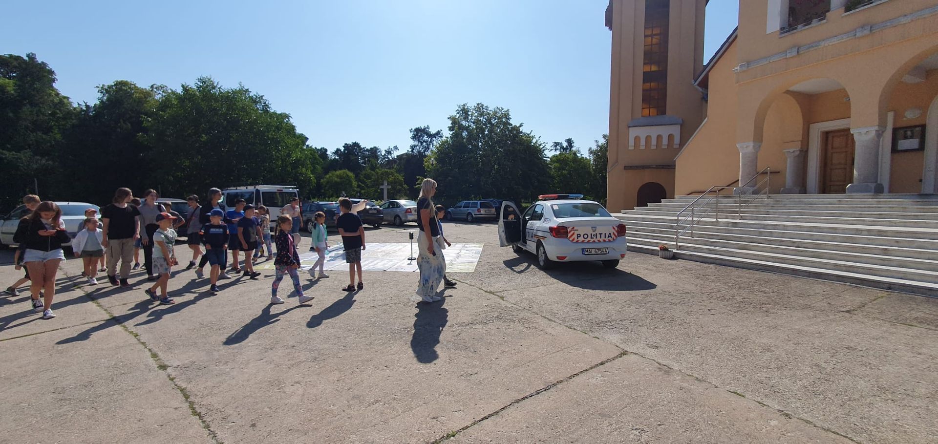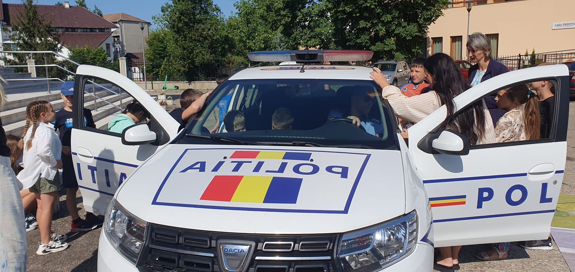 În plus, mulțumită explicațiilor oferite de reprezentanții poliției, elevii au reactualizat măsurile de precauție și prevenție și obiectele necesare pentru a asigura siguranța corporală în trafic. Spre bucuria copiilor din clasele primare, aceștia au fost invitați să descopere mașina de poliție și să testeze toate elementele ei specifice: girofar, stație, sirenă.
