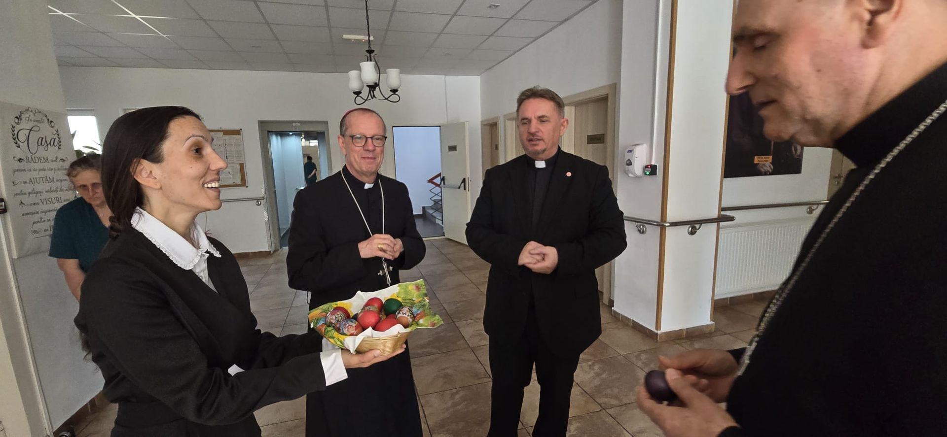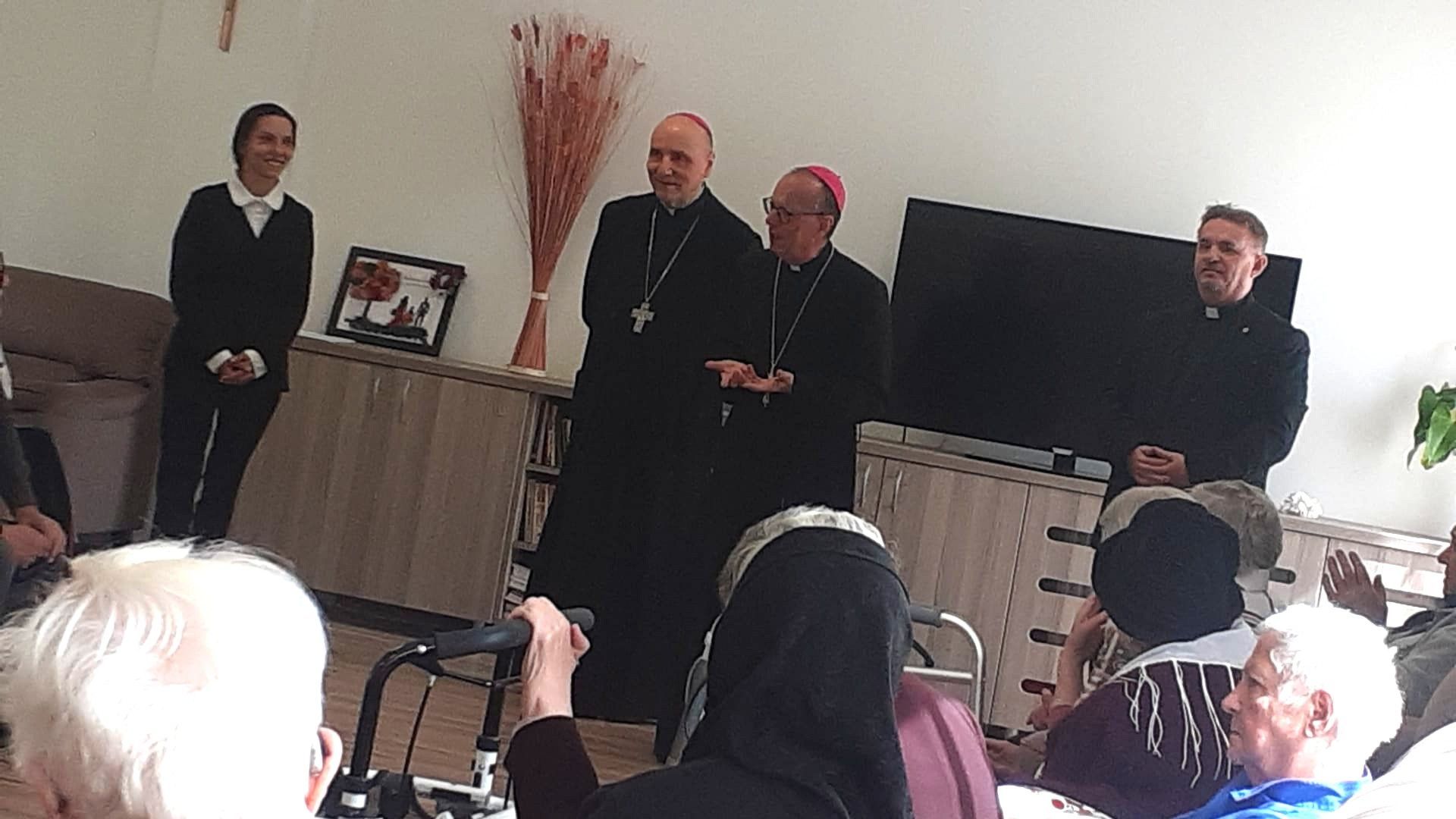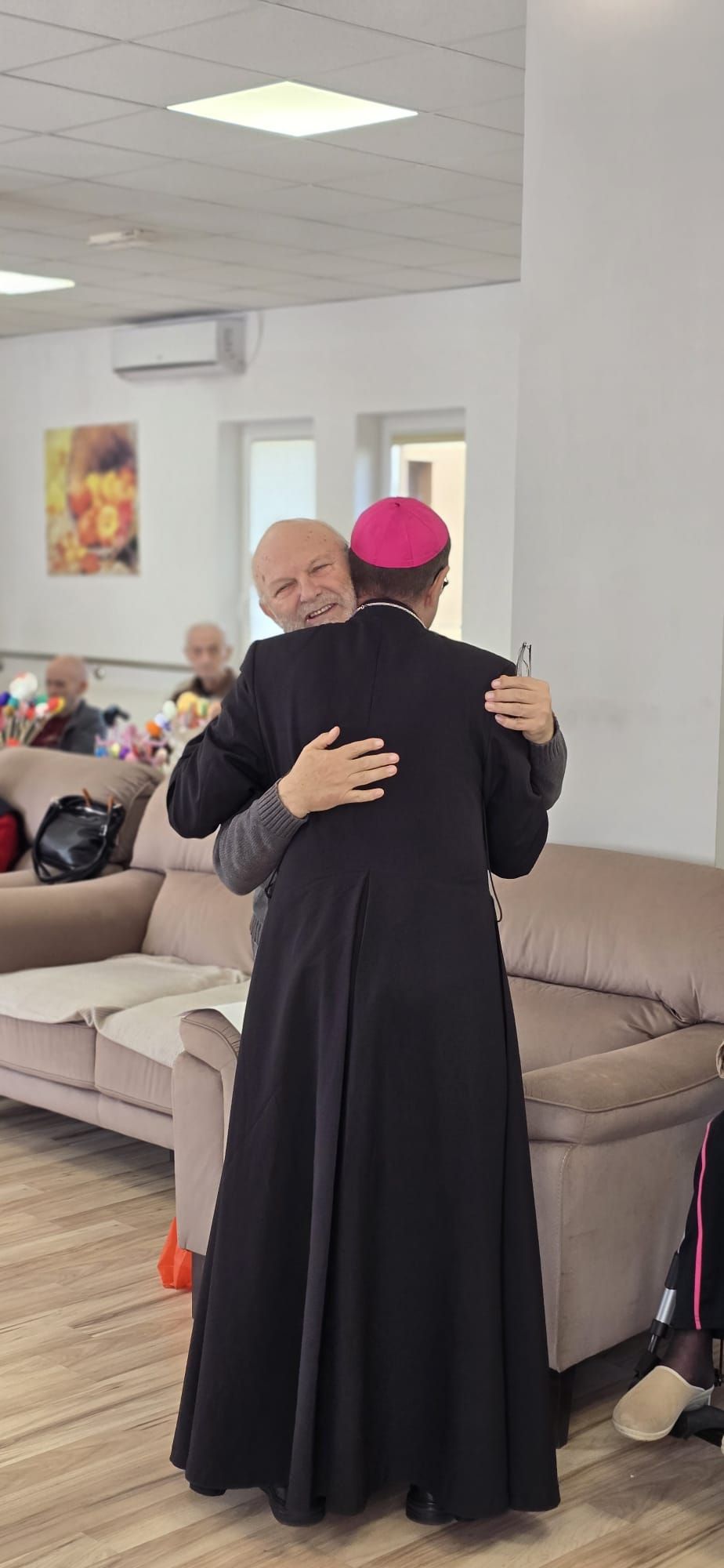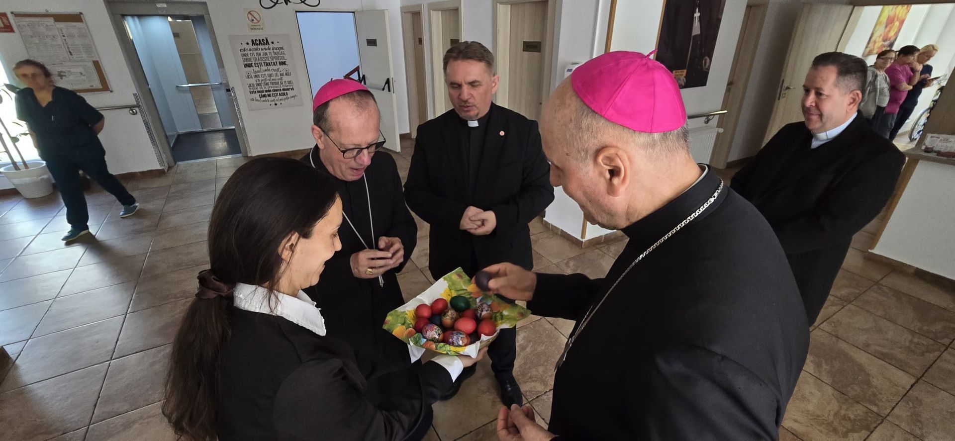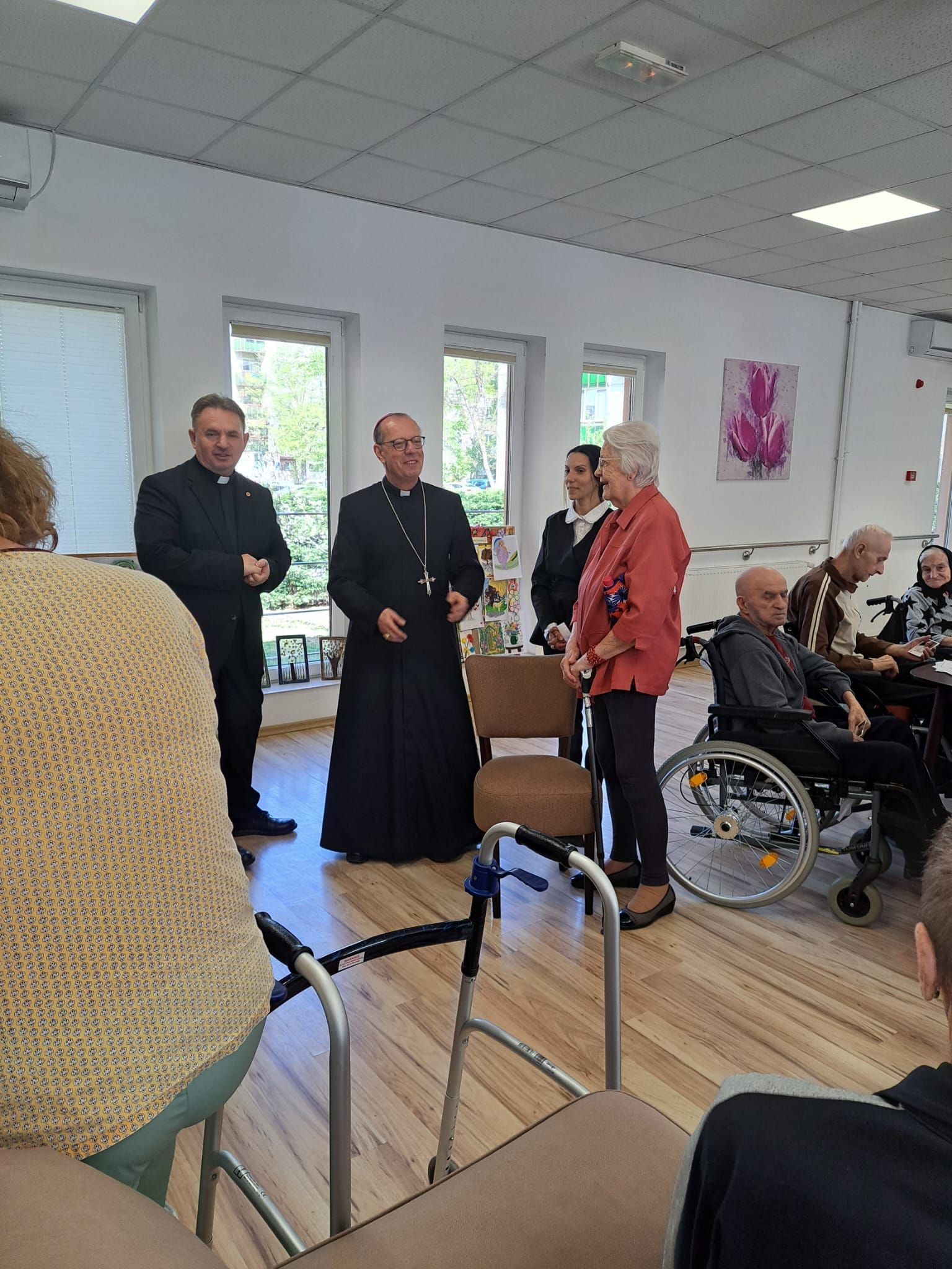 Într-o atmosferă caldă, plină de sensibilitate și trăire creștină, rezidenții „Casei Frențiu” au avut parte de o surpriză deosebită: întâlnirea cu Preasfinția Sa Virgil Bercea, Episcopul greco-catolic de Oradea și cu Excelența Sa Monseniorul Giampiero Gloder, Nunțiul Apostolic în România și în Republica Moldova. Oaspeți care au adus alinare, speranță și un sentiment profund de binecuvântare astăzi, 11 aprilie a.c. Alături de aceștia s-au aflat și președintele Asociației Caritas Eparhial Oradea, pr. Olimpiu Todorean precum și pr. Mihai Vătămănelu, vicar general.