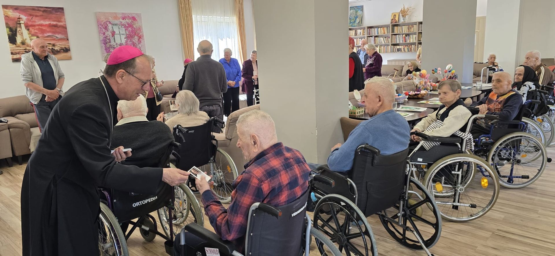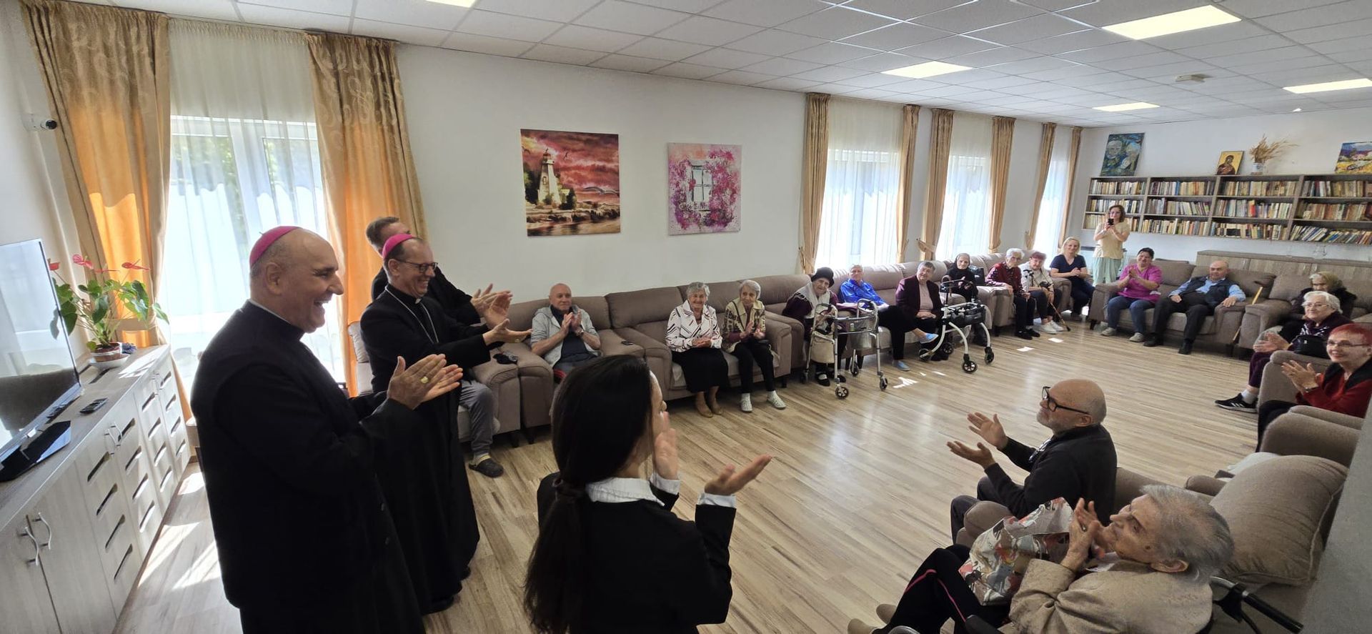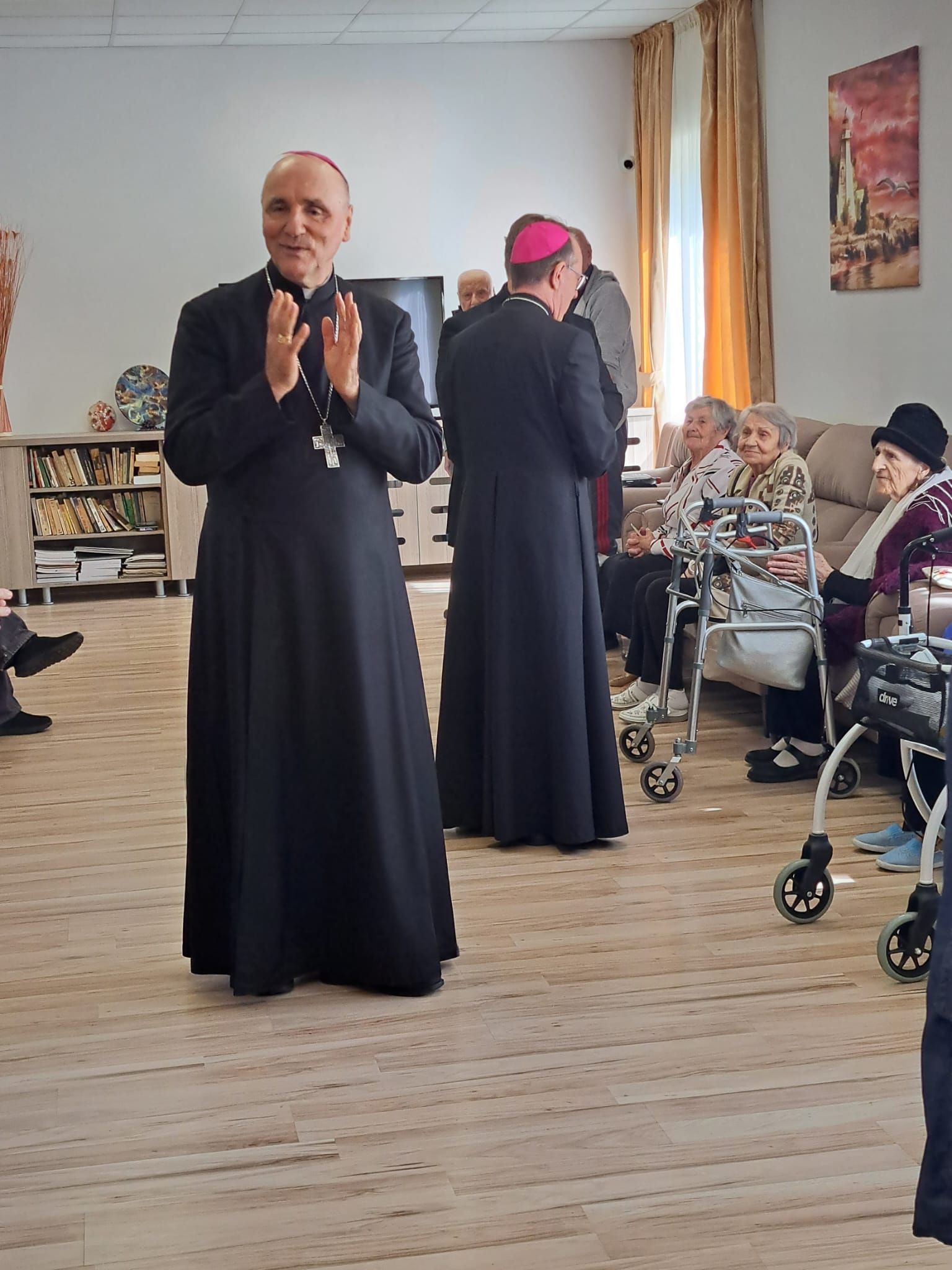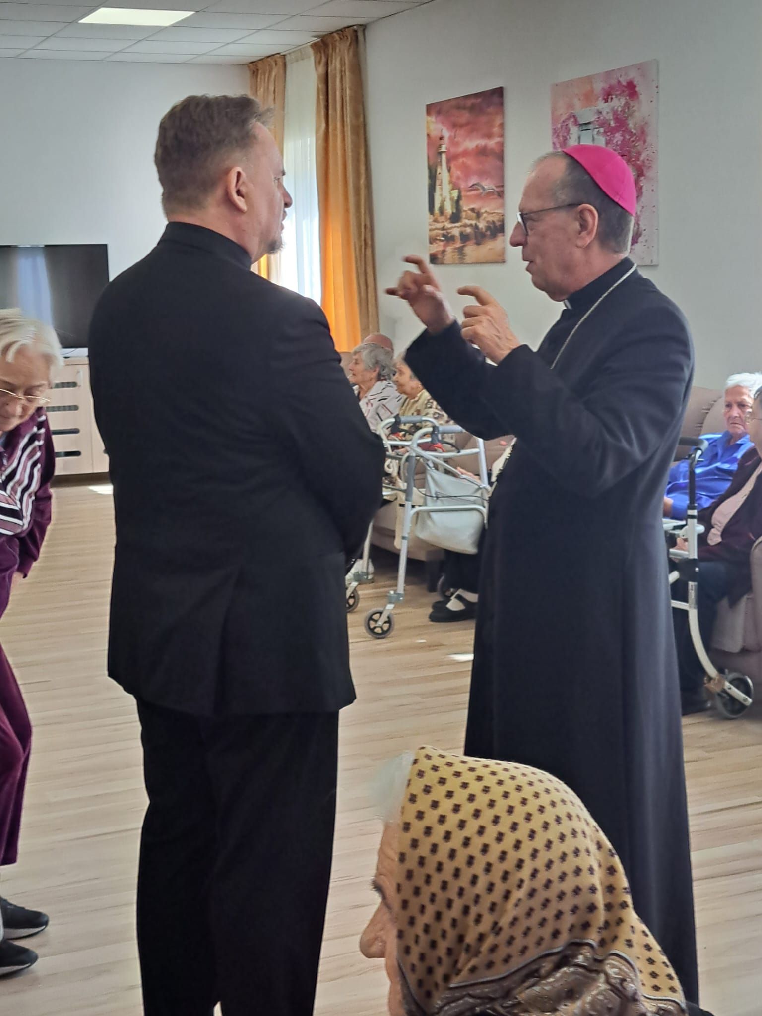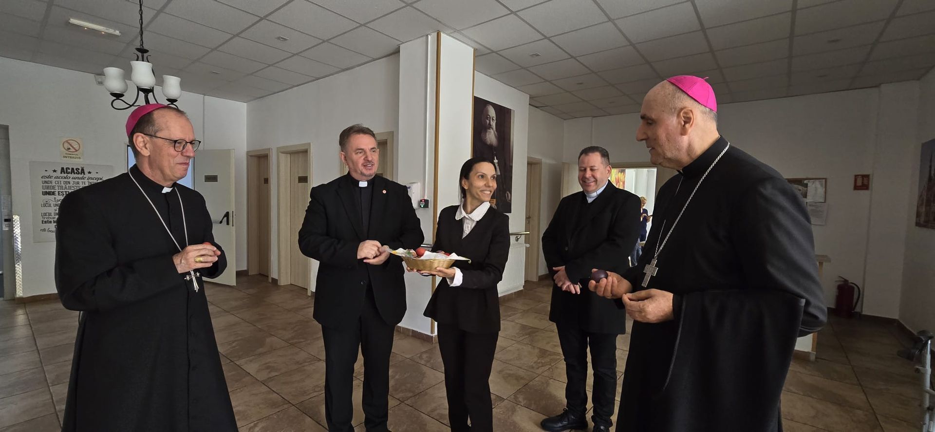 Într-o atmosferă caldă, plină de sensibilitate și trăire creștină, rezidenții „Casei Frențiu” au avut parte de o surpriză deosebită: întâlnirea cu Preasfinția Sa Virgil Bercea, Episcopul greco-catolic de Oradea și cu Excelența Sa Monseniorul Giampiero Gloder, Nunțiul Apostolic în România și în Republica Moldova. Oaspeți care au adus alinare, speranță și un sentiment profund de binecuvântare astăzi, 11 aprilie a.c. Alături de aceștia s-au aflat și președintele Asociației Caritas Eparhial Oradea, pr. Olimpiu Todorean precum și pr. Mihai Vătămănelu, vicar general.
