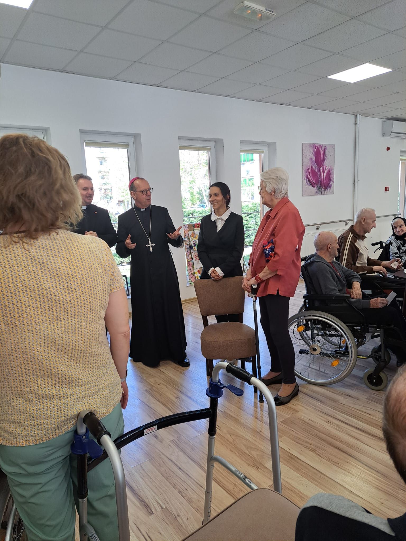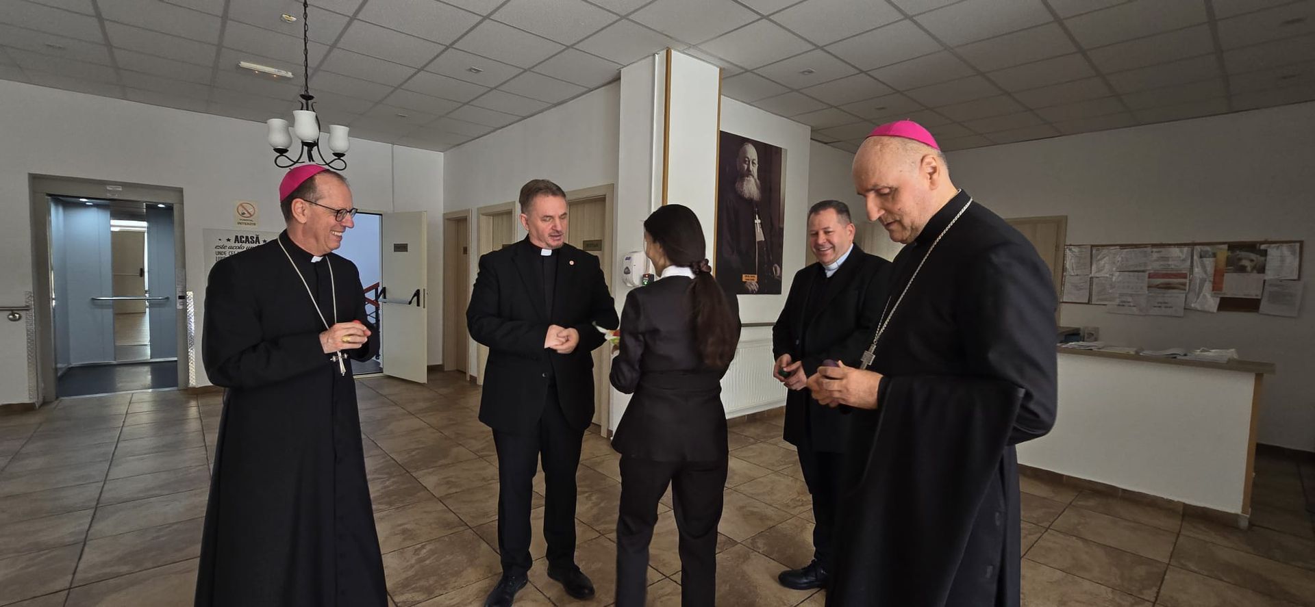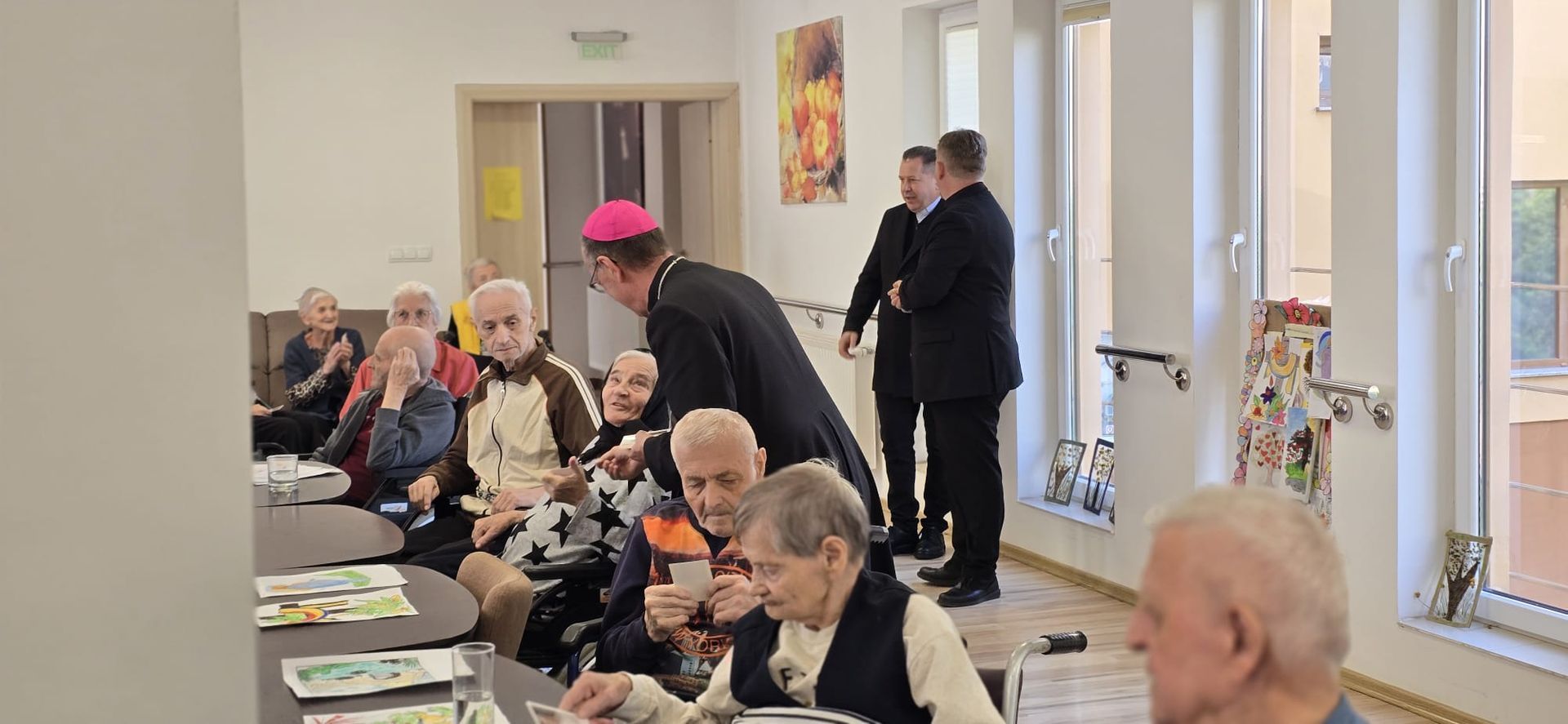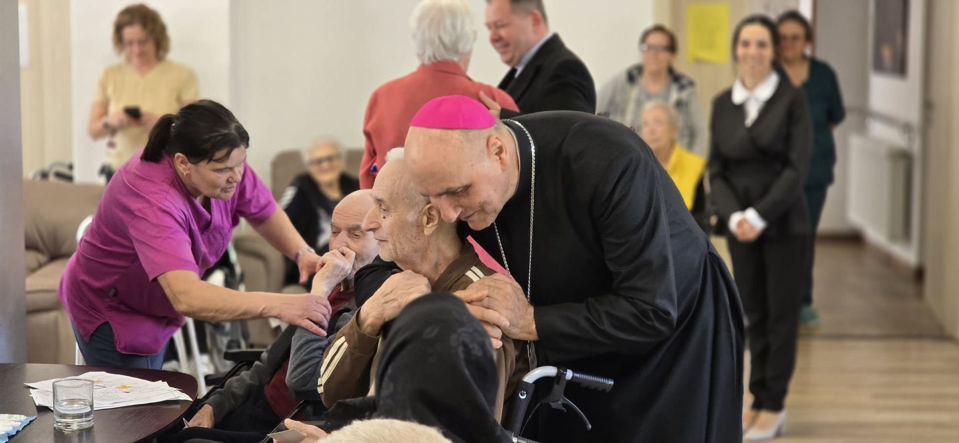 Într-o atmosferă caldă, plină de sensibilitate și trăire creștină, rezidenții „Casei Frențiu” au avut parte de o surpriză deosebită: întâlnirea cu Preasfinția Sa Virgil Bercea, Episcopul greco-catolic de Oradea și cu Excelența Sa Monseniorul Giampiero Gloder, Nunțiul Apostolic în România și în Republica Moldova. Oaspeți care au adus alinare, speranță și un sentiment profund de binecuvântare astăzi, 11 aprilie a.c. Alături de aceștia s-au aflat și președintele Asociației Caritas Eparhial Oradea, pr. Olimpiu Todorean precum și pr. Mihai Vătămănelu, vicar general.