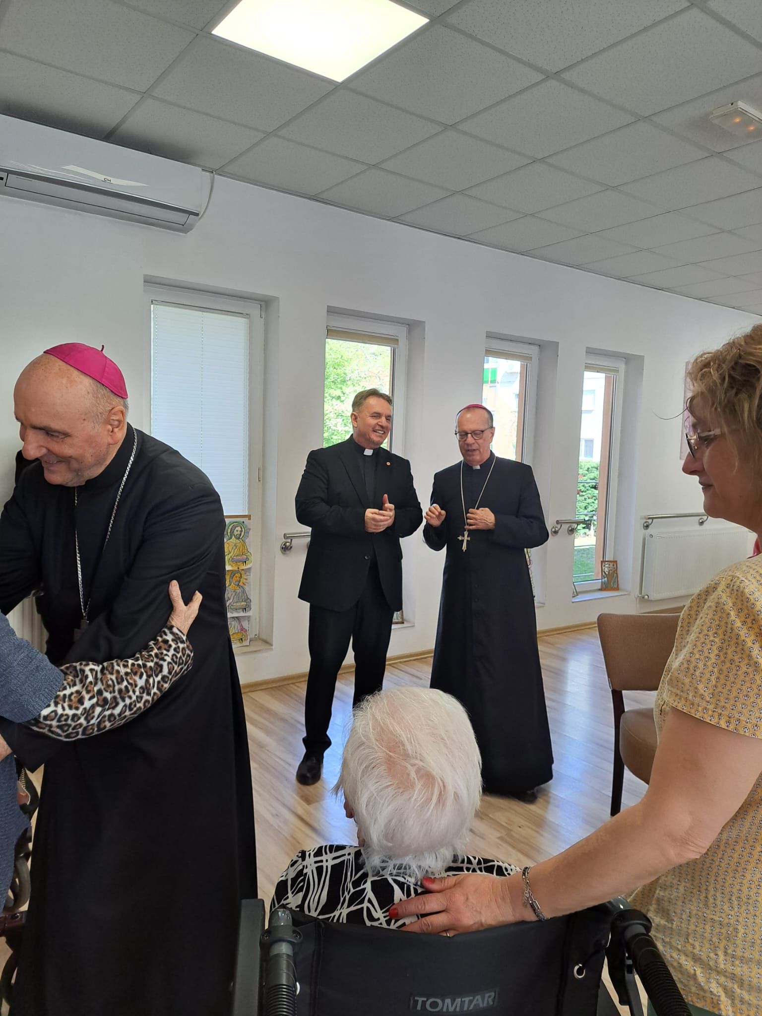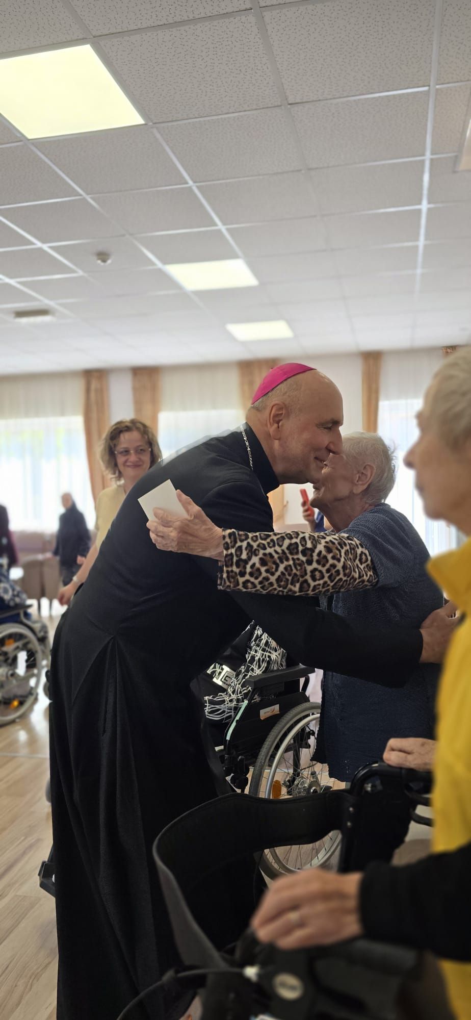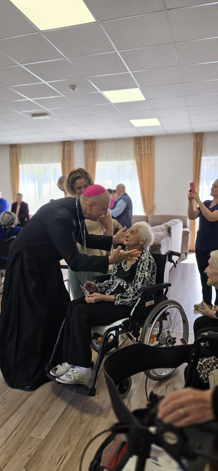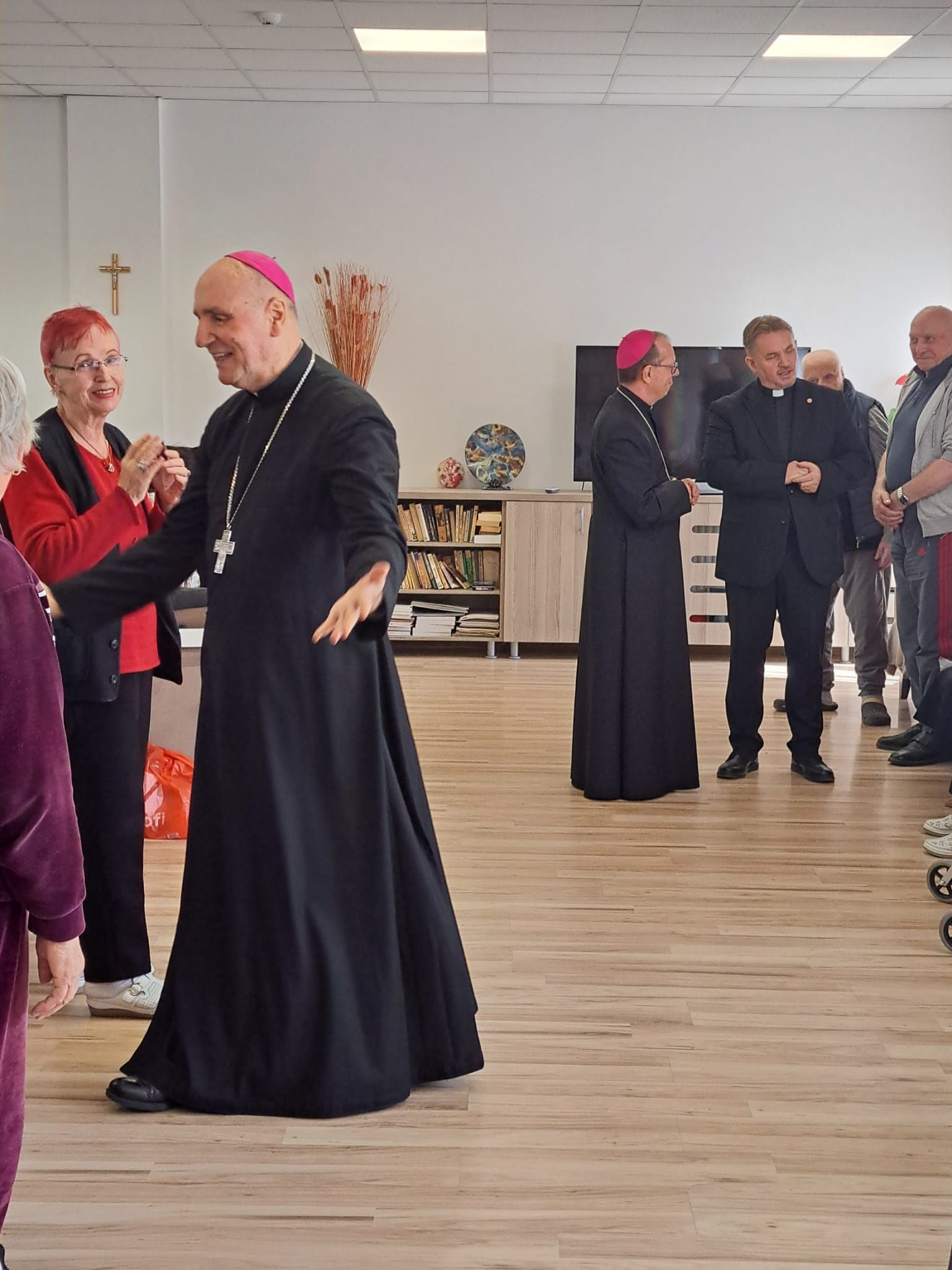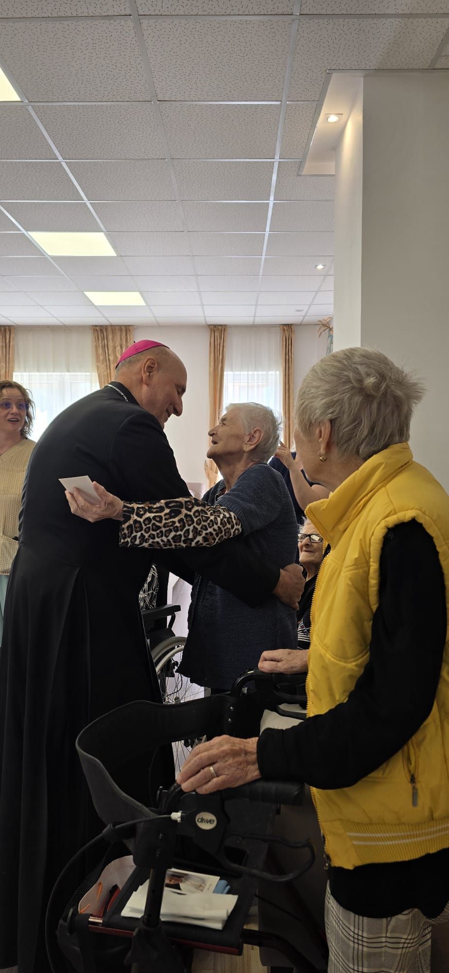 Într-o atmosferă caldă, plină de sensibilitate și trăire creștină, rezidenții „Casei Frențiu” au avut parte de o surpriză deosebită: întâlnirea cu Preasfinția Sa Virgil Bercea, Episcopul greco-catolic de Oradea și cu Excelența Sa Monseniorul Giampiero Gloder, Nunțiul Apostolic în România și în Republica Moldova. Oaspeți care au adus alinare, speranță și un sentiment profund de binecuvântare astăzi, 11 aprilie a.c. Alături de aceștia s-au aflat și președintele Asociației Caritas Eparhial Oradea, pr. Olimpiu Todorean precum și pr. Mihai Vătămănelu, vicar general.