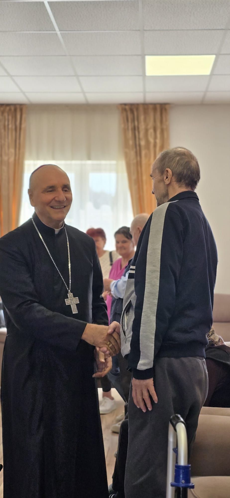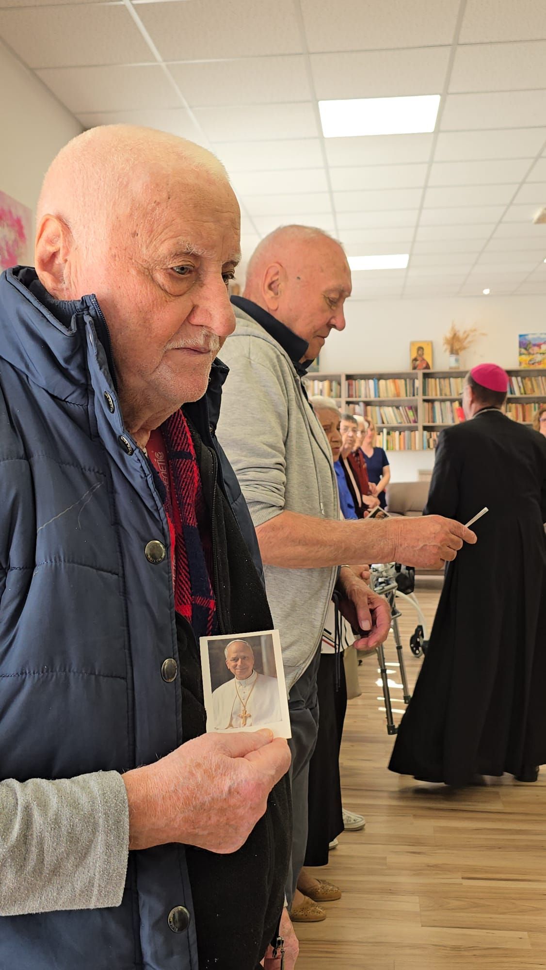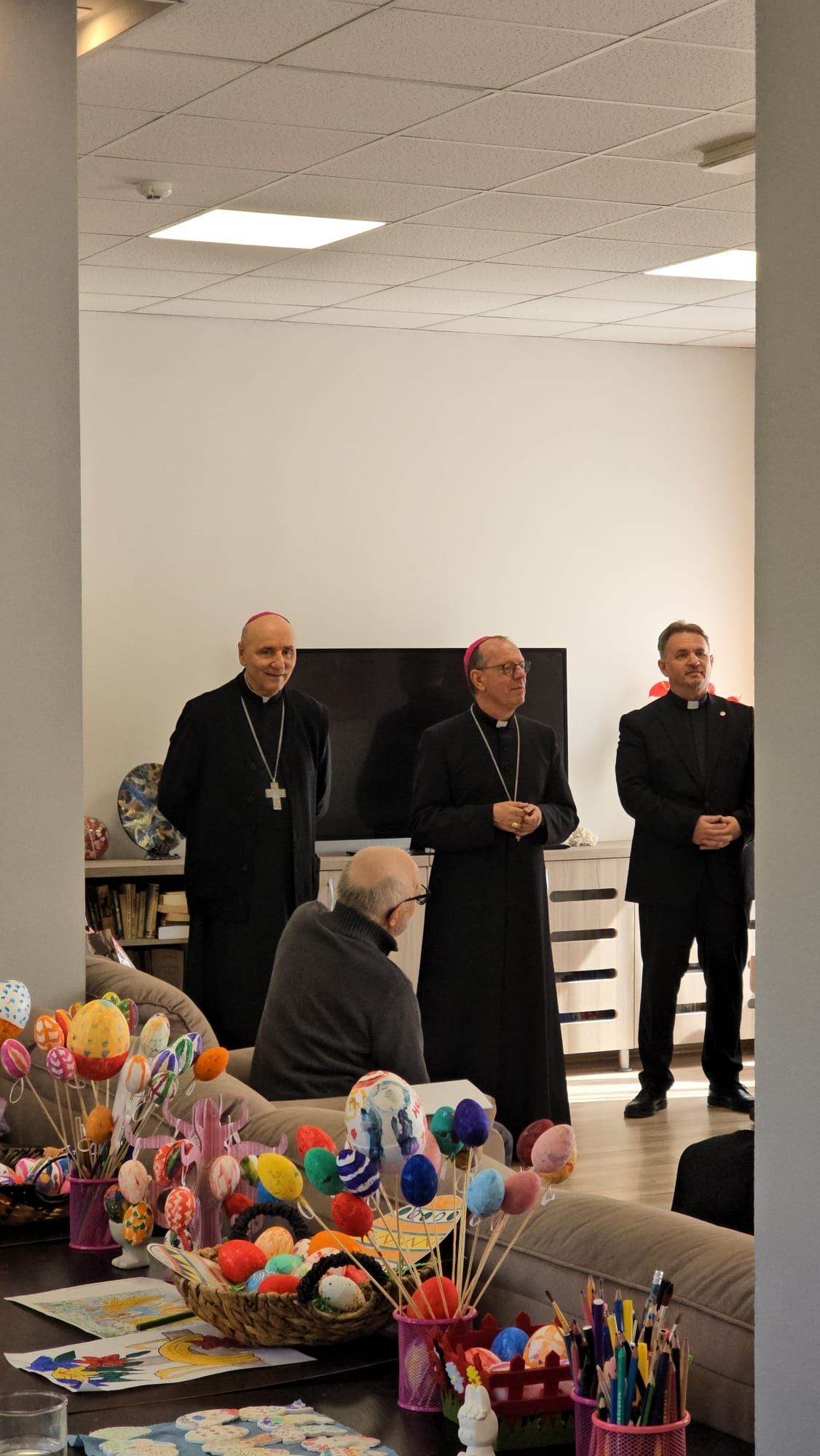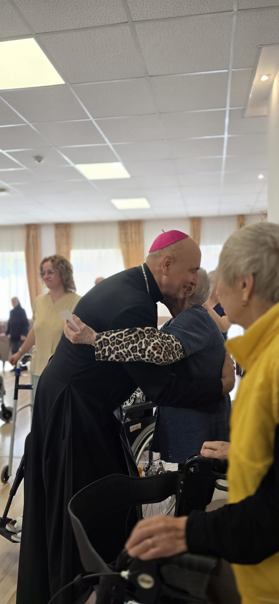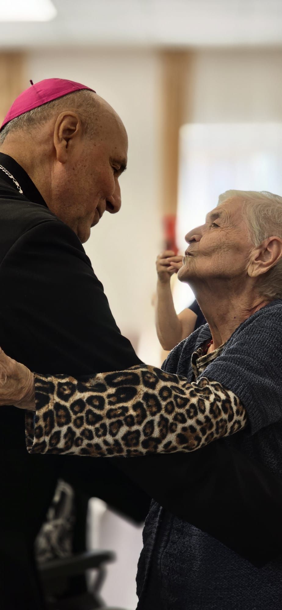 Într-o atmosferă caldă, plină de sensibilitate și trăire creștină, rezidenții „Casei Frențiu” au avut parte de o surpriză deosebită: întâlnirea cu Preasfinția Sa Virgil Bercea, Episcopul greco-catolic de Oradea și cu Excelența Sa Monseniorul Giampiero Gloder, Nunțiul Apostolic în România și în Republica Moldova. Oaspeți care au adus alinare, speranță și un sentiment profund de binecuvântare astăzi, 11 aprilie a.c. Alături de aceștia s-au aflat și președintele Asociației Caritas Eparhial Oradea, pr. Olimpiu Todorean precum și pr. Mihai Vătămănelu, vicar general.