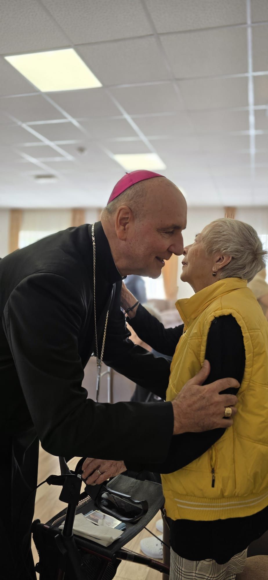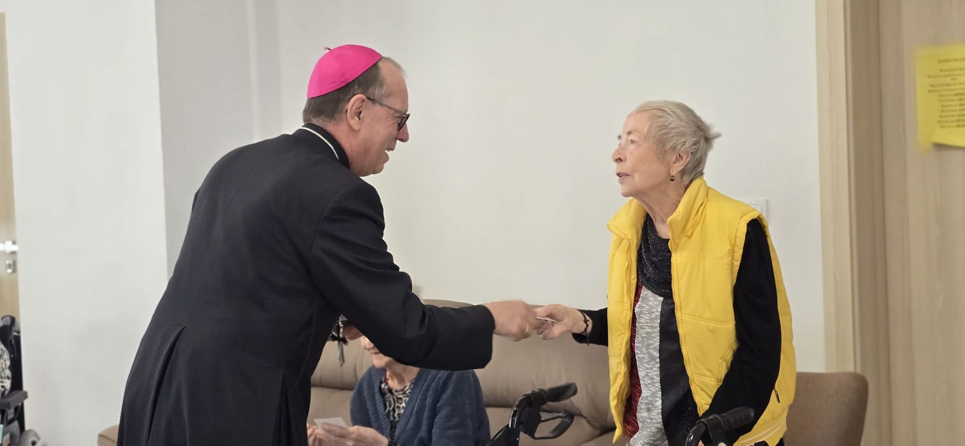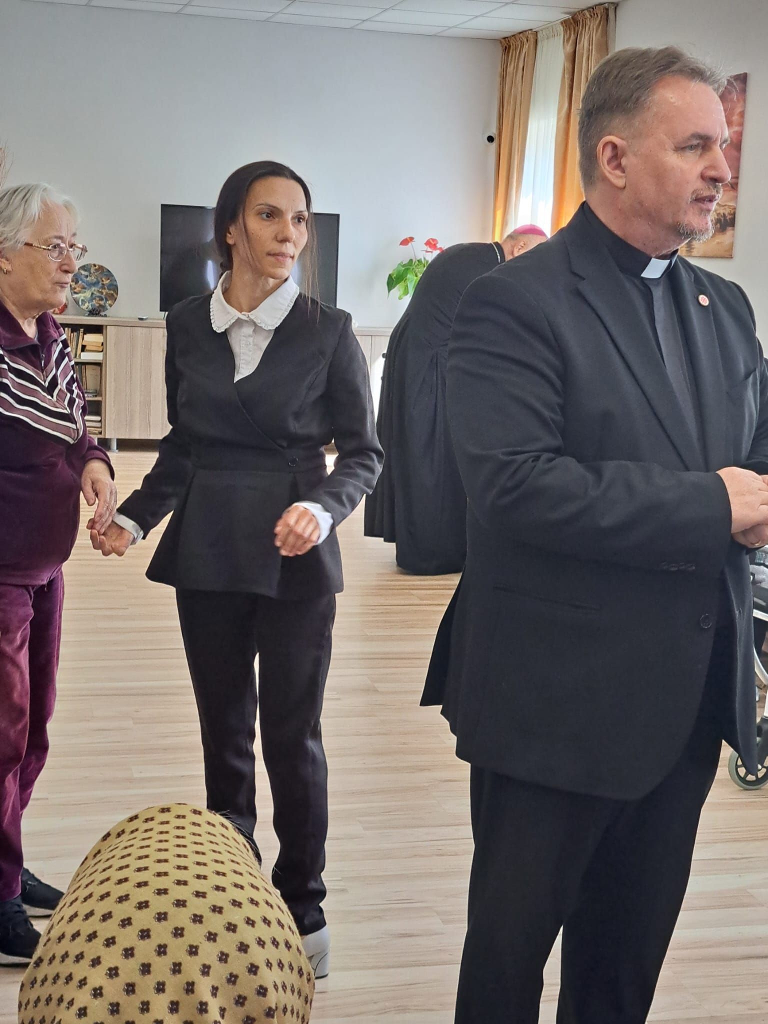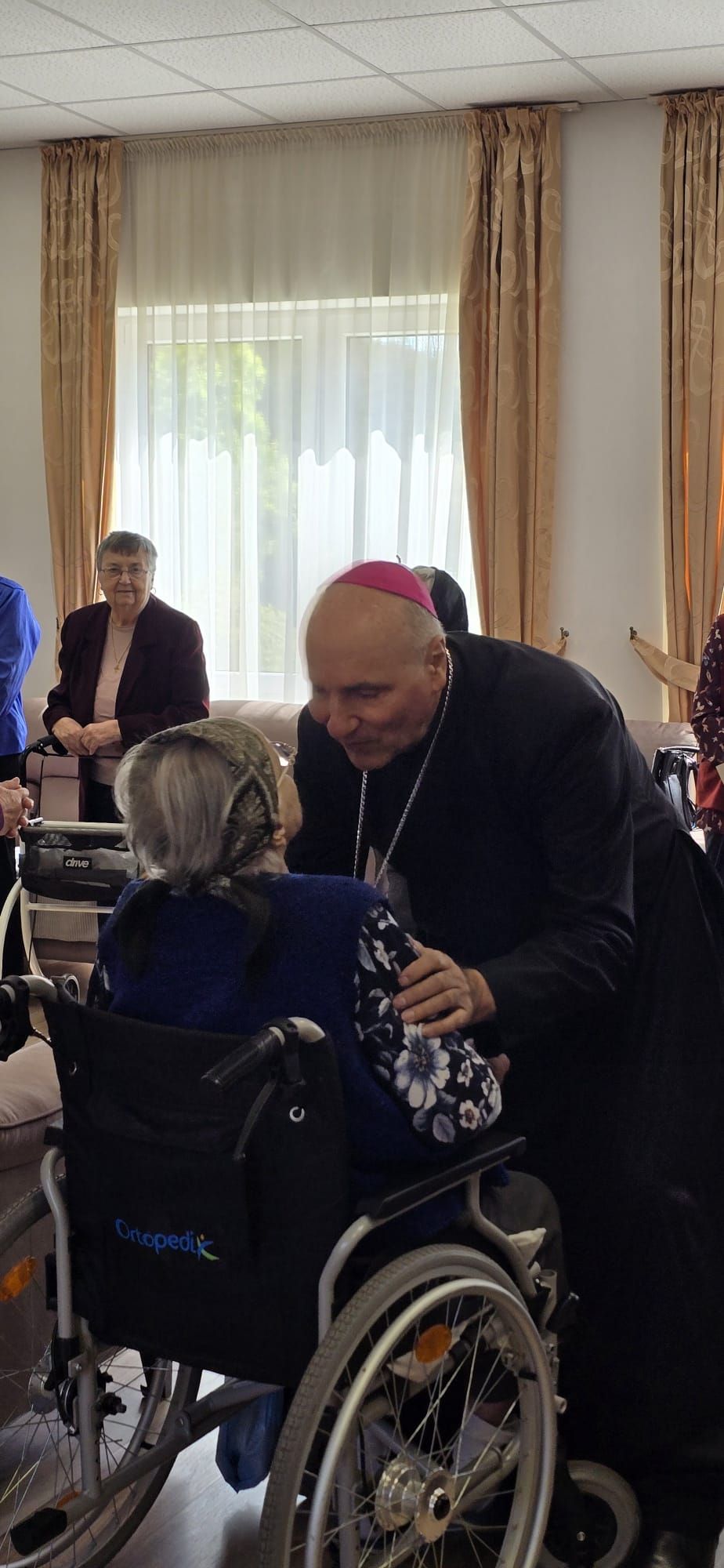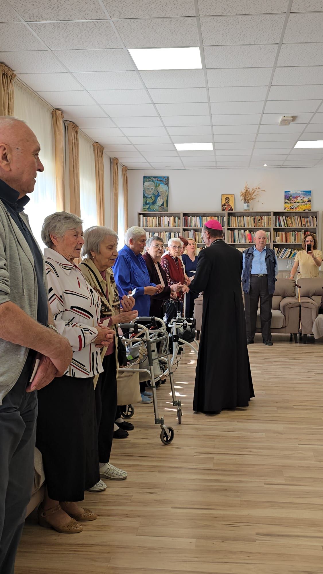 Într-o atmosferă caldă, plină de sensibilitate și trăire creștină, rezidenții „Casei Frențiu” au avut parte de o surpriză deosebită: întâlnirea cu Preasfinția Sa Virgil Bercea, Episcopul greco-catolic de Oradea și cu Excelența Sa Monseniorul Giampiero Gloder, Nunțiul Apostolic în România și în Republica Moldova. Oaspeți care au adus alinare, speranță și un sentiment profund de binecuvântare astăzi, 11 aprilie a.c. Alături de aceștia s-au aflat și președintele Asociației Caritas Eparhial Oradea, pr. Olimpiu Todorean precum și pr. Mihai Vătămănelu, vicar general.