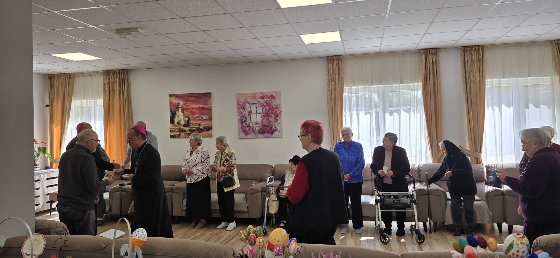 La final, oaspeții noștri au oferit rezidenților o imagine cu chipul Papei Leon al XIV-lea, iar apoi, într-un gest simbolic și plin de semnificație, oaspeții au primit ouă vopsite, expresie a bucuriei pascale și a biruinței vieții asupra morții. Acest moment a întregit o întâlnire în care simplitatea gesturilor a fost dublată de profunzimea trăirilor.