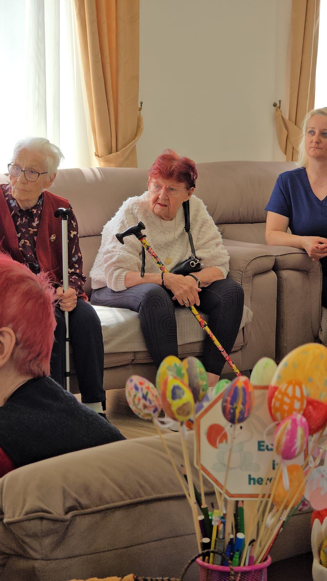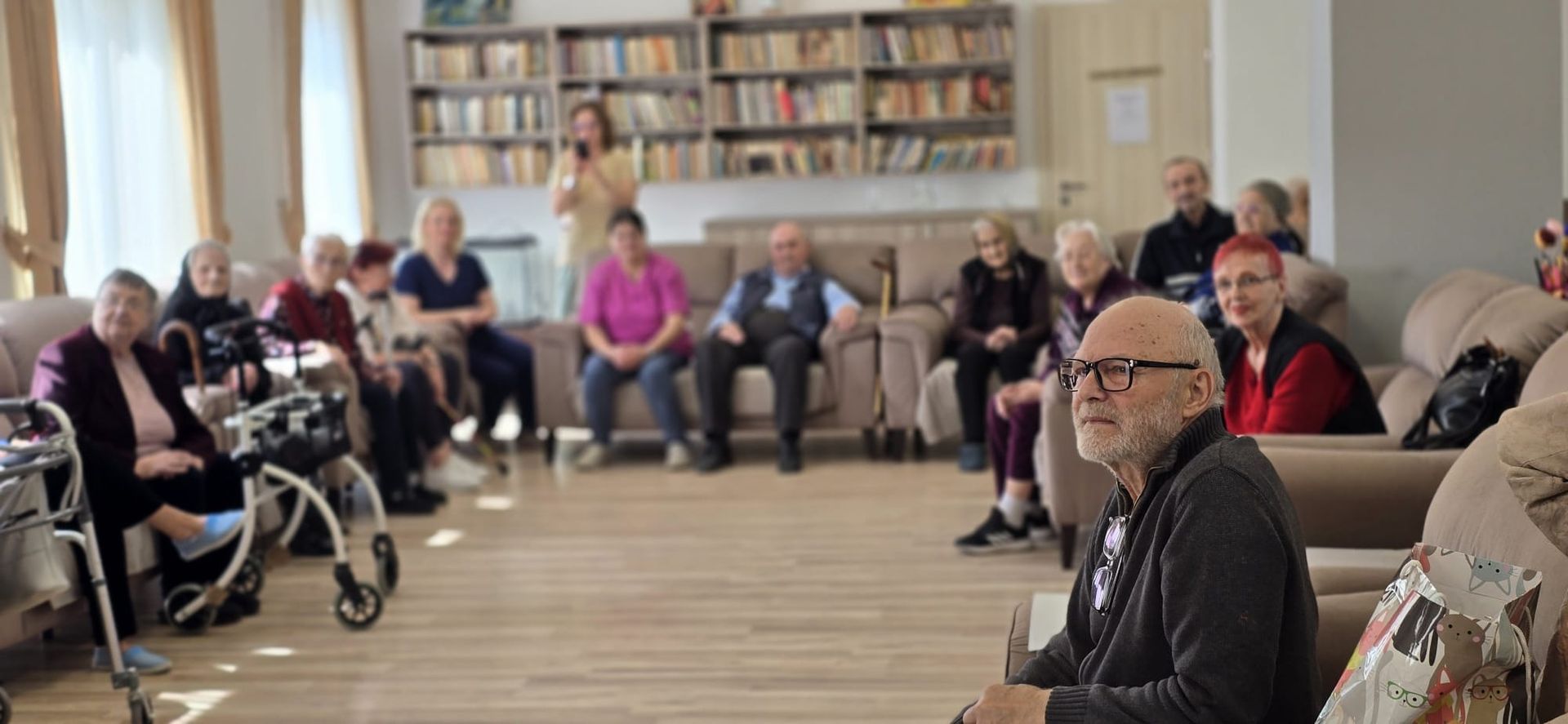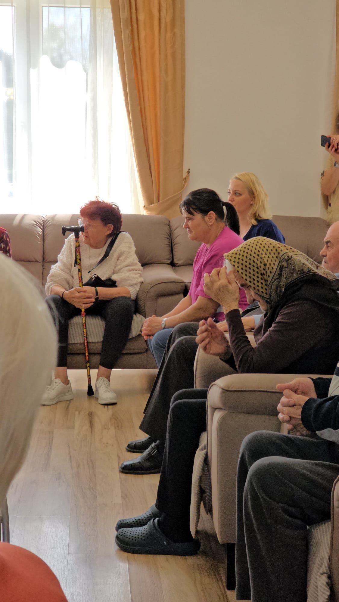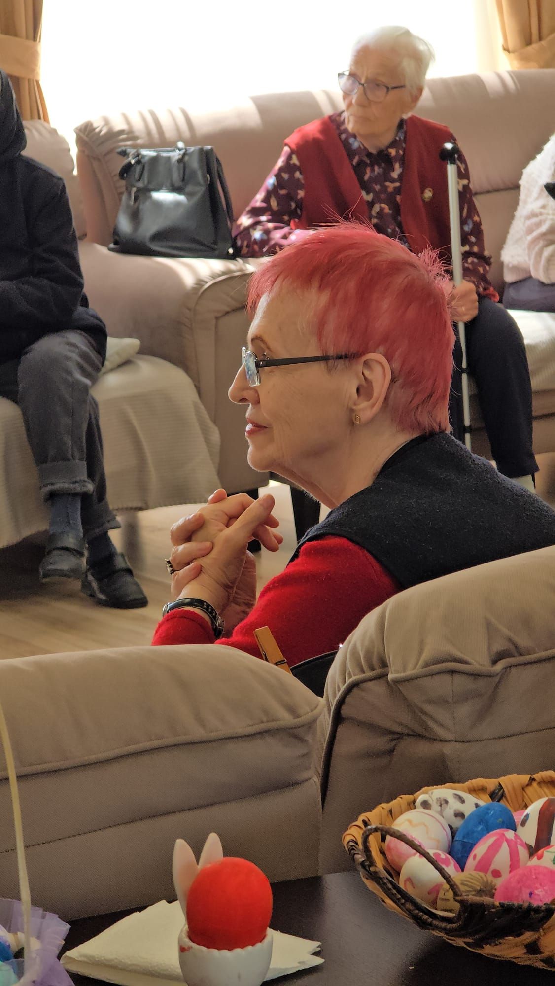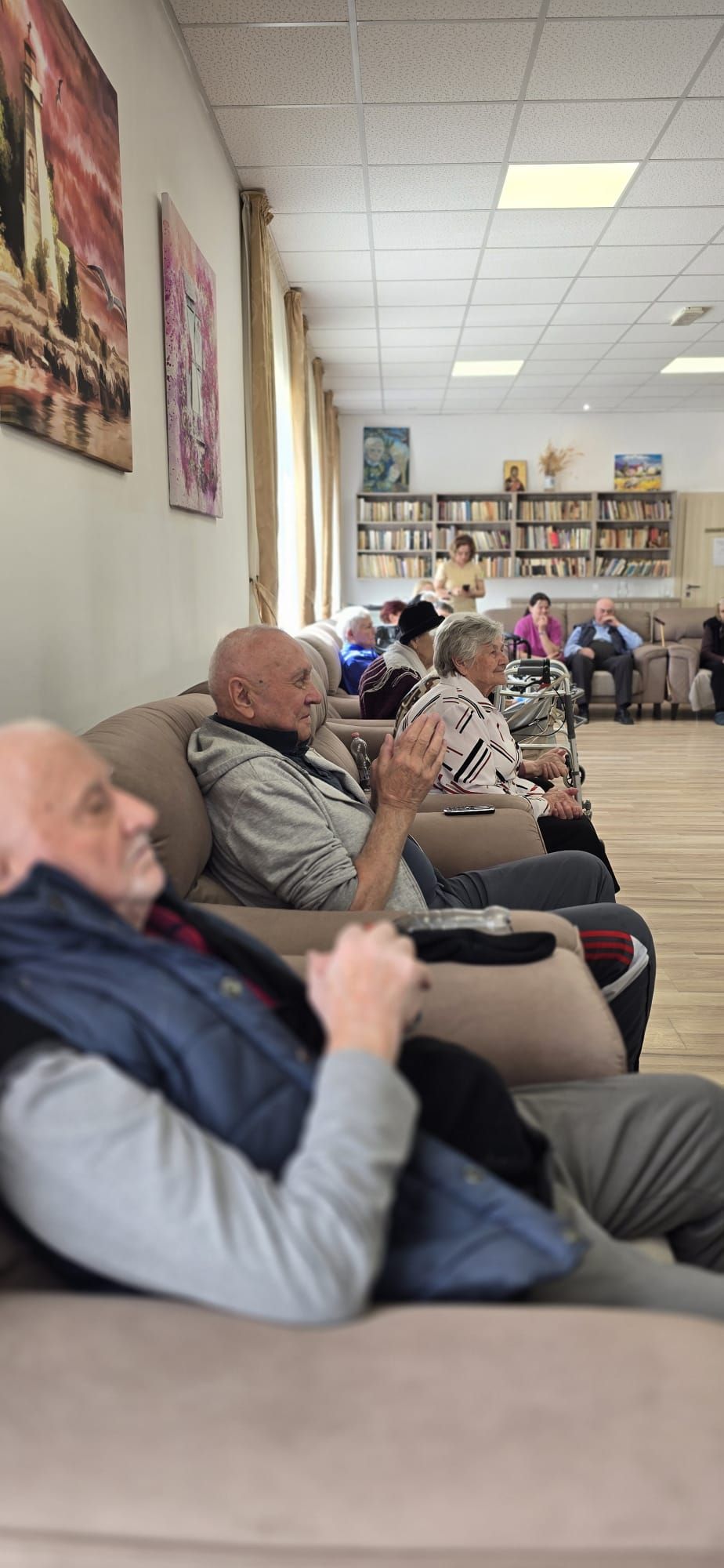 Întâlnirea a fost marcată de momente de o intensitate emoțională aparte. Într-un glas, cu inimile deschise și pline de credință, cei prezenți au cântat „Cristos a înviat!”, iar ecoul acestei cântări a umplut spațiul de lumină și speranță, creând o legătură profundă între toți cei de față. A urmat un moment deosebit de sensibil: recitarea unei poezii cu specific pascal, susținută de unul dintre rezidenți. Cu o rostire solemnă, sobră și plină de trăire interioară a poeziei „Cristos a înviat!” scrisă de Alexandru Vlahuță, domnul Emil Sauciuc a reușit să redea, cu o autenticitate rară, esența sărbătorii Învierii Mântuitorului, stârnind emoție și admirație în rândul celor prezenți.