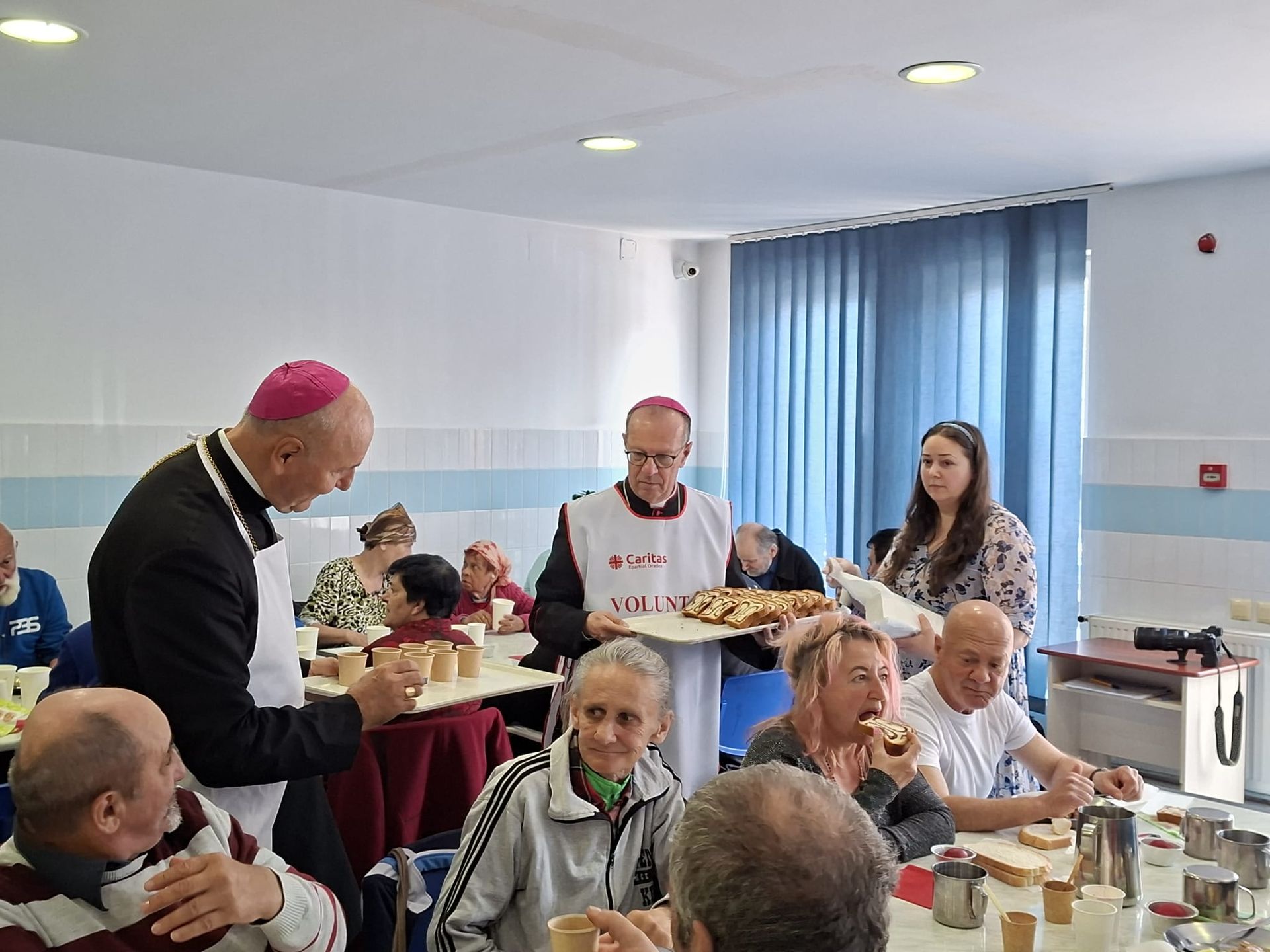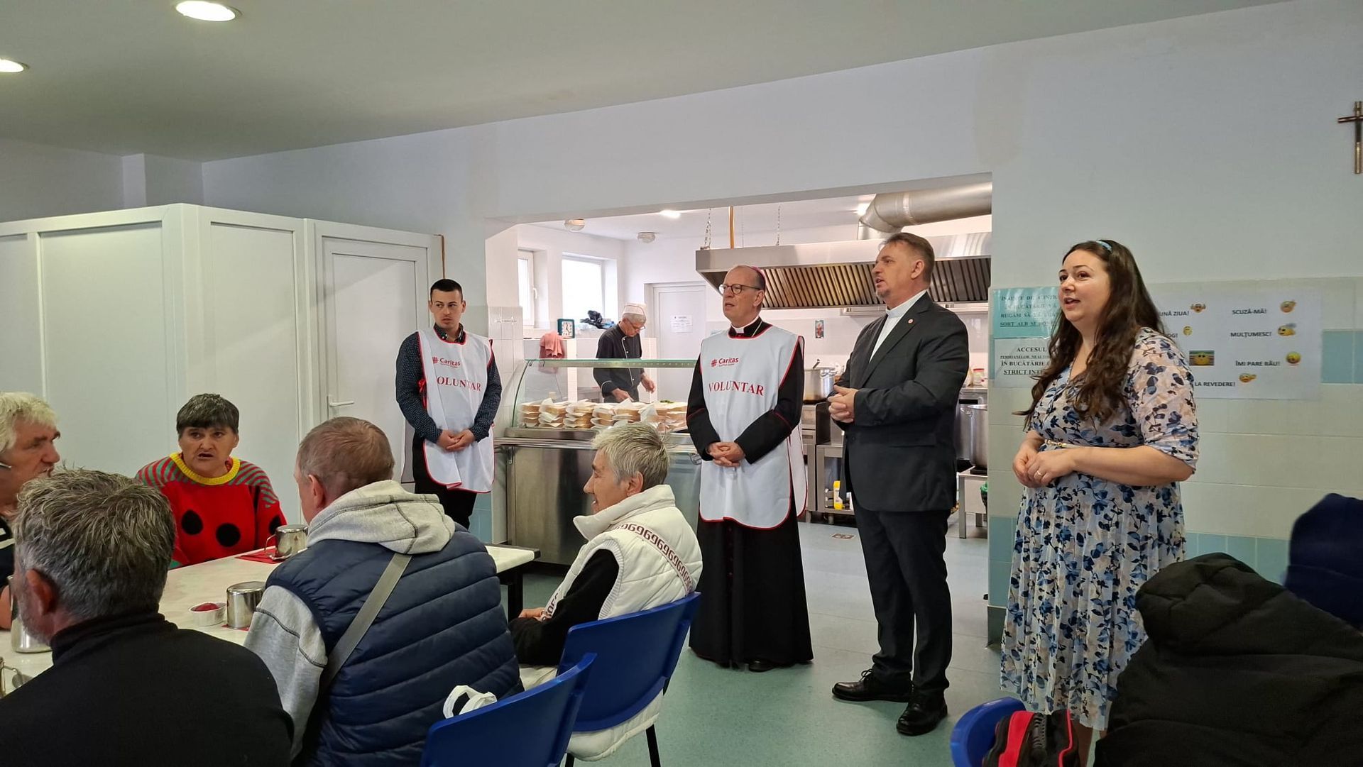 În prima zi a marelui praznic al Învierii Domnului, lumina și bucuria Paștelui au coborât și în inimile celor mai vulnerabili membri ai comunității, în cadrul unei întâlniri speciale organizate la cantina socială a Asociației Caritas Eparhial Oradea.