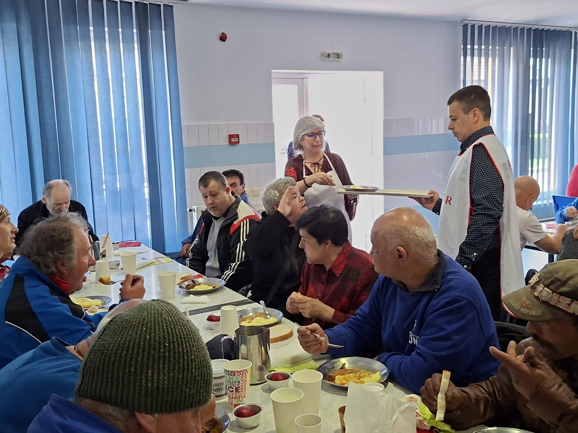Nu mai puțin de 60 de persoane: oameni fără adăpost, persoane cu venituri reduse sau lipsite de sprijin familial au fost prezente la masa festivă.