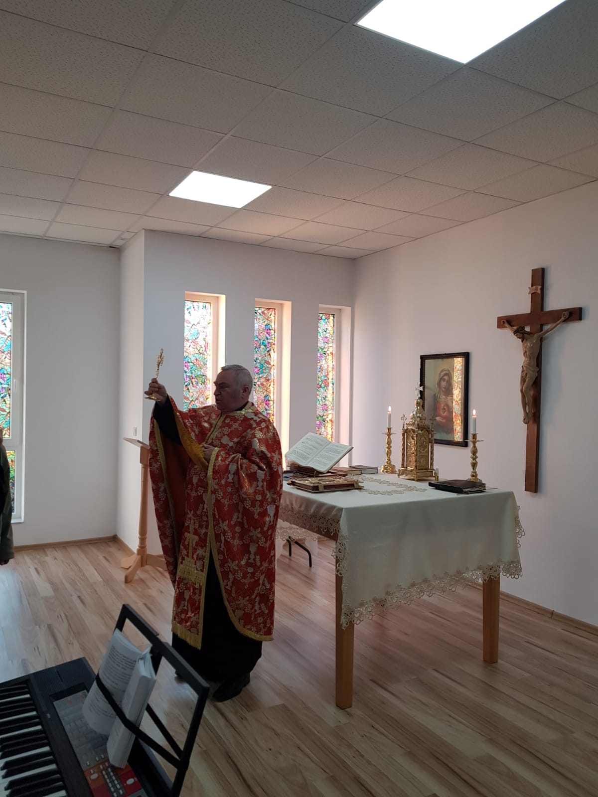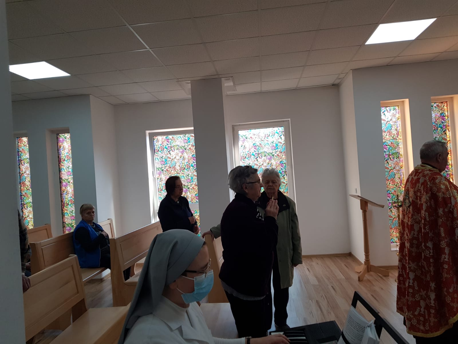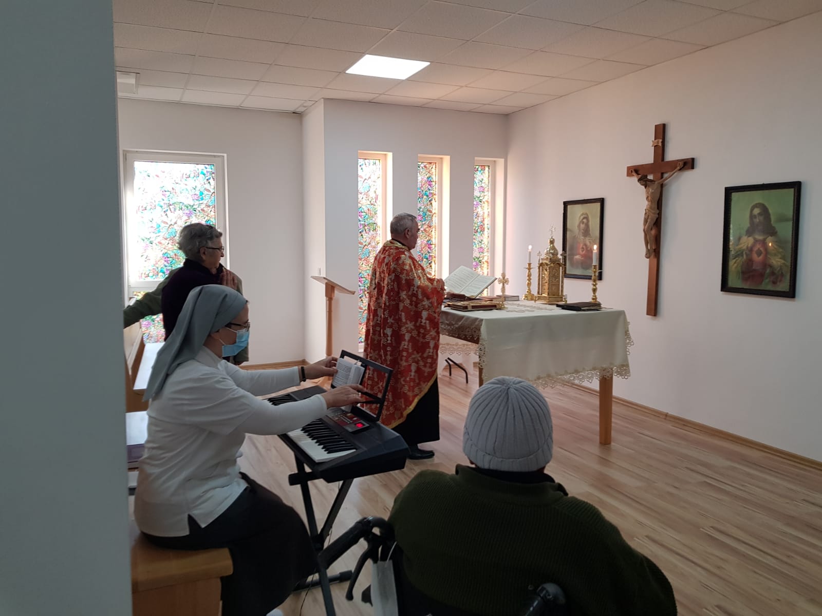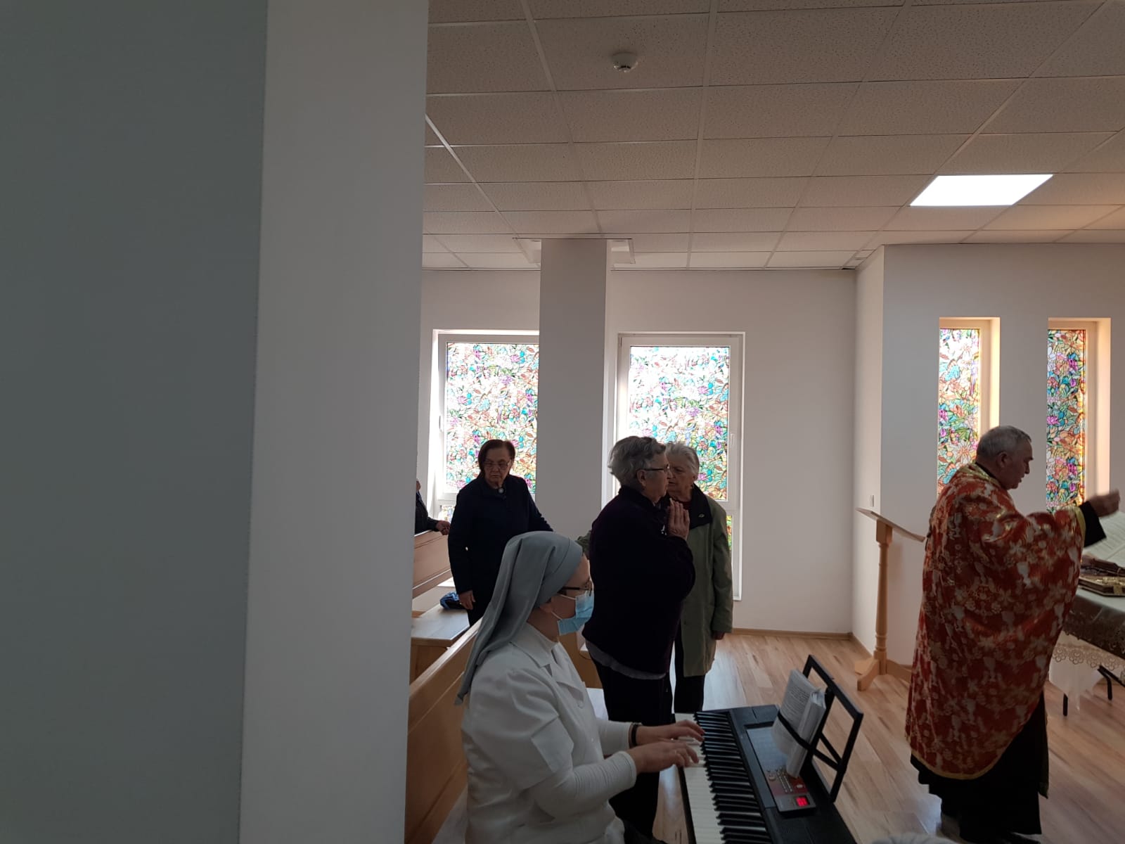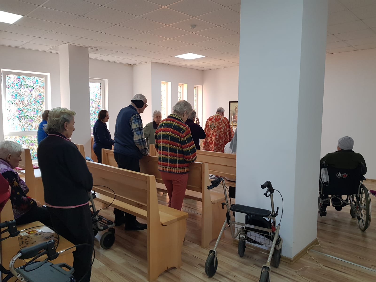 La Centrul Rezidențial ”Casa Frențiu” a fost celebrată Sfânta Liturghie de către părintele Gheorghe Dat pentru rezidenți, joi 25 martie a.c., de Buna Vestire,