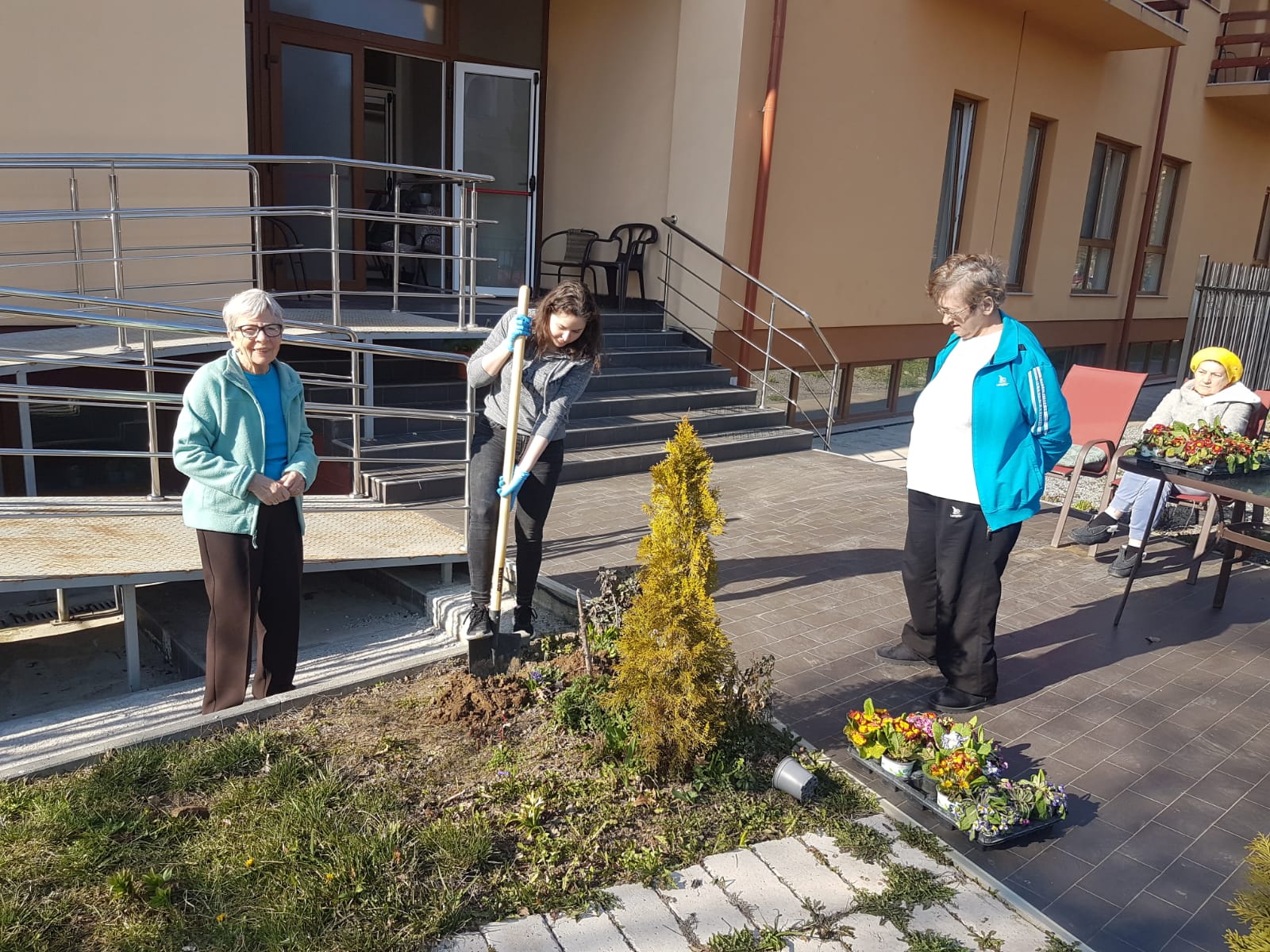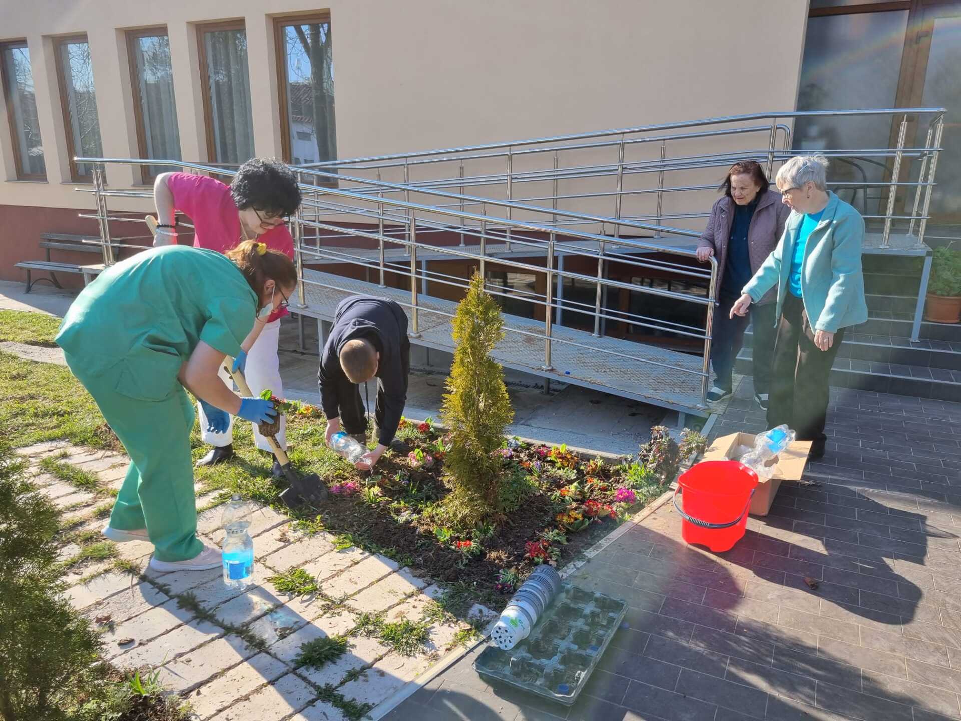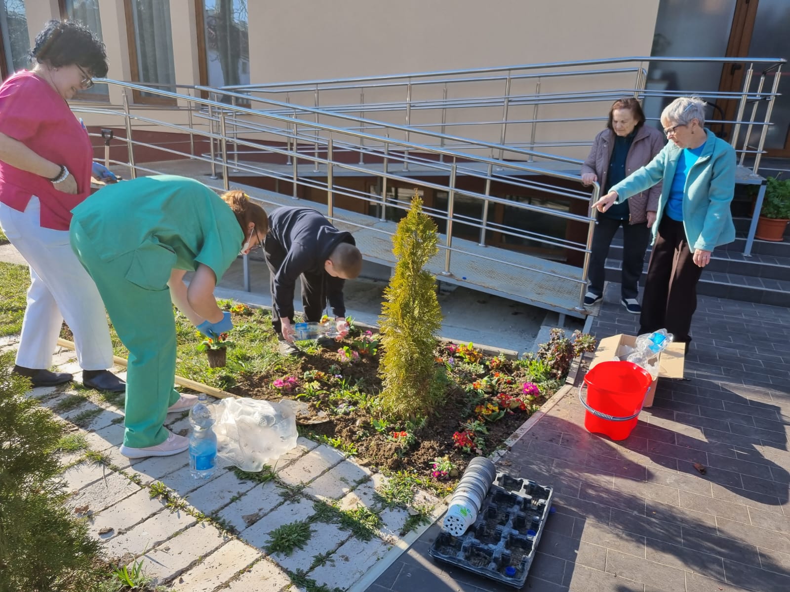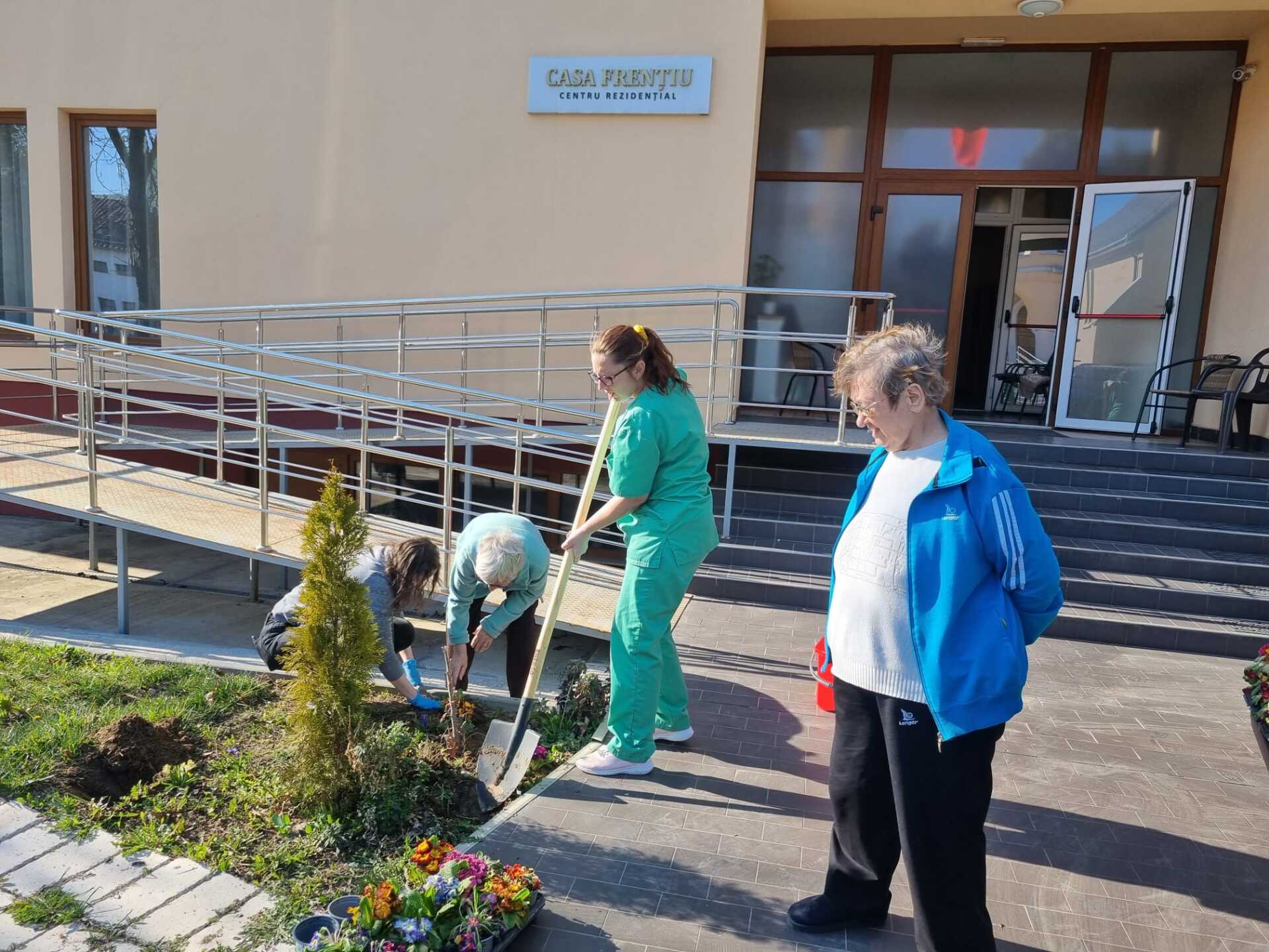 Astfel, rezidenții centrului au plantat flori multicolore, retrăind amintiri care au renăscut odată cu această activitate care s-a desfășurat în aer liber, sub mângâierea razelor soarelui. Câte o vorbă, un sfat, nostalgii, dar și bucuria primăverii și a vremii plăcute - toate au întregit atmosfera cu zâmbete și povețe, astfel că rezidenții centrului s-au simțit, în continuare, ca și acasă, unde aveau propriile grădini și flori și pe cei dragi alături de ei!