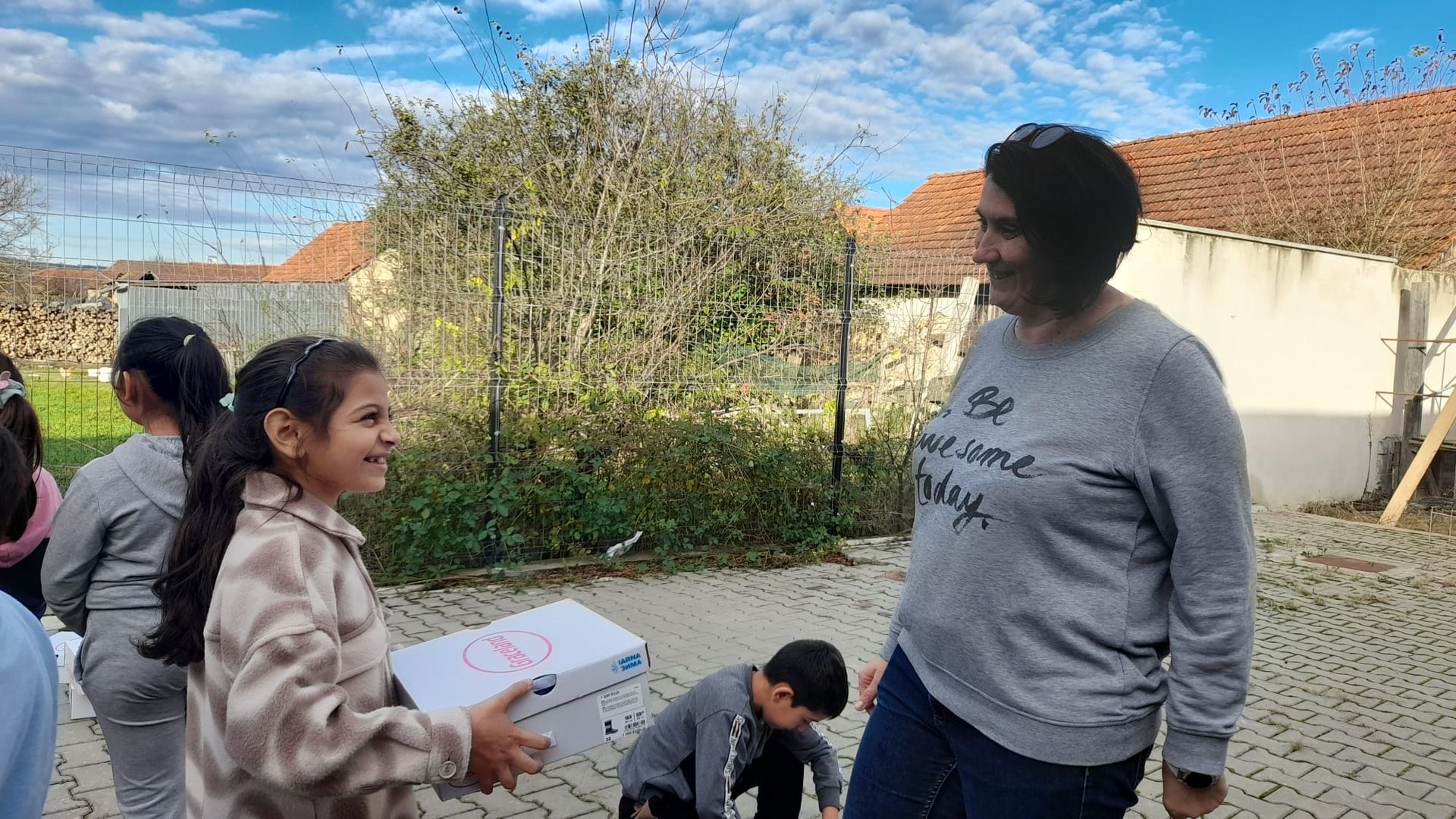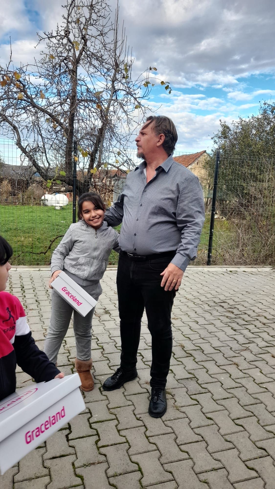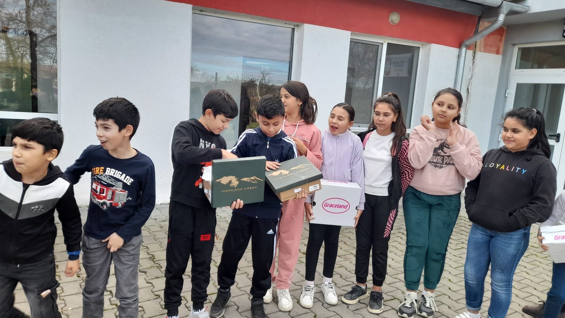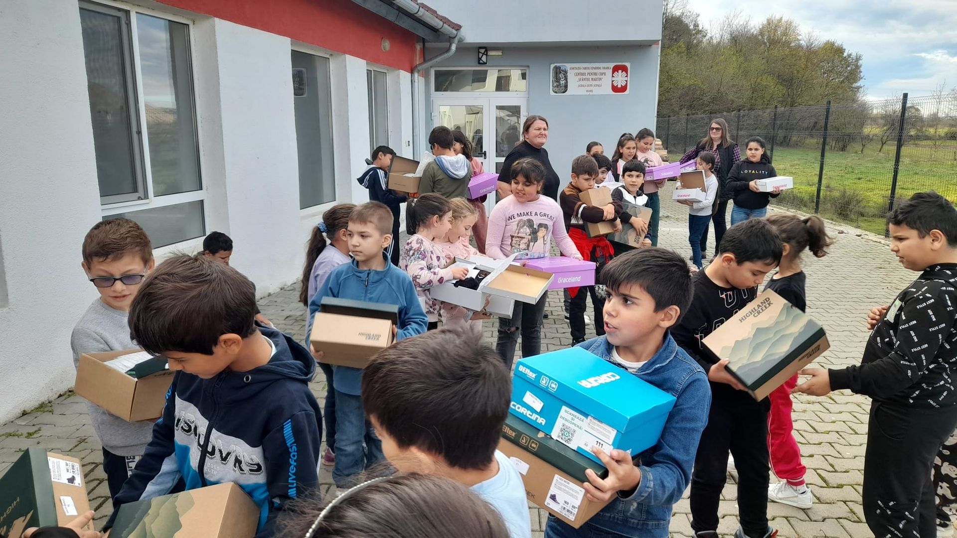Nerăbdători, copiii au deschis cutiile și chiar au probat cu bucurie încălțămintea, exclamând entuziasmul care i-a cuprins, după care au revenit la îmbrățișări și mulțumiri pe care, la rândul nostru, le transmitem doamnei care dedică timp și oferă susținere financiară pentru a putea fi achiziționate cele necesare pentru acești copii. Lăudabil este modul în care acești micuți sfidează limitele contextului social în care trăiesc, continuând să învețe și să spere că vor păși pe drumuri neumblate de alți membri ai familiilor lor și vor ajunge la o destinație de care să fie mândri ei și cei ai lor care îi susțin, atât cât e cu putință.