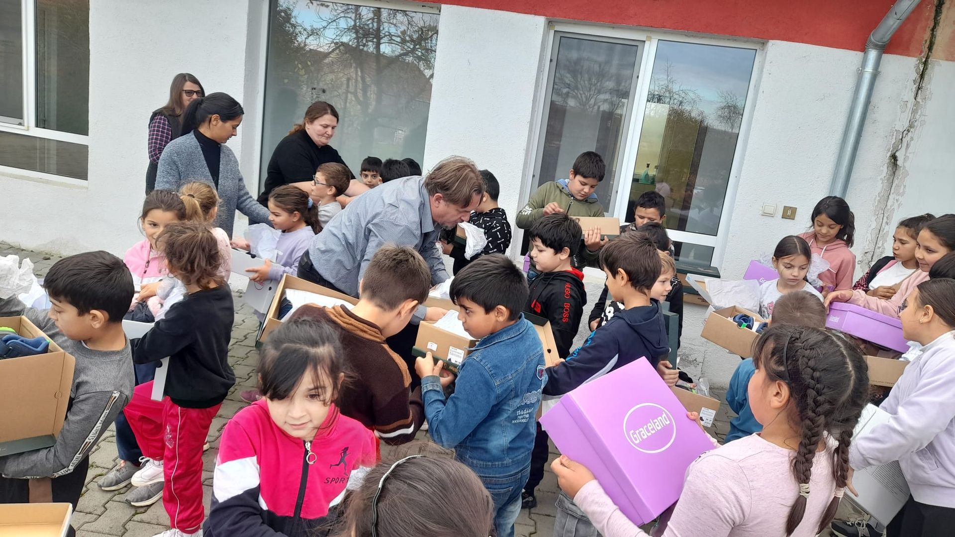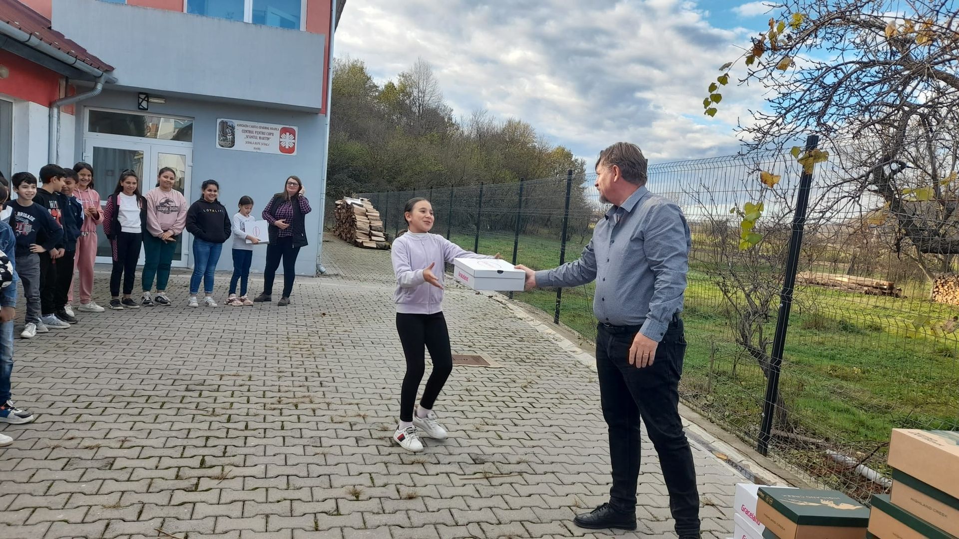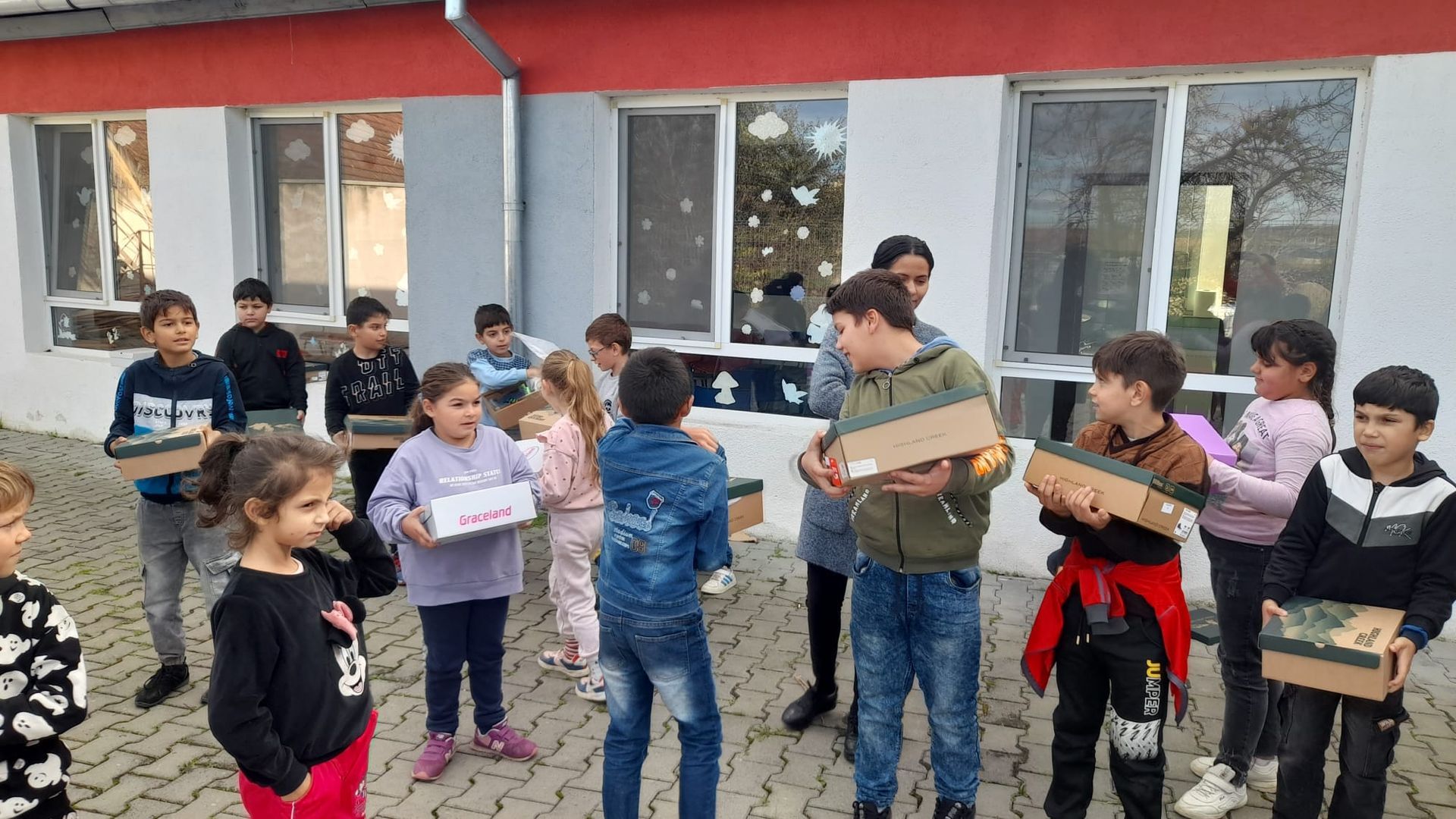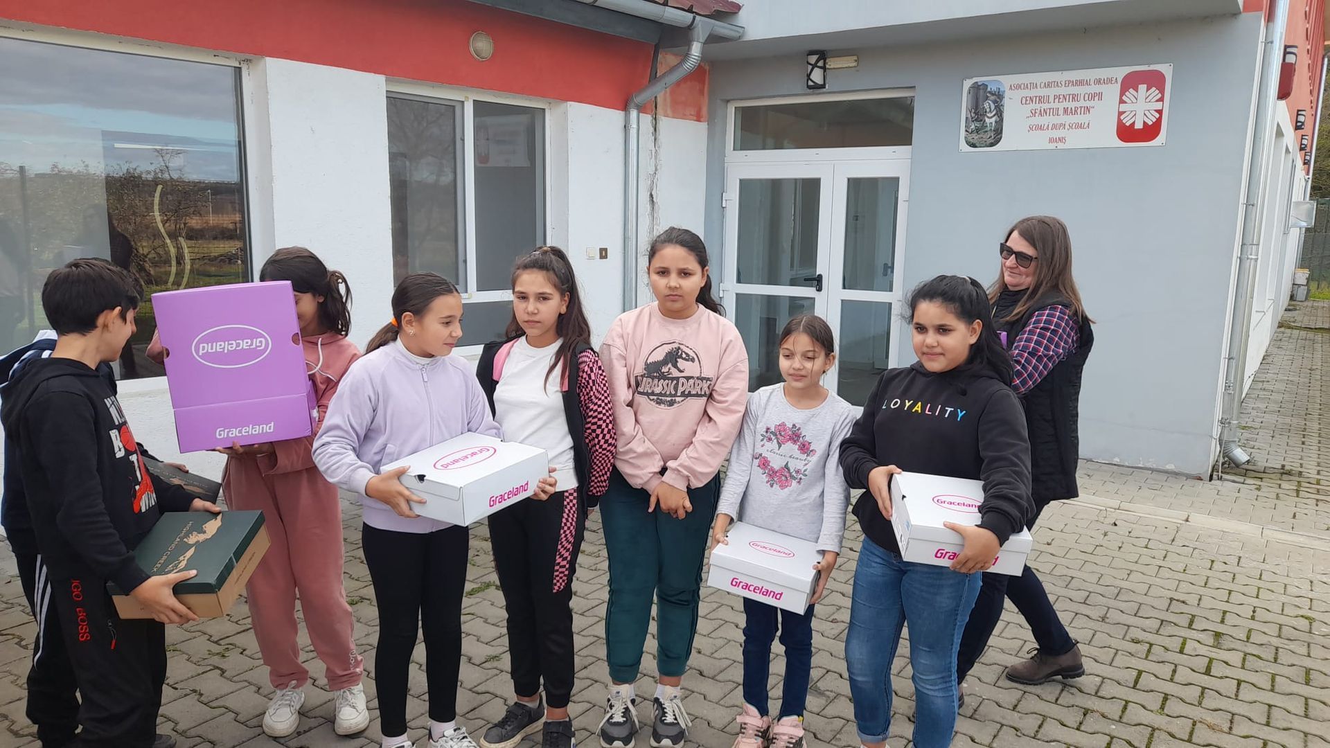 Nerăbdători, copiii au deschis cutiile și chiar au probat cu bucurie încălțămintea, exclamând entuziasmul care i-a cuprins, după care au revenit la îmbrățișări și mulțumiri pe care, la rândul nostru, le transmitem doamnei care dedică timp și oferă susținere financiară pentru a putea fi achiziționate cele necesare pentru acești copii. Lăudabil este modul în care acești micuți sfidează limitele contextului social în care trăiesc, continuând să învețe și să spere că vor păși pe drumuri neumblate de alți membri ai familiilor lor și vor ajunge la o destinație de care să fie mândri ei și cei ai lor care îi susțin, atât cât e cu putință.