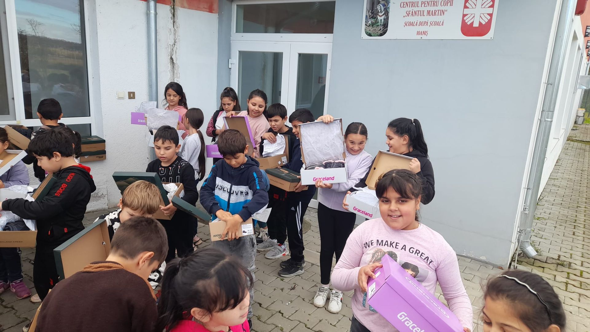 O zi aparent obișnuită pentru copiii de la Centrul de tip afterschool ”Sfântul Martin” din Ioaniș a devenit o zi a bucuriei și a îmbrățișărilor, pentru că au primit încălțămintea potrivită pentru sezonul rece care urmează. Sfioși, emoționați, sclipind a inocență și veselie, micuții noștri și-au primit, rând pe rând, perechea de ghetuțe cu care vor putea străbate toate ulițele satului, în ritmul specific copilăriei. Cu siguranță, ziua de 6 noiembrie a.c. rămâne un reper pentru cei mici, cu atât mai mult că mai este doar o lună până când Moș Nicolae va lăsa în aceste ghetuțe darul său.