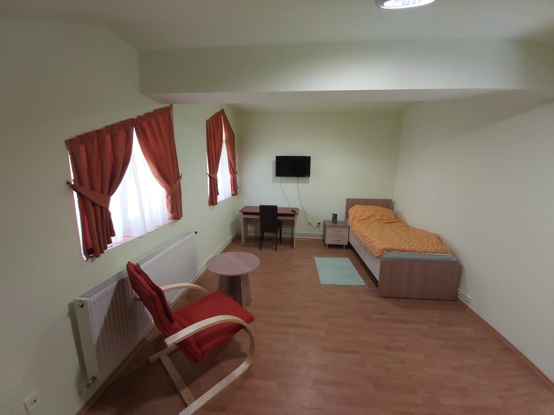 Oferim spre închiriere camere cu unul sau două paturi, dotate cu: TV, internet, frigider și baie proprie.