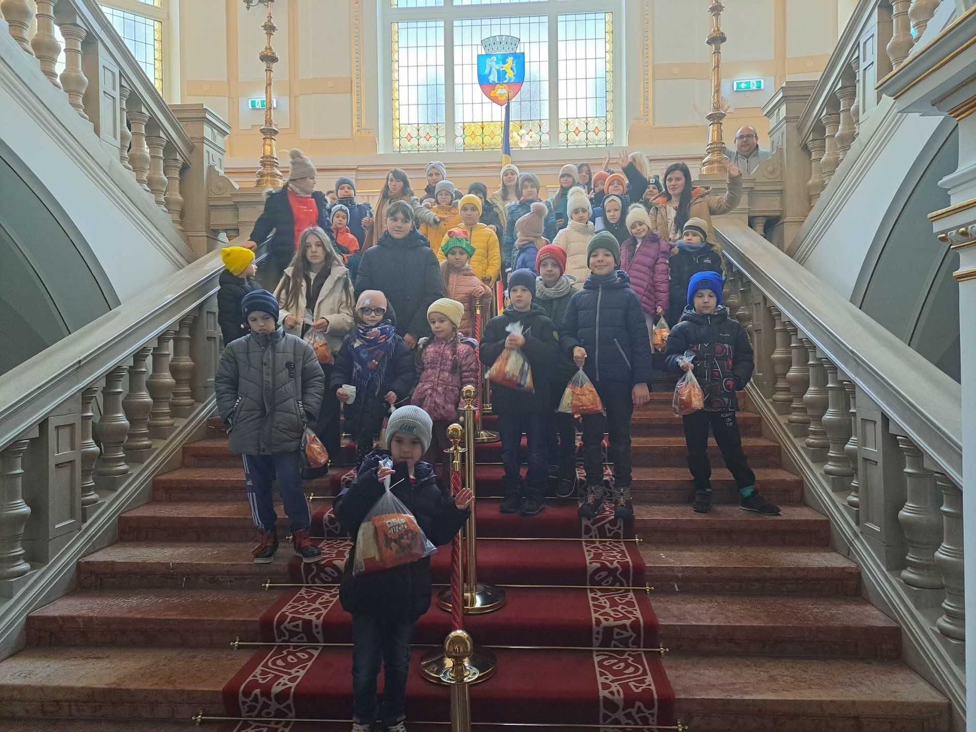 În acest sfârșit de săptămână, 35 de copii ucraineni care frecventează Centrul de Informare și Consiliere pentru Refugiați Oradea au avut parte de o experiență inedită. Astfel, în cursul zilei de vineri, 16 decembrie a.c., copiii au colindat în incinta Primăriei Oradea,
