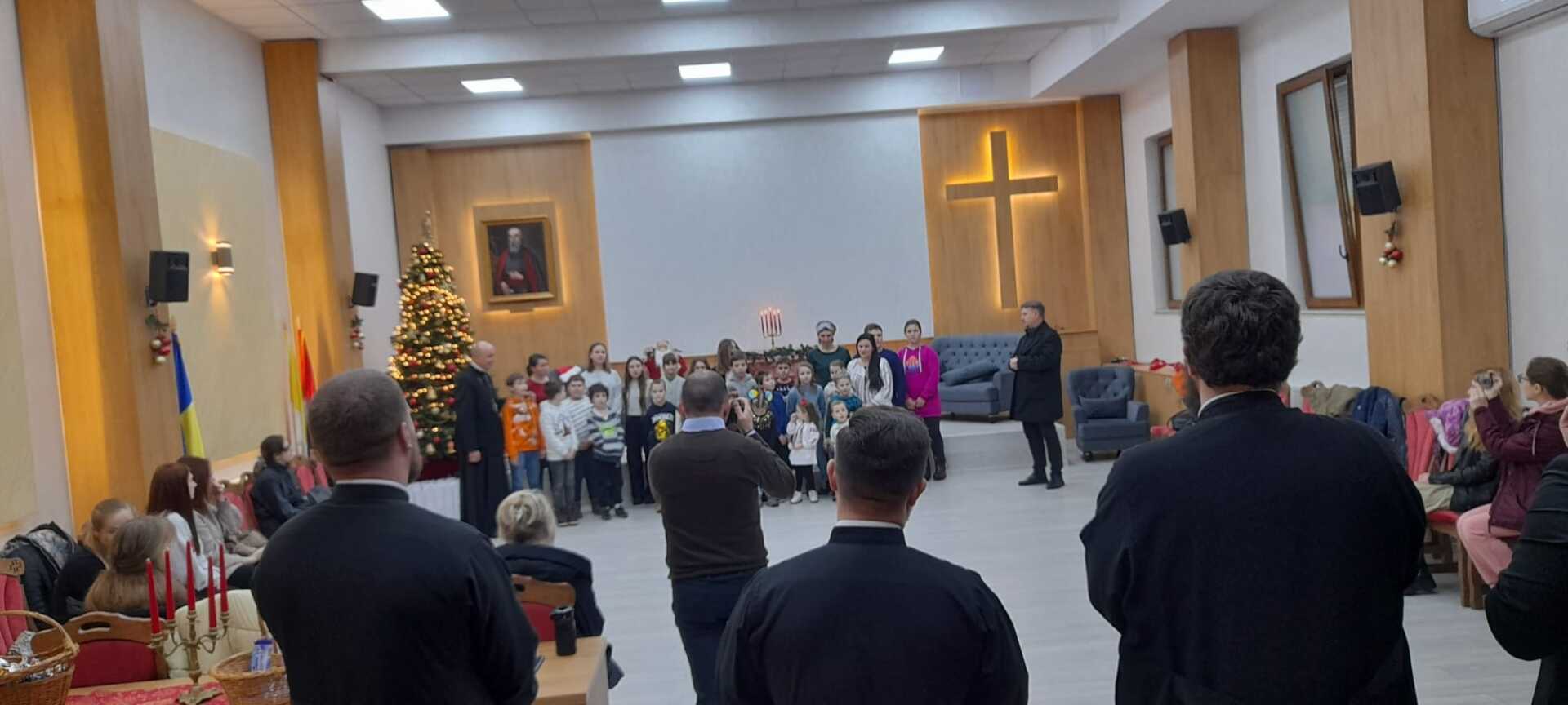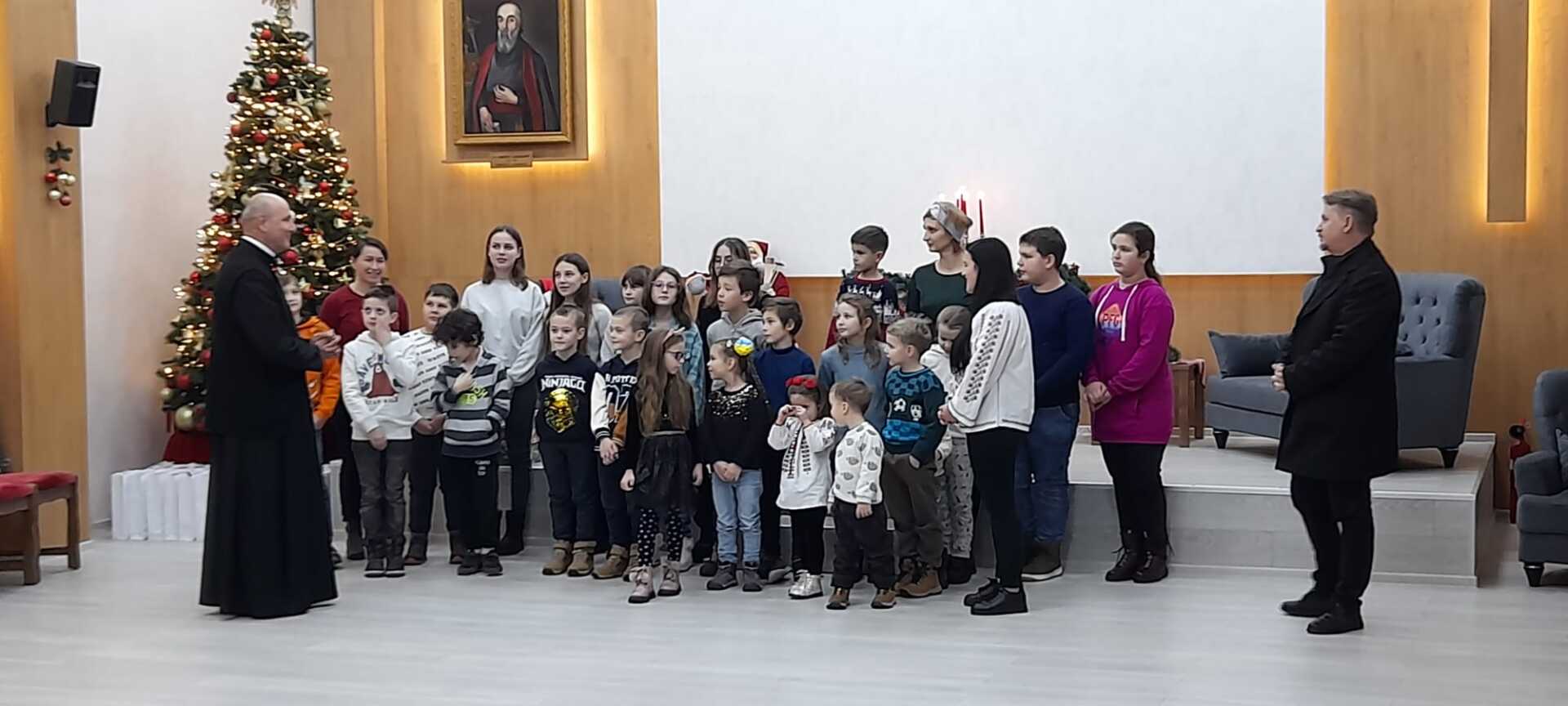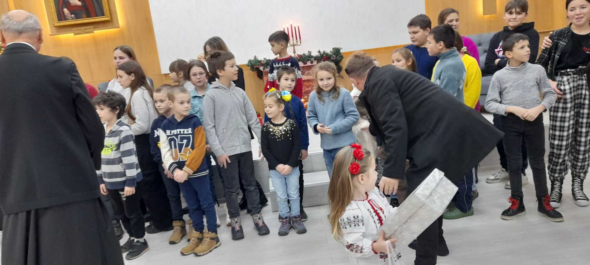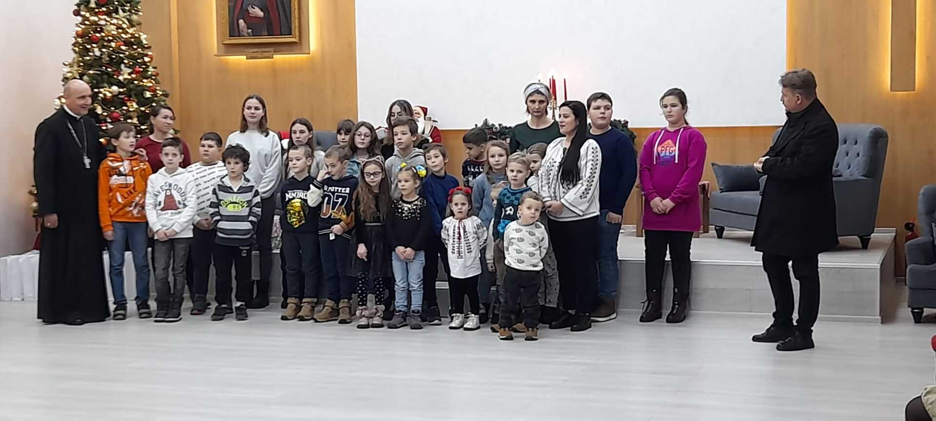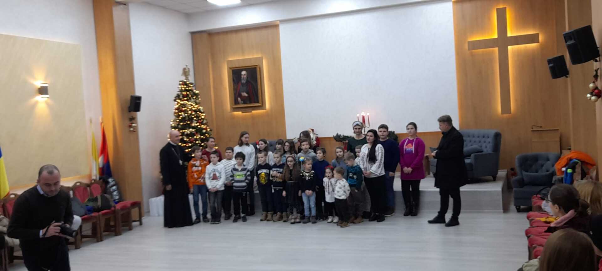 fiind întâmpinați de Preasfințitul Virgil și de părintele rector Anton Cioba, în calitate de gazdă. Aula Seminarului a răsunat de colindele pregătite temeinic de copiii ucraineni care s-au bucurat de darurile primite, în timp ce părinții au privit, de pe margine, acest recital interpretat de cele mai frumoase voci: ale propriilor copii.