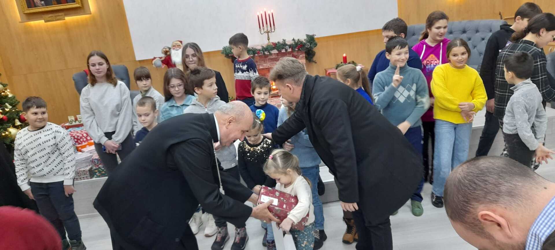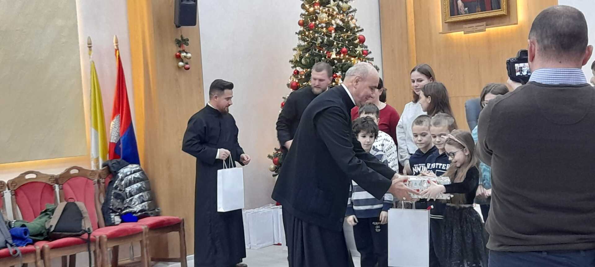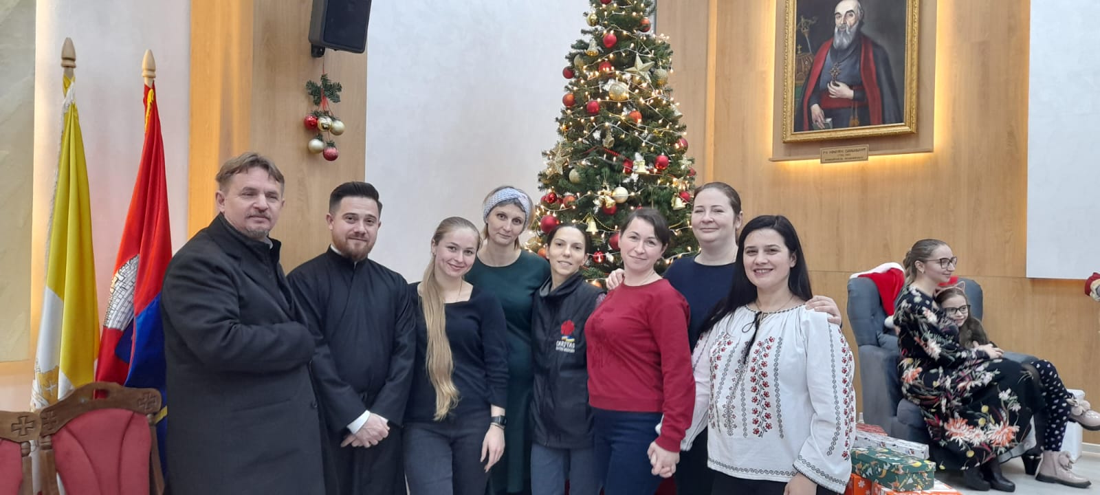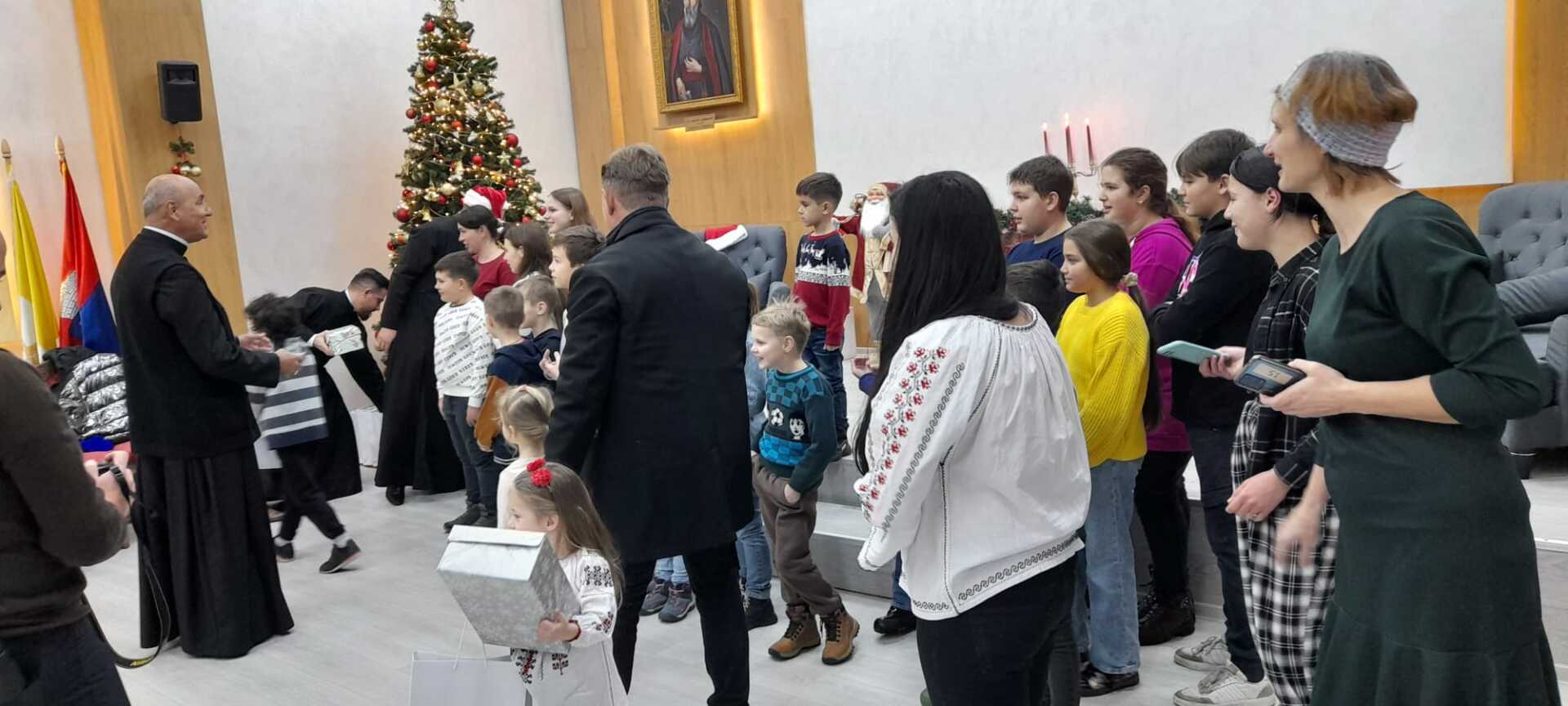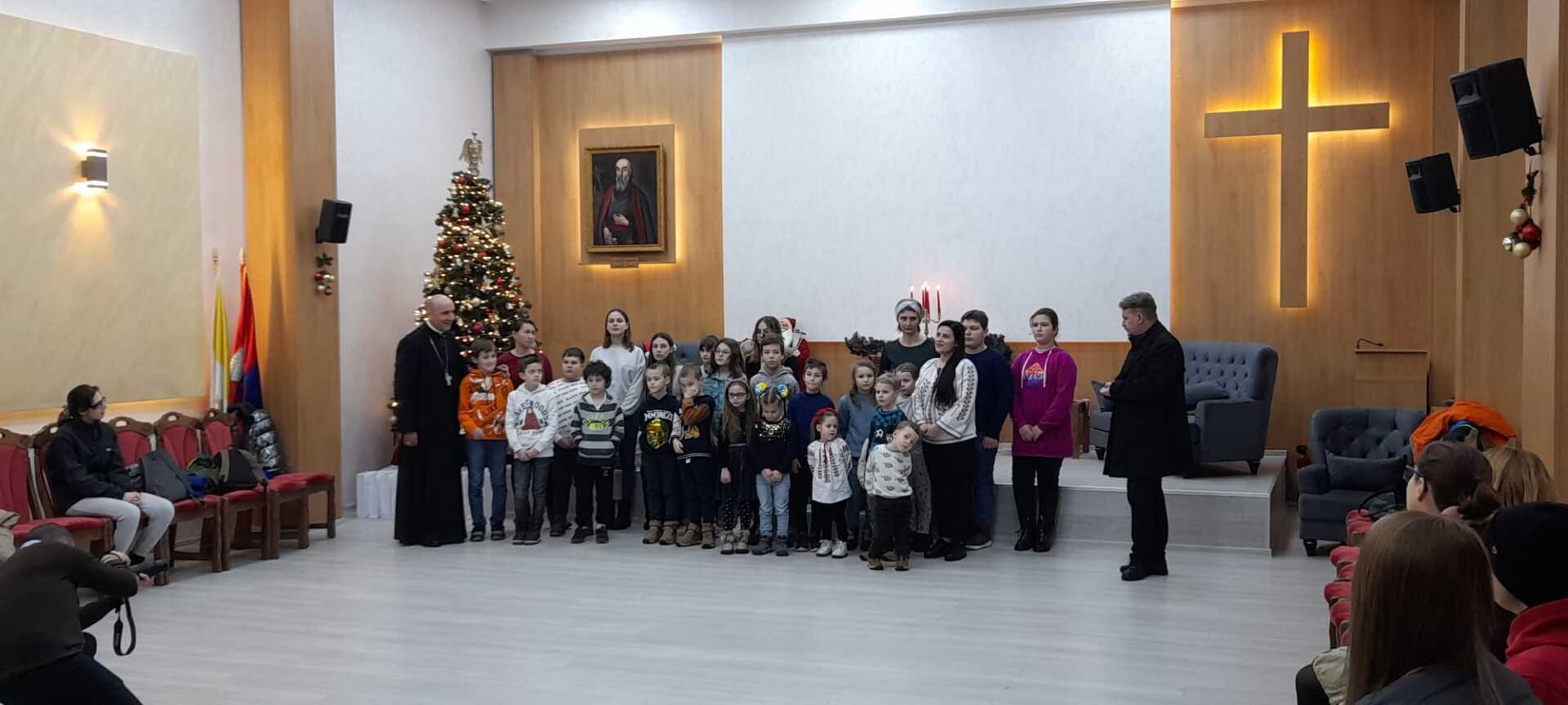 fiind întâmpinați de Preasfințitul Virgil și de părintele rector Anton Cioba, în calitate de gazdă. Aula Seminarului a răsunat de colindele pregătite temeinic de copiii ucraineni care s-au bucurat de darurile primite, în timp ce părinții au privit, de pe margine, acest recital interpretat de cele mai frumoase voci: ale propriilor copii.