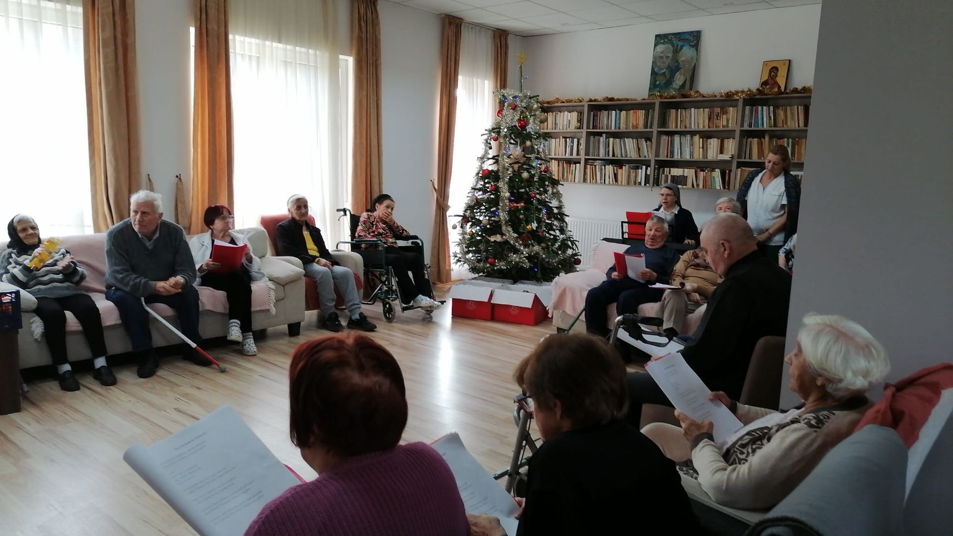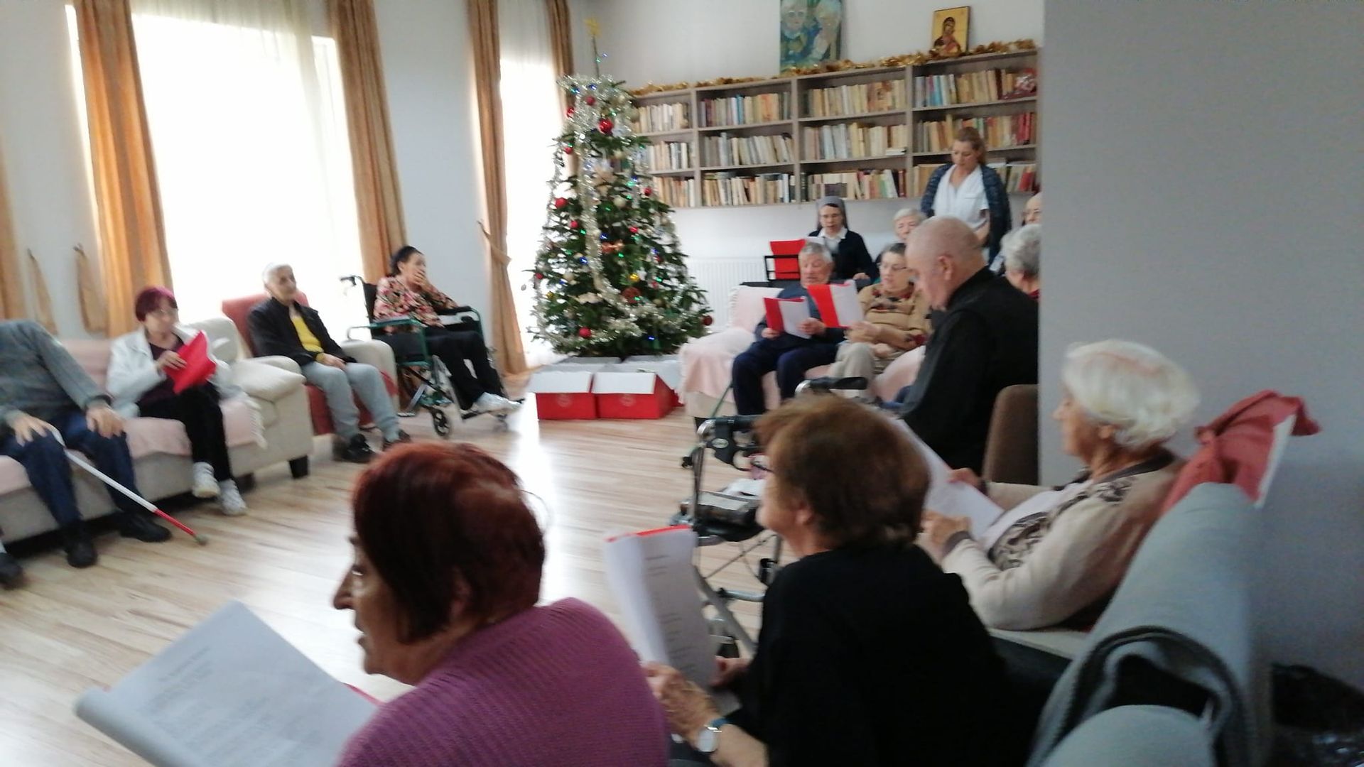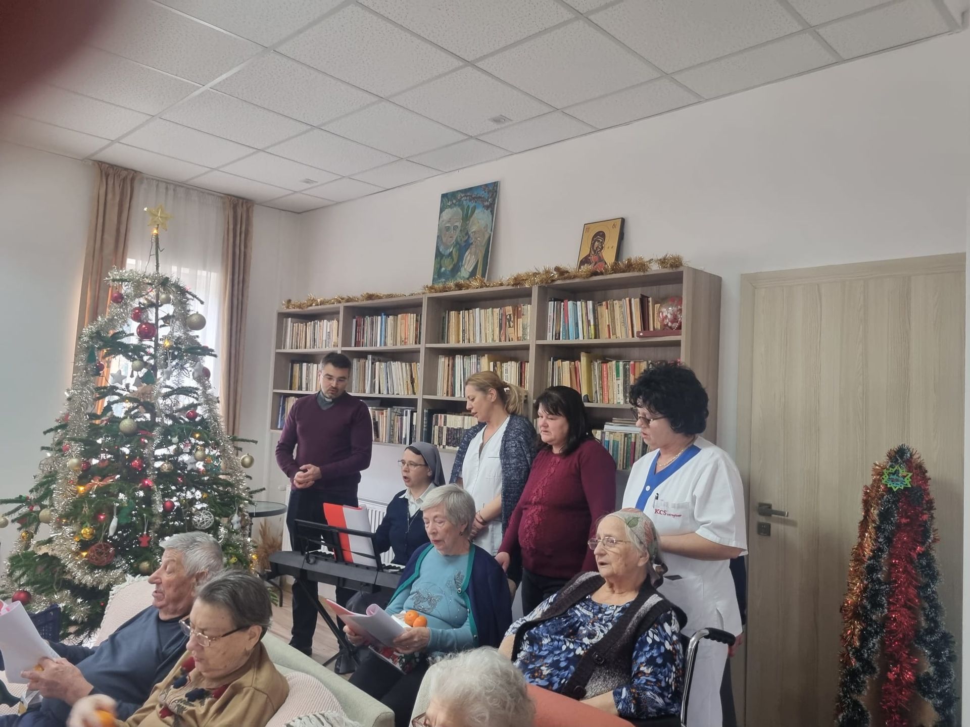 rezidenții „Casei Frențiu” au repetat colindele, și-au pregătit instrumentele muzicale: tamburina și clopoțeii pentru primirea unui oaspete drag, PSS Virgil Bercea.