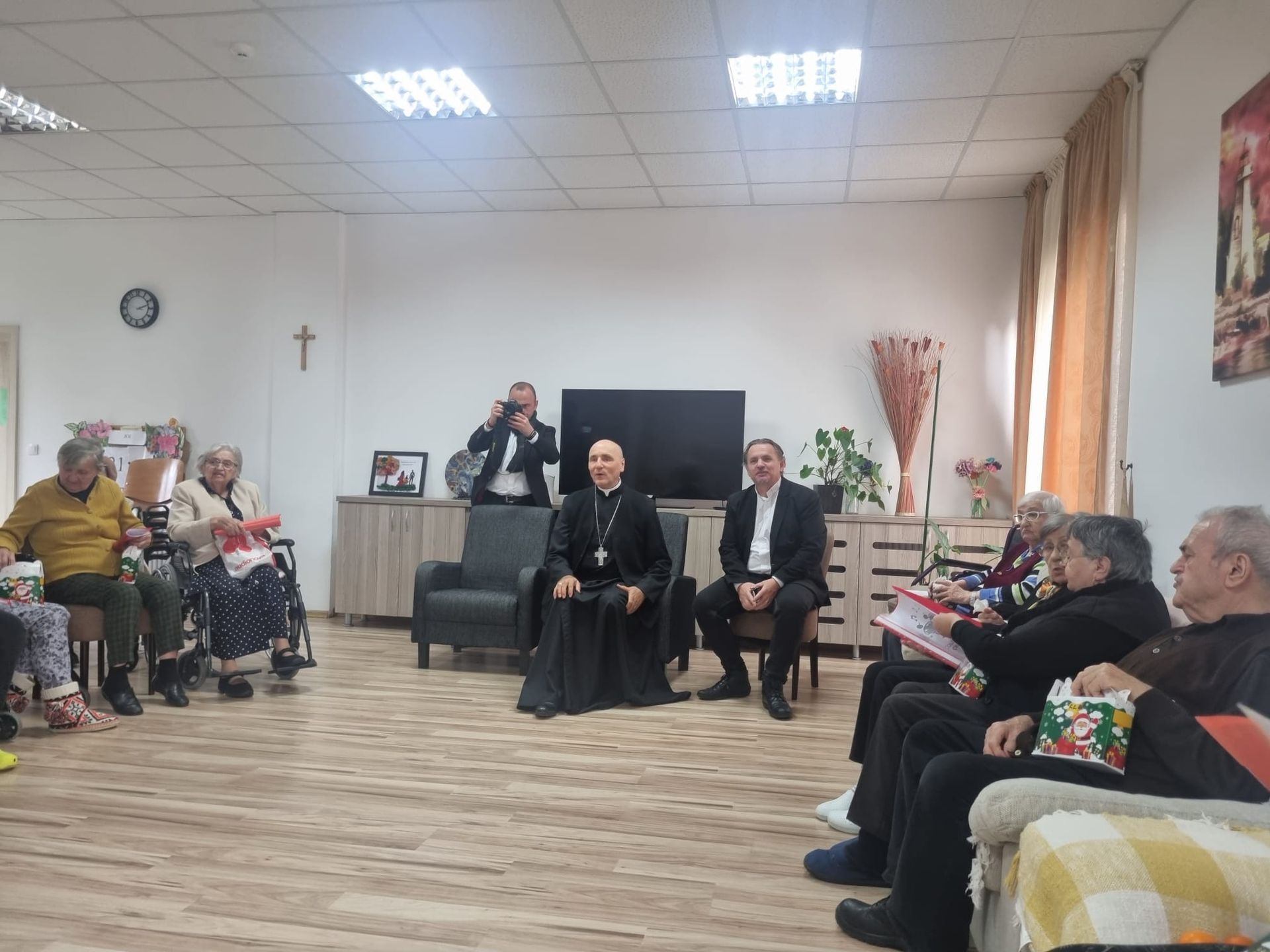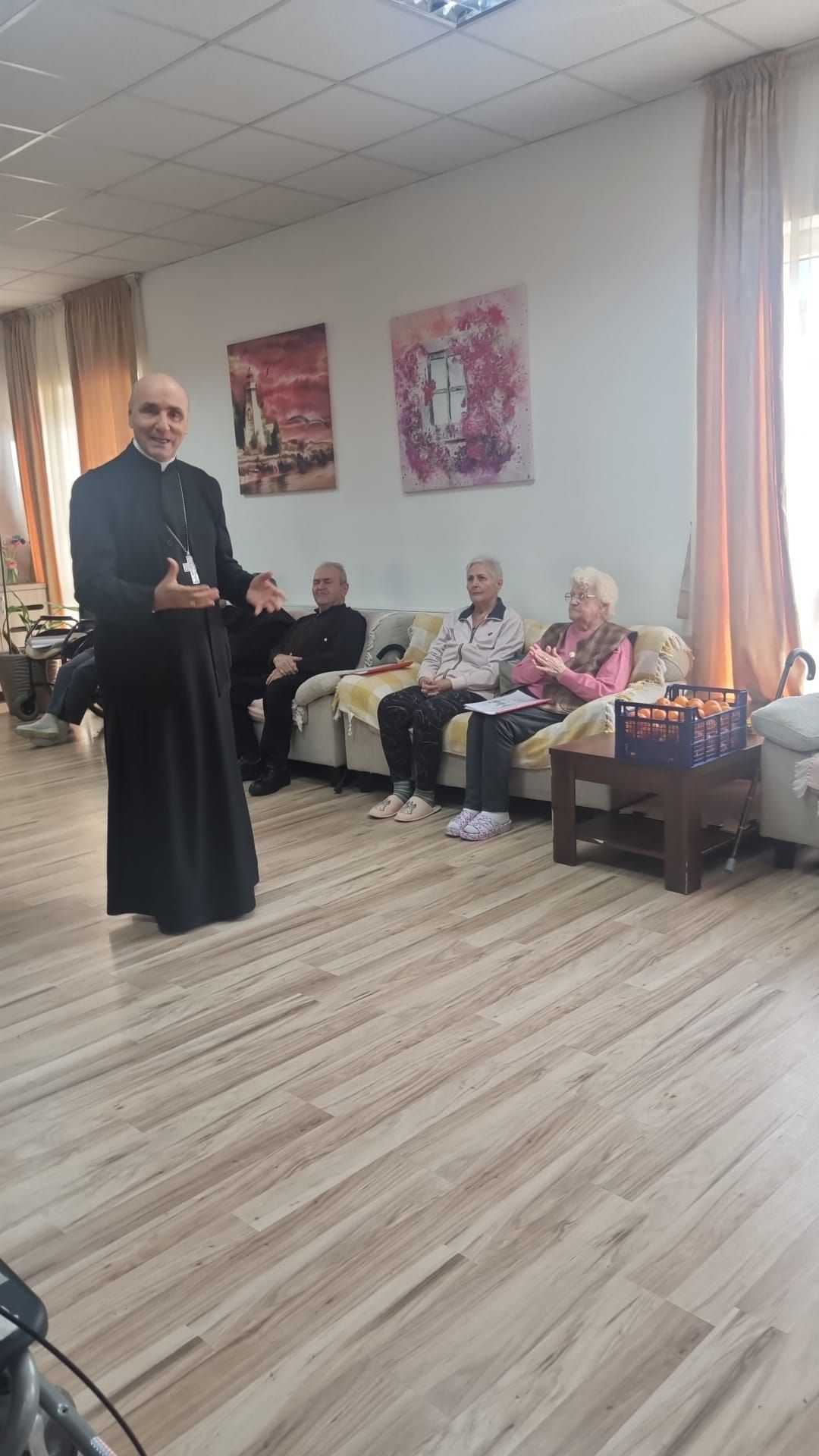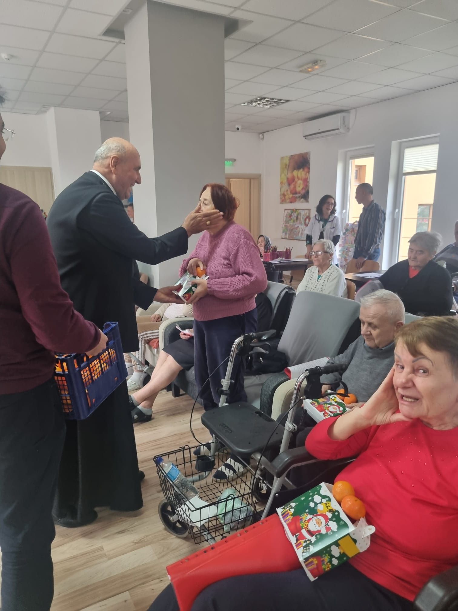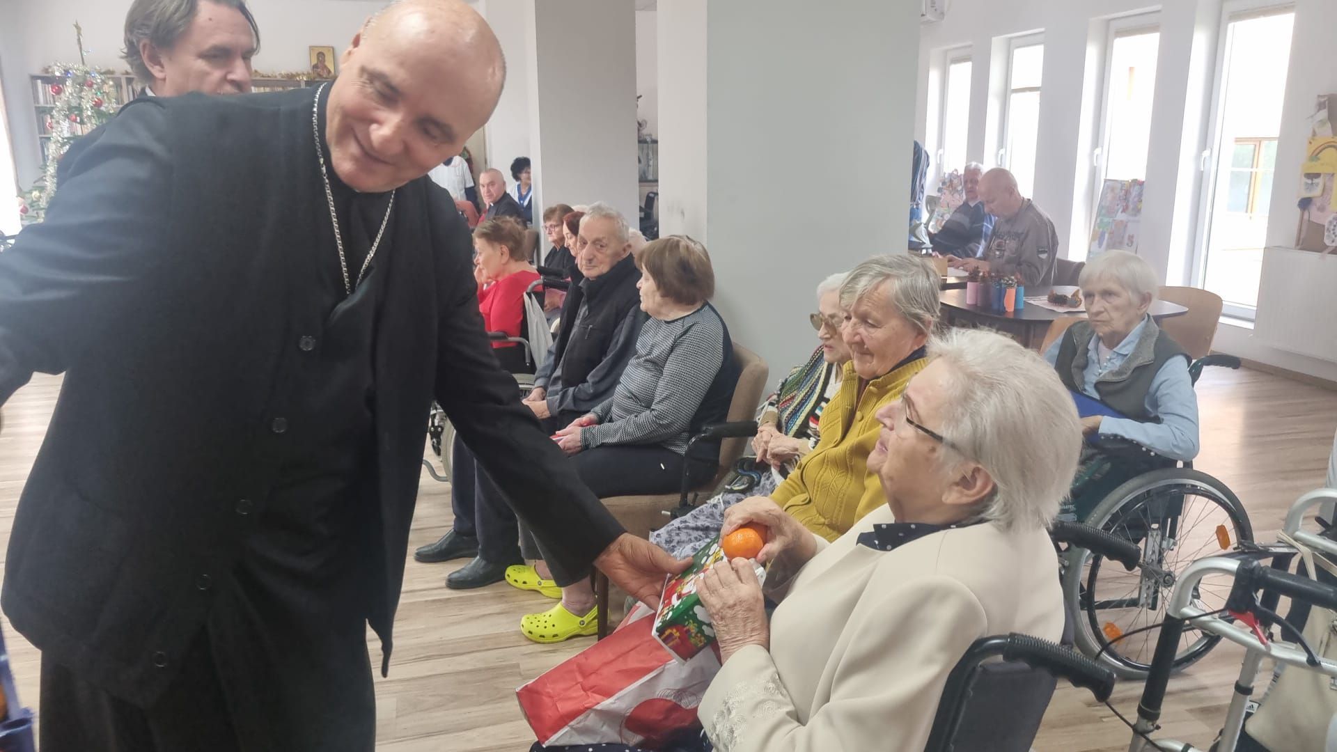 Vizita Preasfinției Sale a devenit o tradiție la ”Casa Frențiu”, anul acesta fiind cel de al treilea an când a răspuns invitației părintelui Olimpiu Todorean, președintele Asociației Caritas Eparhial, de a primi colinda rezidenților și de a împărtăși câteva cuvinte de îmbărbătare, dar și o binecuvântare acum, în preajma Nașterii Pruncului Isus. Preasfinția Sa a fost însoțit de părintele vicar responsabil cu preoții, Antonio Chifor, și secretarul Eugen Ivuț care, alături de părintele Olimpiu Todorean, Miruna Moza, coordonatoarea centrului rezidențial și de personalul centrului au colindat împreună cu bunicii.