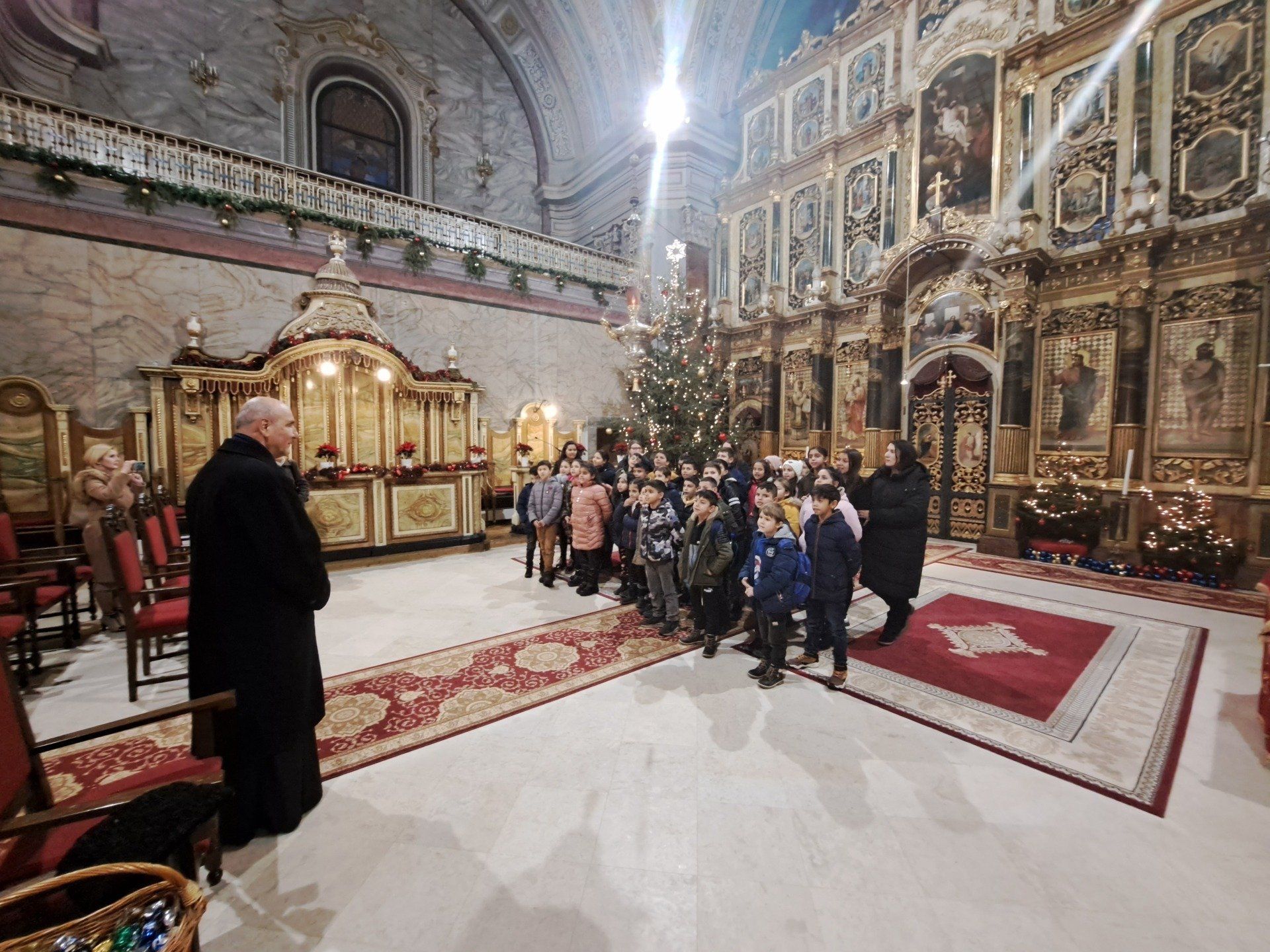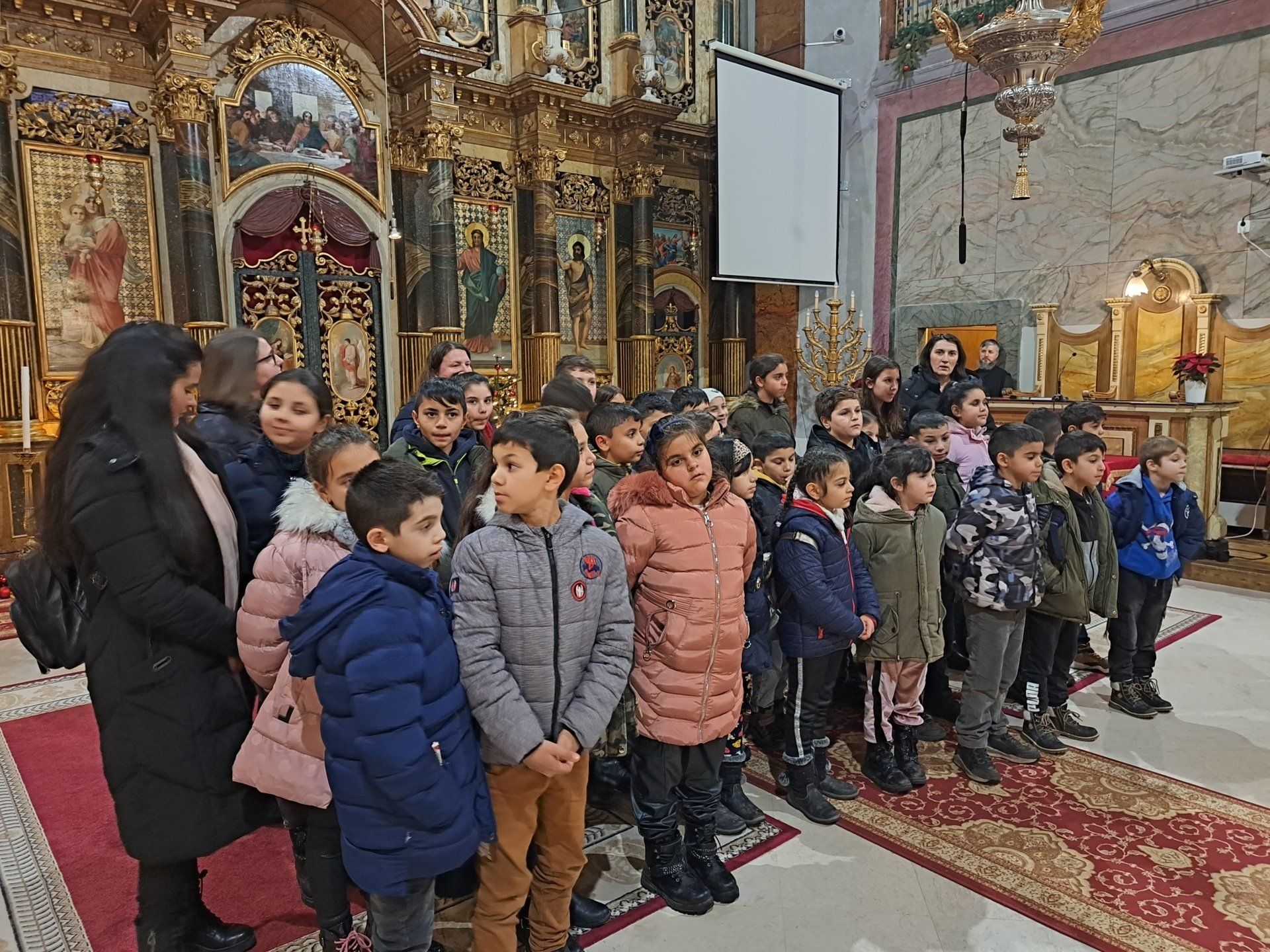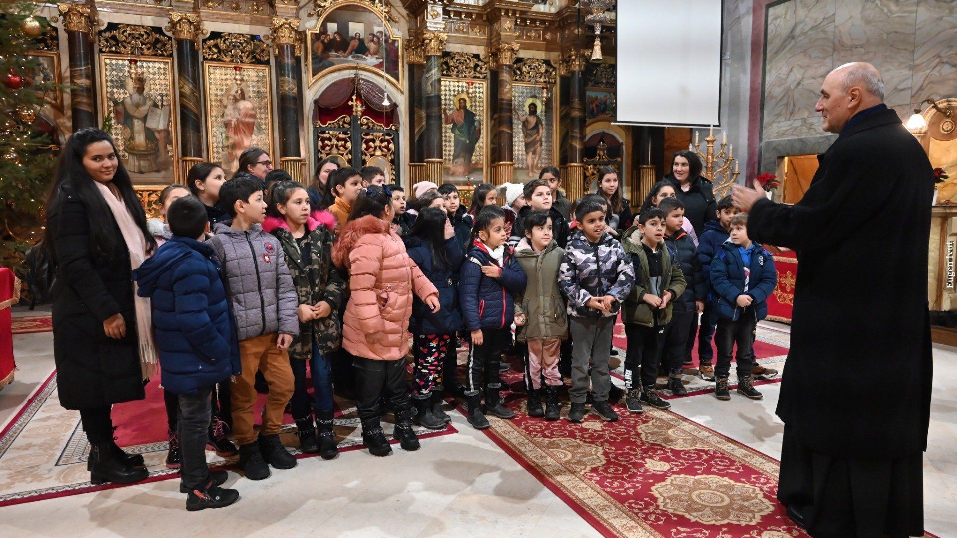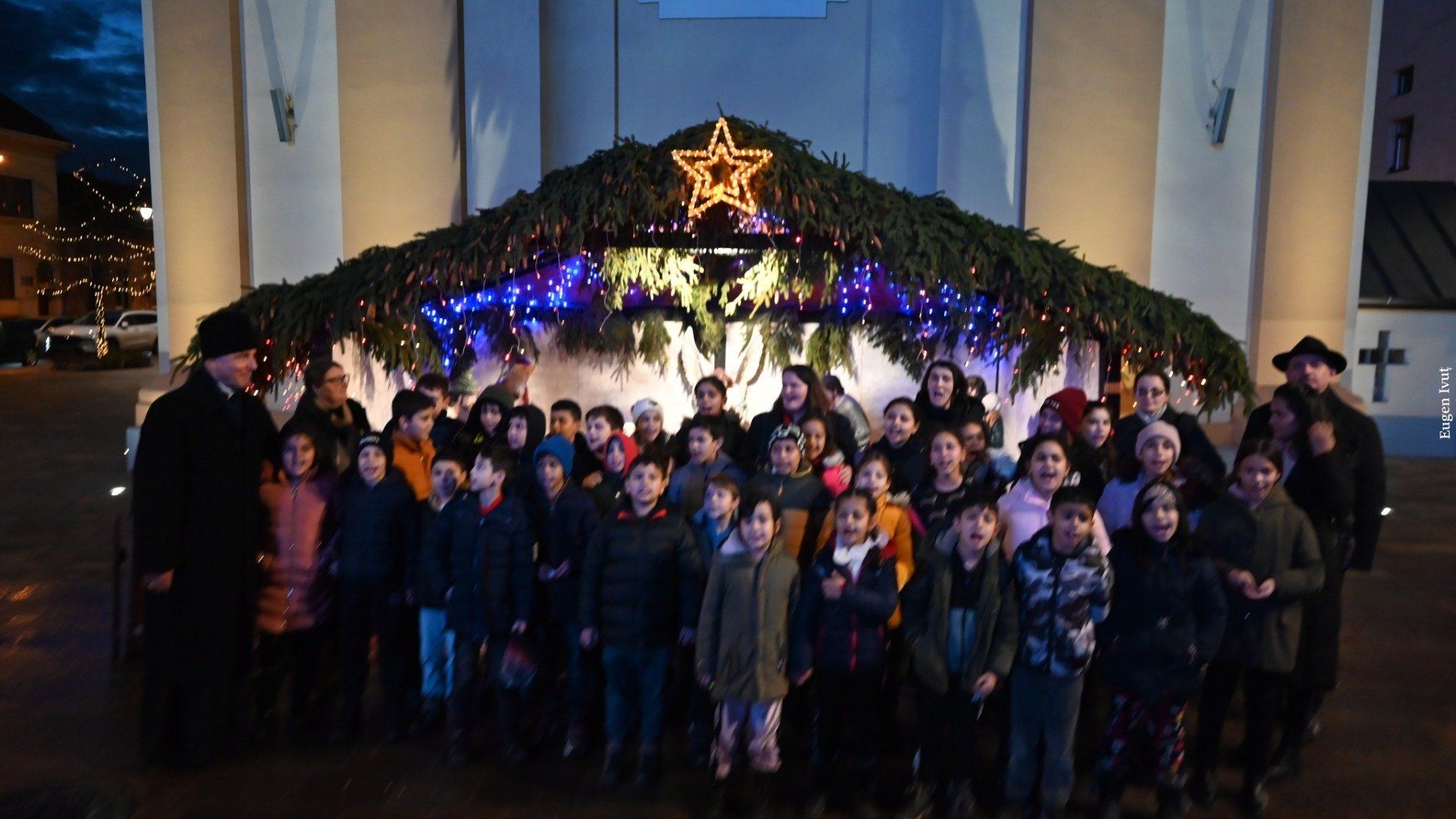 În jurul orei 17.30, în fața Ieslei Nașterii Domnului amplasată lângă Catedrala ”Sfântul Nicolae”, copiii însoțiți de educatoarele lor cărora li s-a alăturat și președintele asociației, pr. Olimpiu Todorean, au fost întâmpinați de PSS Virgil Bercea care a primit cu bucurie colindul copiilor. Împreună cu PSS Virgil Bercea, plini de emoția momentului, au intrat apoi în Catedrală vestind Nașterea Domnului prin colindul ”Ce vestire minunată”, iar prin colindul ”Cadoul de Crăciun” și-au exprimat iubirea lor față de semeni și darul lor pentru ei fiind iubirea celui care s-a întrupat. PSS Virgil Bercea, plin de blândețe și emoție profundă, i-a lăudat pe copii și le-a mulțumit pentru dăruirea cu care au înălțat colindul. Și ca bucuria să fie deplină, PSS Virgil Bercea le-a oferit copiilor dulciuri și fructe.