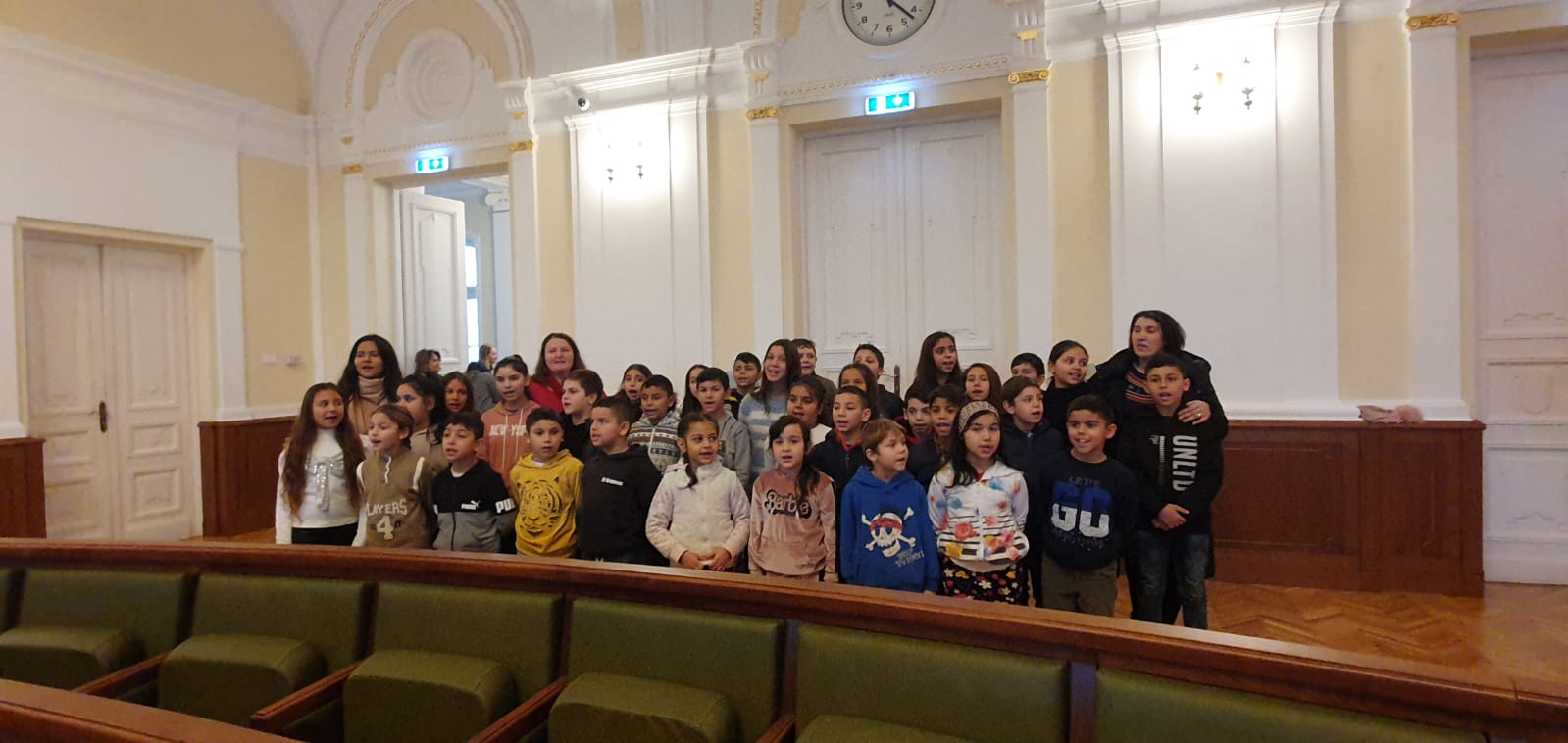 Următoarea destinație a fost Primăria Municipiului Oradea, unde copiii au colindat stafful Primăriei, colindul profund răsunând în sala festivă, audiența trăind emoția momentului, iar doamna viceprimar Antonia Nica le-a mulțumit pentru emoția și trăirile transmise. Acolo i-a așteptat și Moș Crăciun lângă bradul împodobit, oferindu-le copiilor cadouri, spre marea lor bucurie.