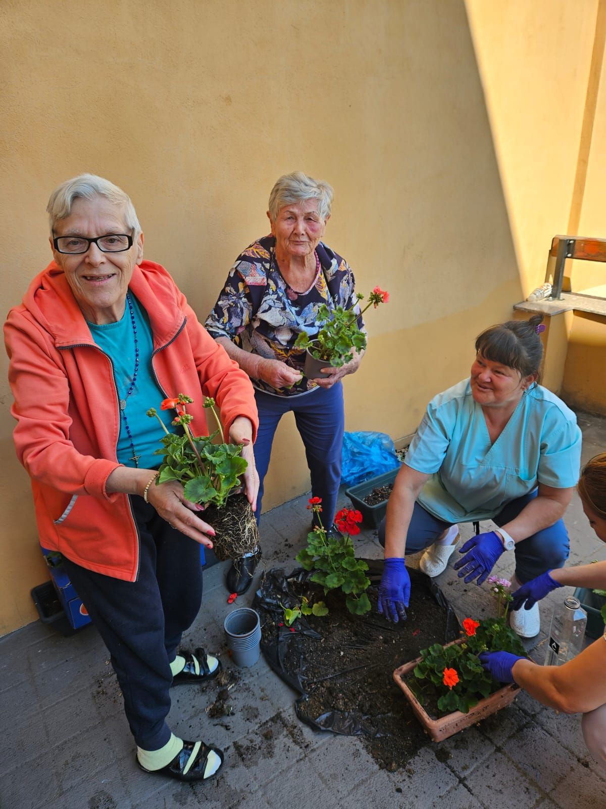 Împreună cu bunicuțele dragi din „Casa Frențiu”, am transformat terasa într-un colț de rai plin de flori, culoare și bucurie!