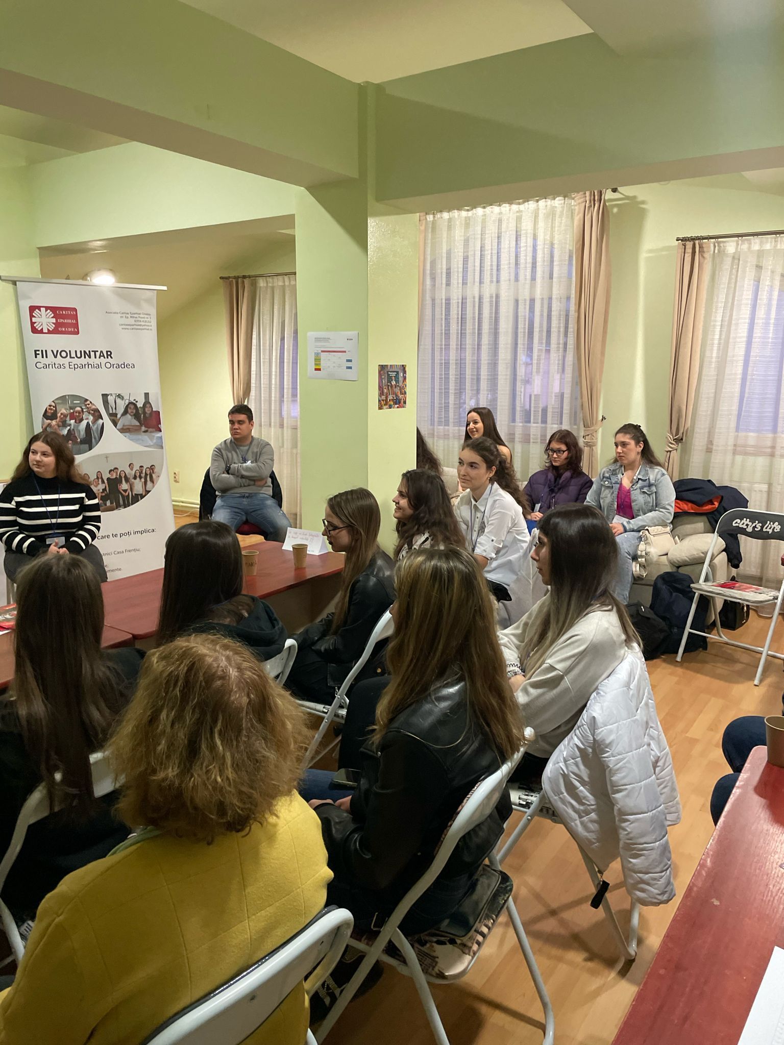 În seara zilei de 5 martie a.c. am dat startul noului curs de doctori-clovni. Au fost prezenți 19 voluntari din cei 25 înscriși la curs, dintre care 14 voluntari noi și 5 dintre voluntarii care sunt deja înscriși în baza de date a organizației și care activează la noi de mai mult timp. Majoritatea sunt elevi la liceele din Oradea, precum: Liceul Greco-Catolic ,,Iuliu Maniu”, Colegiul Național ,,Iosif Vulcan”, Liceul Teoretic ,,Lucian Blaga”, Colegiul Tehnic ,,Traian Vuia”, Colegiul Național ,,Onisifor Ghibu”, studenți ai Universității din Oradea, dar și adulți care pe lângă munca de arhitect, inginer, asistență medicală, profesor etc. reușesc să se implice în activitățile noastre.