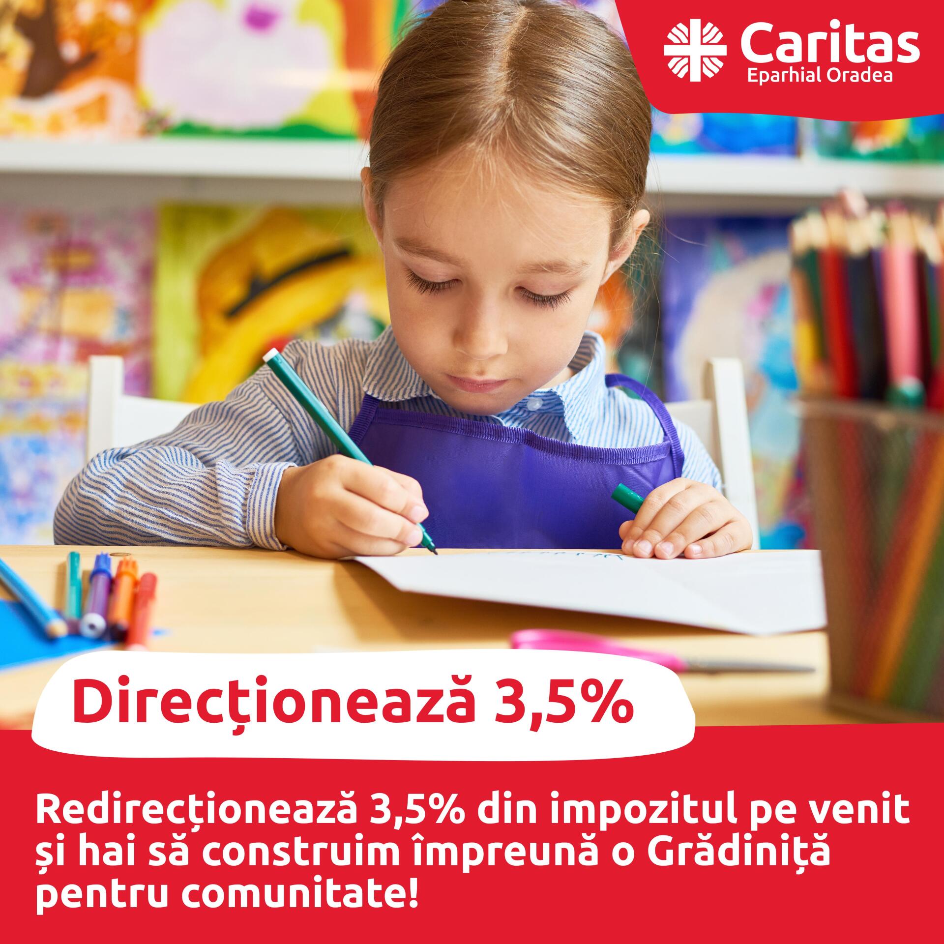 Odată cu rebrandingul Caritas Eparhial Oradea din 2020, am reușit să facem o modernizare și la site-ul Asociației, www.caritaseparhial.ro prin care, acum, se poate completa și trimite formularul 3,5% în totalitate digital. Tot ce trebuie să facă cei care doresc să ne sprijine este să descarce formularul, să completeze câmpurile cu datele lor, să semneze digital cu ajutorul programului Adobe Reader, iar apoi să reîncarce formularul semnat pe site și astfel ajunge la noi, după care ne ocupăm să îl depunem la ANAF, în termenul de depunere.