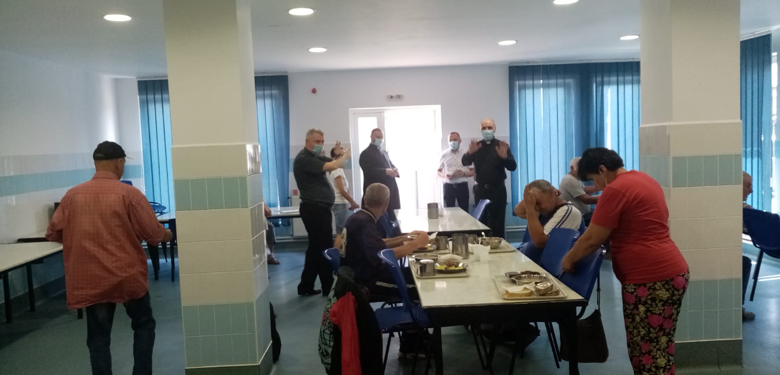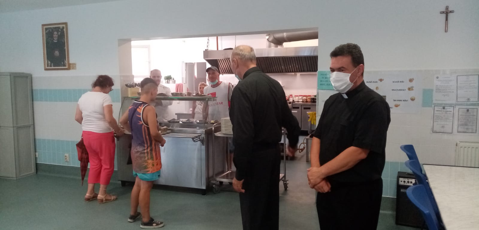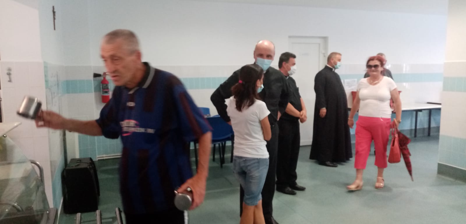 În cursul zilei de 13 iulie a.c., am avut surpriza ca pragul cantinei noastre sociale din cadrul Centrului ”Maria Rosa” să fie trecut de Preasfințitul Virgil Bercea, Episcop greco-catolic de Oradea însoțit de Monseniorul Simone Giusti, Episcop de Livorno. Momentul ales de oaspeții de prezența cărora ne-am bucurat nu a fost unul întâmplător, ci a fost ora prânzului, când beneficiarii ajung la cantină și primesc mâncarea caldă pe care o servesc la masă, socializând.