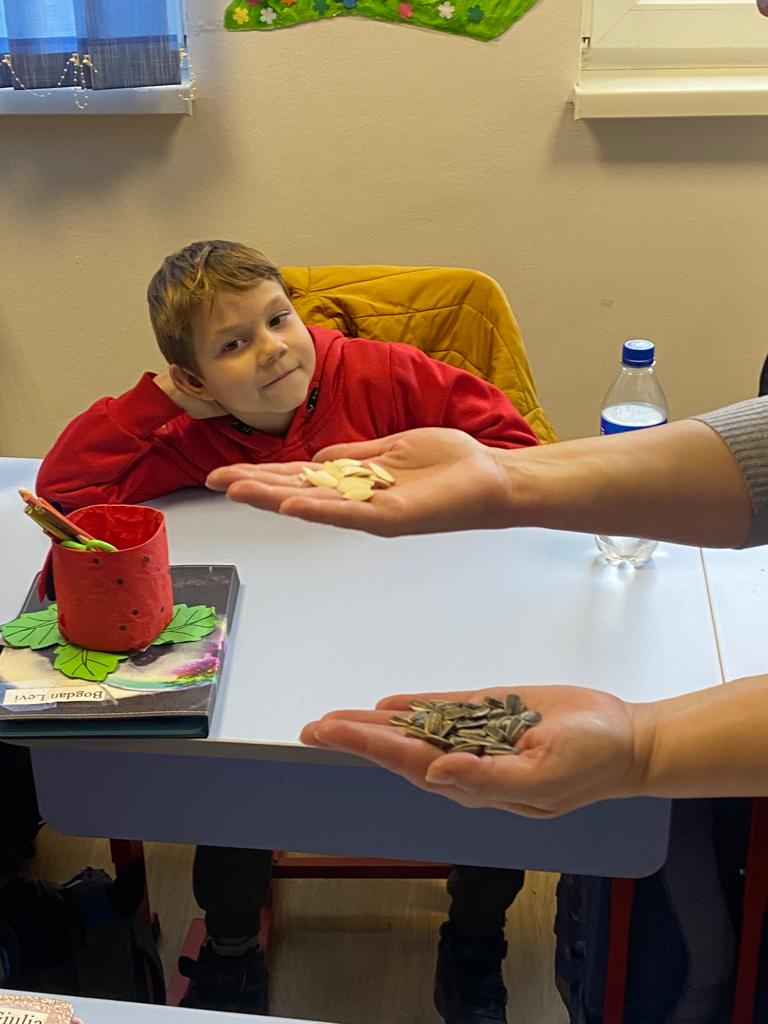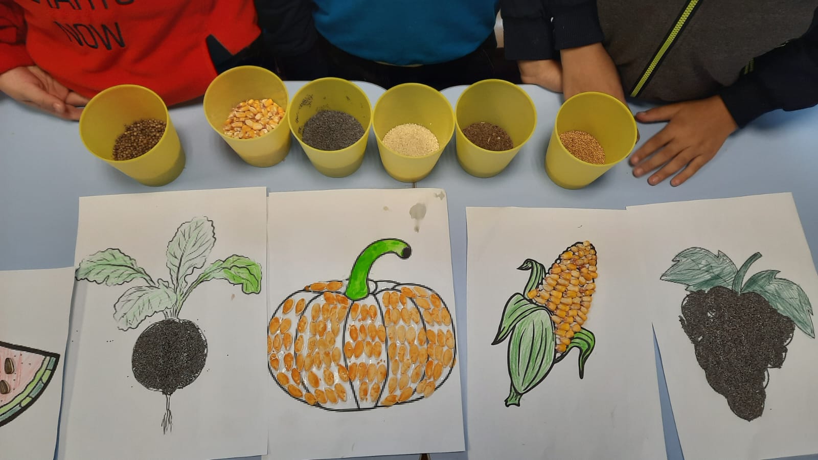 Scopul activității a fost acela ca cei șase copii din clasa I să afle informații referitoare despre importanța consumului de semințe, să cunoască tipuri de semințe și ce preparate pot face cu ele, dar și să realizeze desene cu ajutorul semințelor.