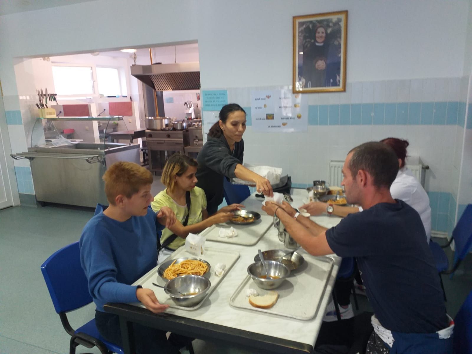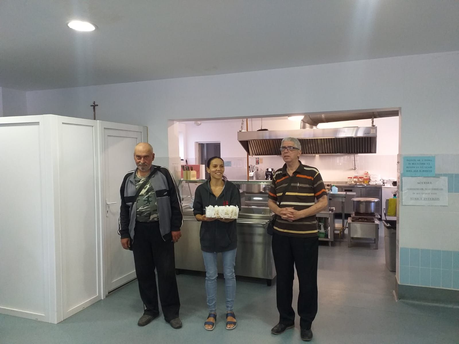 Zâmbetele celor prezenți la masa de prânz și nerăbdarea de a savura acest desert au întregit atmosfera din cantină și i-au emoționat pe sărbătoriții care au trăit acest moment cu timiditate și recunoștință. Cântarea specifică acestui eveniment a atins într-un mod sensibil sufletele beneficiarilor aniversați!