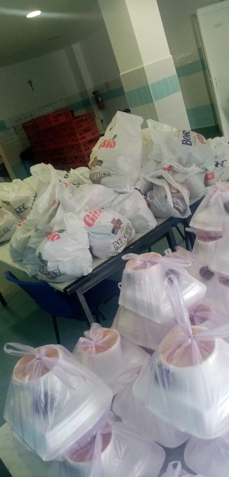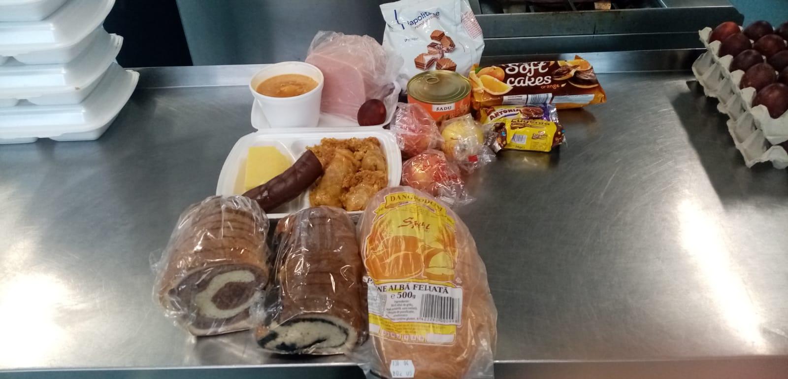 Astfel, beneficiarii, senini și răbdători, au primit pachetele cu pâine și alte alimente, fructe și dulciuri - pentru zilele când cantina va fi închisă -, dar și mâncarea caldă: ciorbă de fasole uscată cu afumătură, sarmale, cârnați cu mămăligă și un ou roșu.