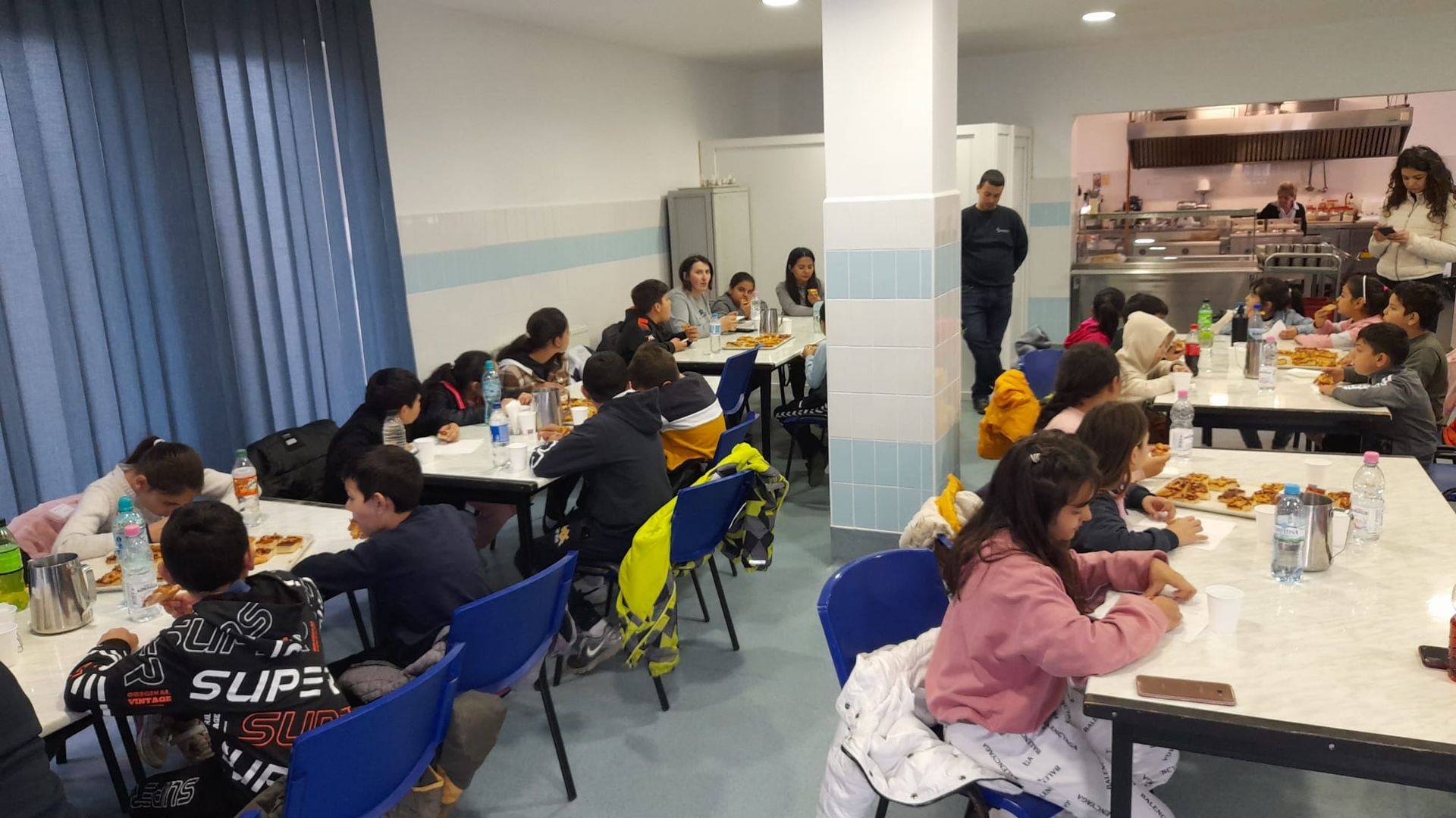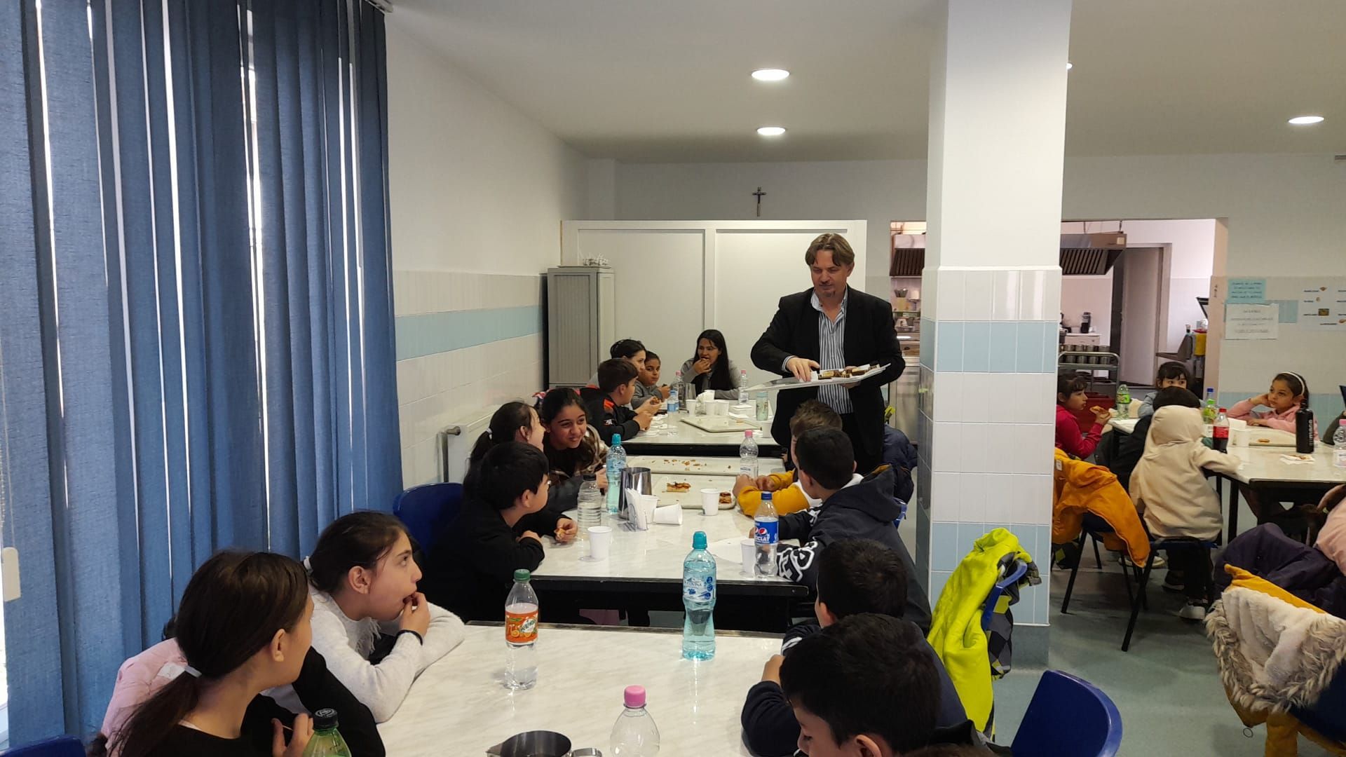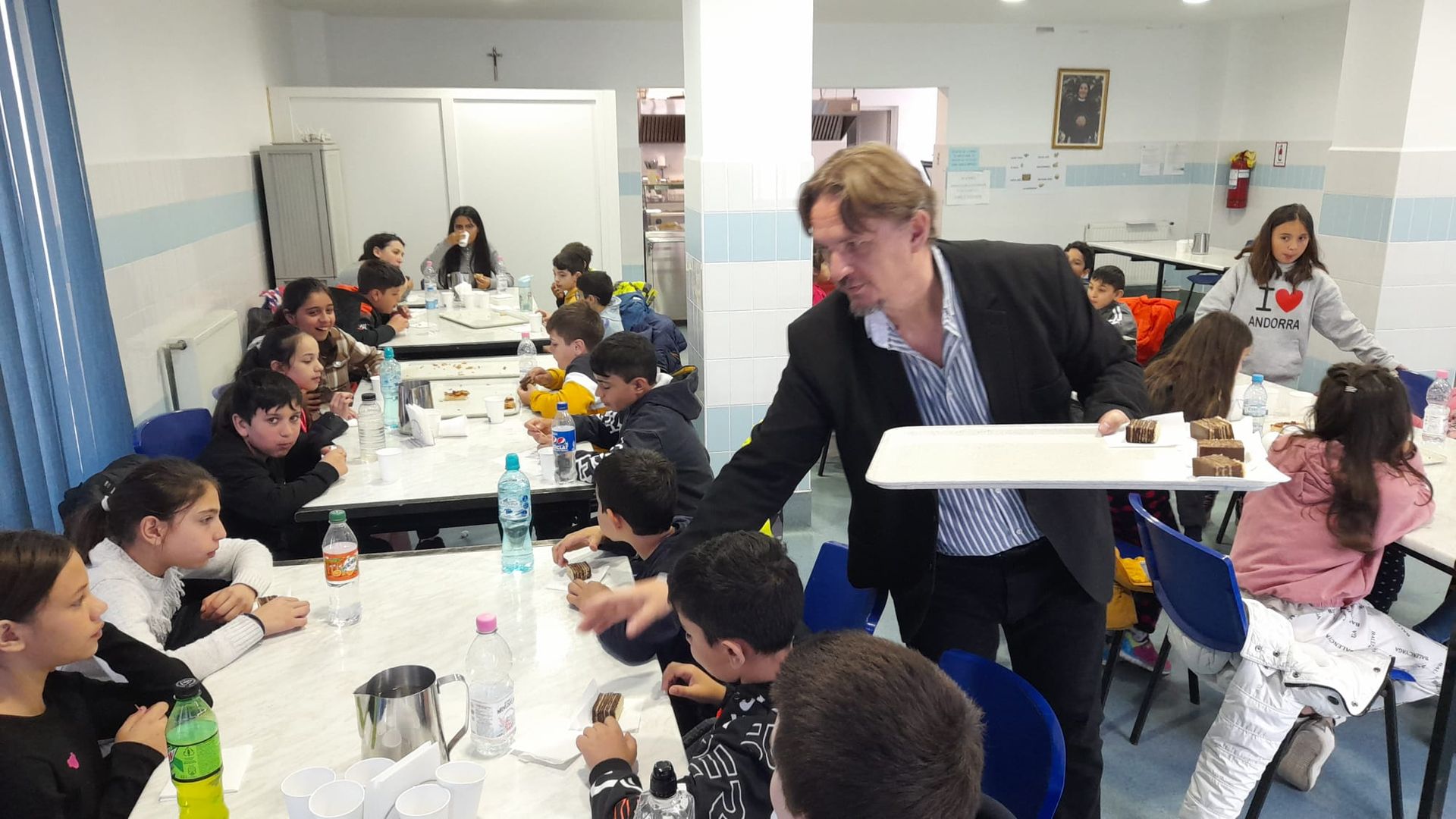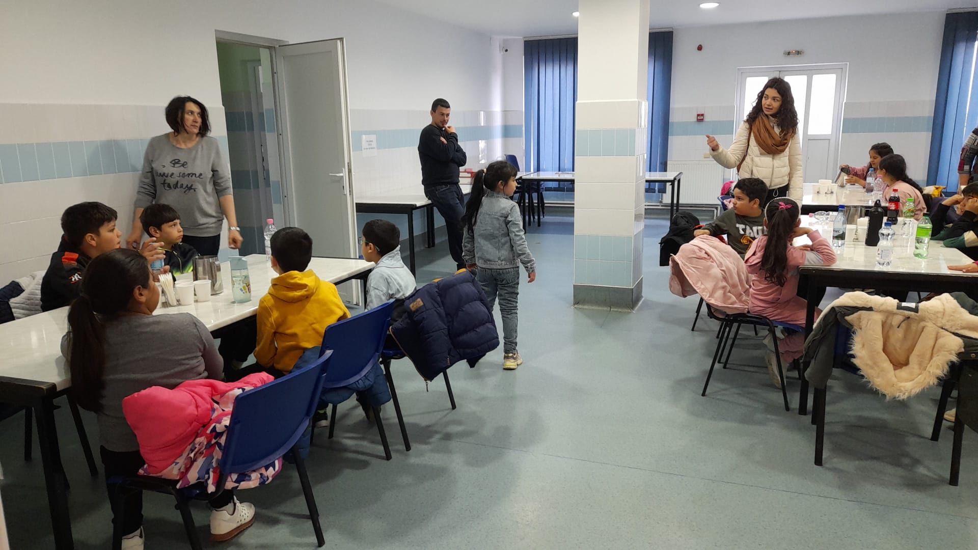 La ora prânzului, copiii au fost la cantina socială a asociației, pentru a servi pizza și un desert care le-au întregit starea de bine care se citea pe chipurile lor. Atmosfera a fost familială și veselă, cu atât mai mult cu cât micuții noștri au adus un dar simbolic pentru beneficiarii cantinei sociale, respectiv un recipient cu “Mesaje din suflet pentru suflet!”