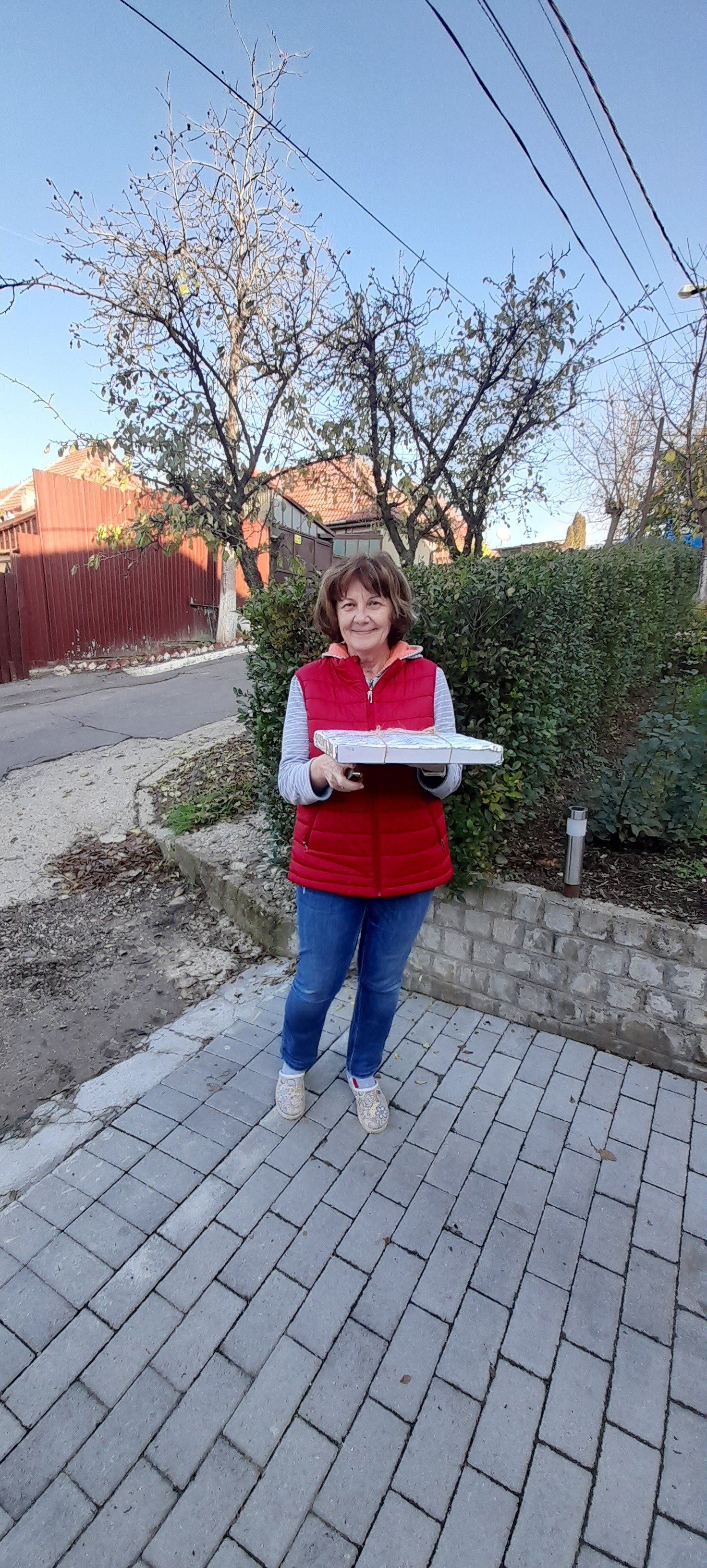 care, deși nu îi cunoaște pe beneficiari, le-a oferit cu mult drag și cu multă bunătate această prăjitură. Seninătatea din privire cu care a întins spre noi desertul pregătit de dumneaei a încălzit vremea rece specifică acestui moment al anului. Îi mulțumim, în numele persoanelor aniversate, dar și al tuturor celor prezenți la masa de prânz!