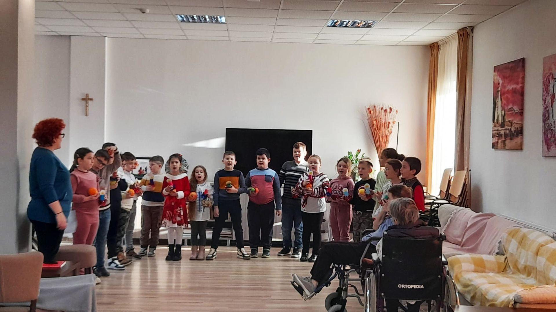 care au înduioșat sufletele seniorilor noștri și care ne-au transmis, într-un mod sincer și autentic, frânturi din veselia și puritatea lor, sub atenta îndrumare a doamnei învățătoare