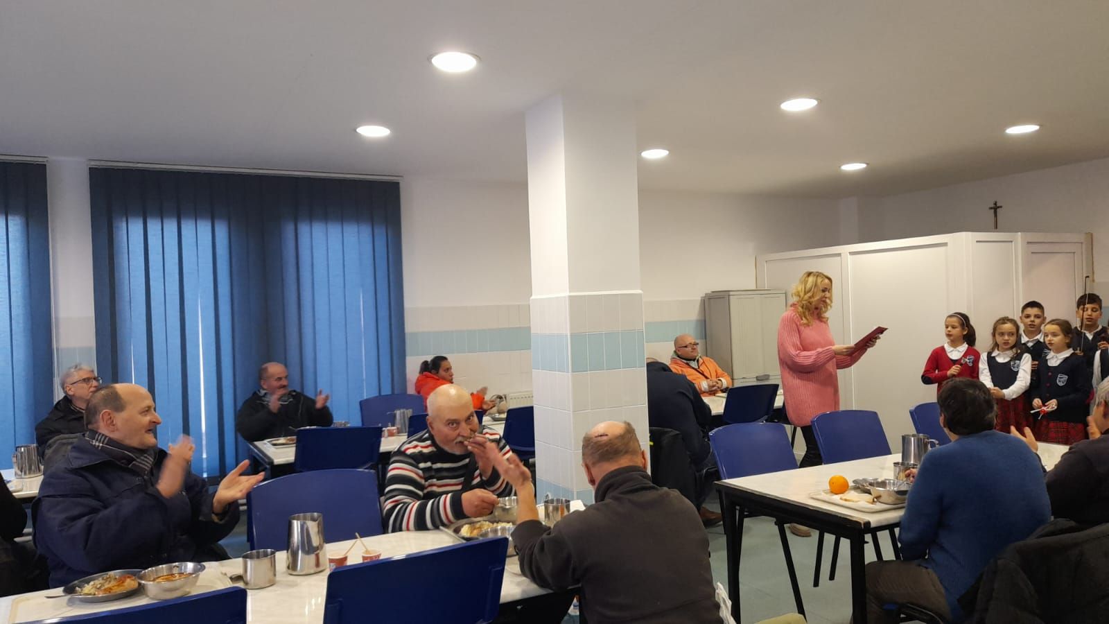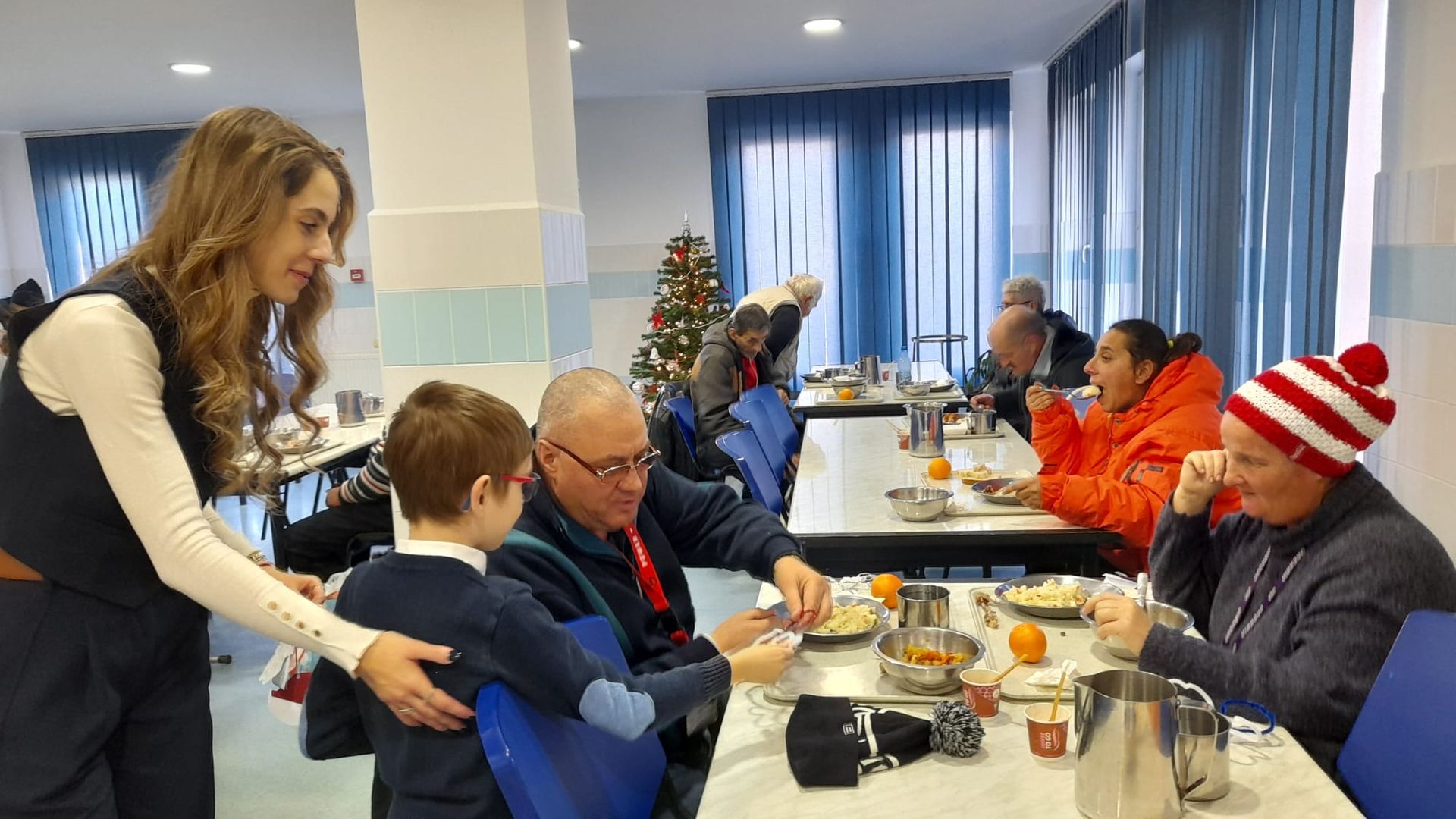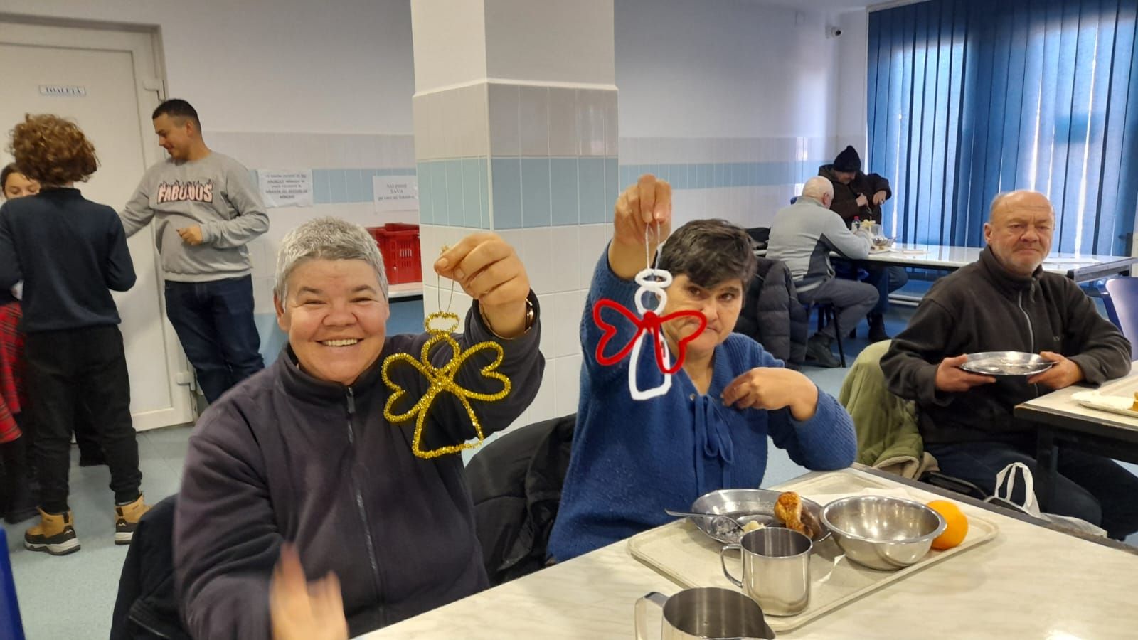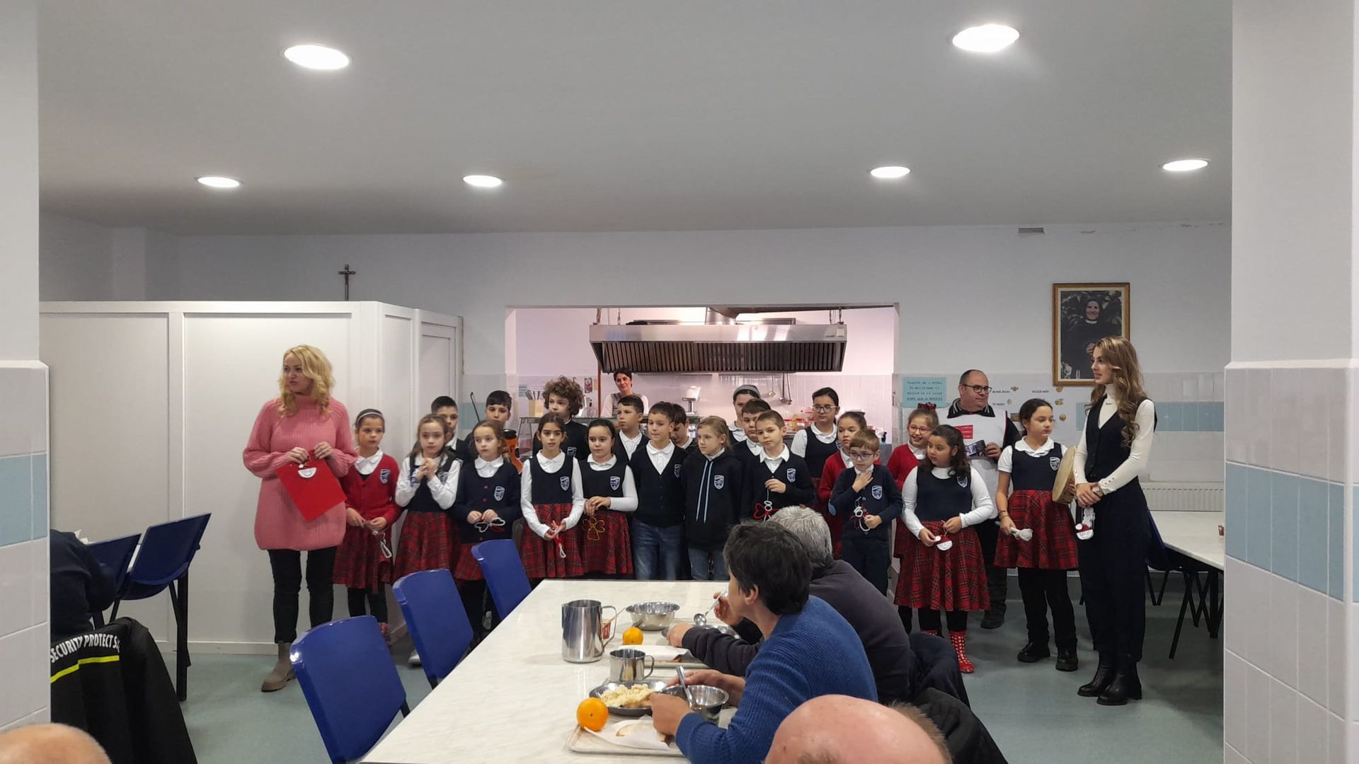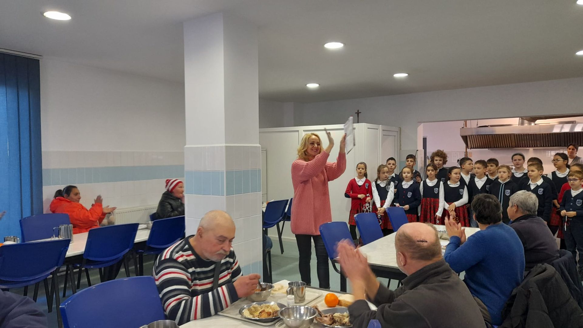 am primit cu brațele deschise copiii îmbujorați și veseli care s-au pregătit temeinic pentru a încălzi sufletele beneficiarilor prezenți la masa de prânz - persoane fără adăpost, persoane care nu mai au o familie și nici bucuria de a asculta glasuri de copii care să îi colinde, în prag de sărbători.