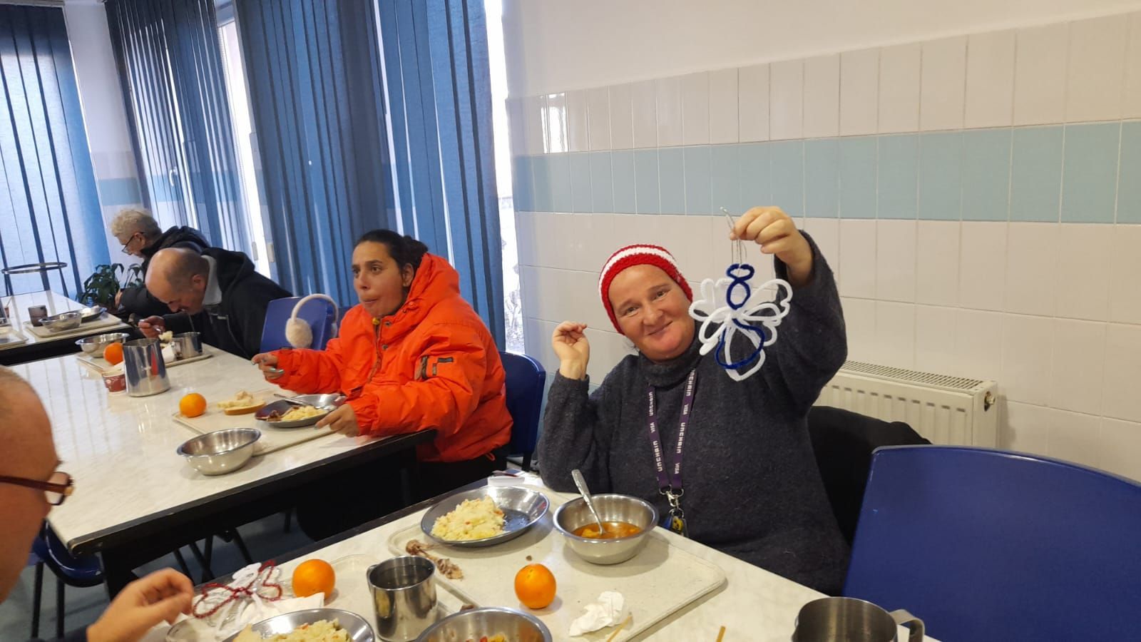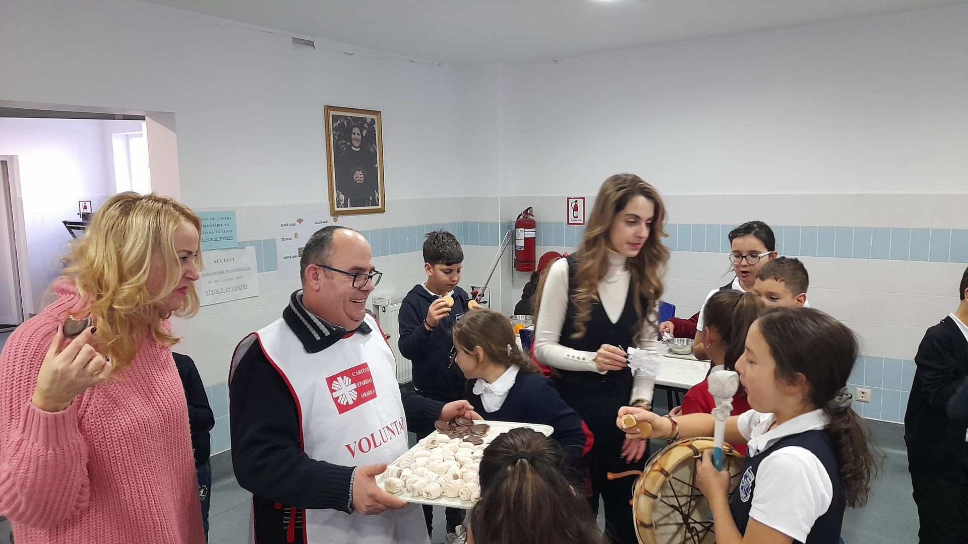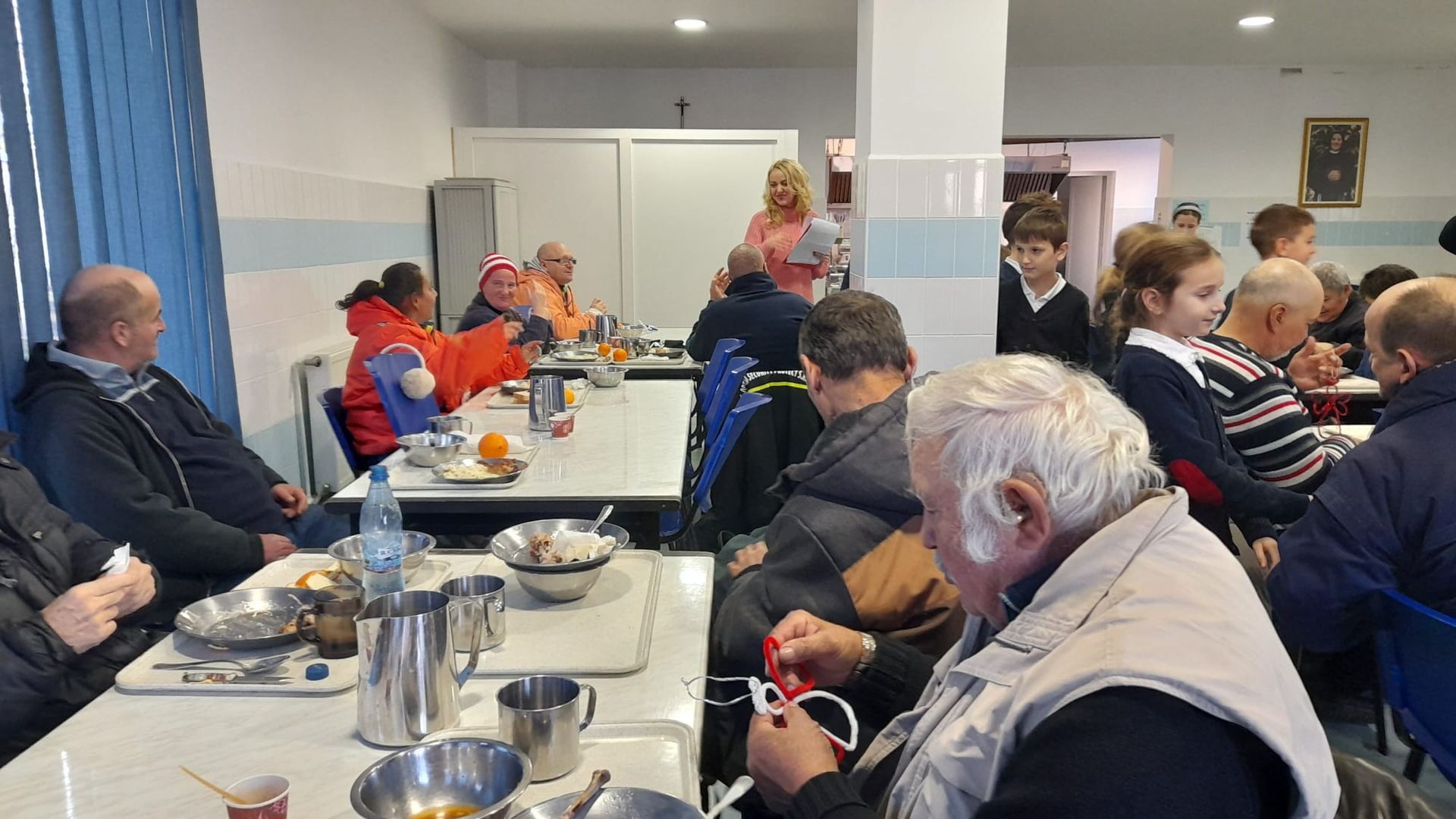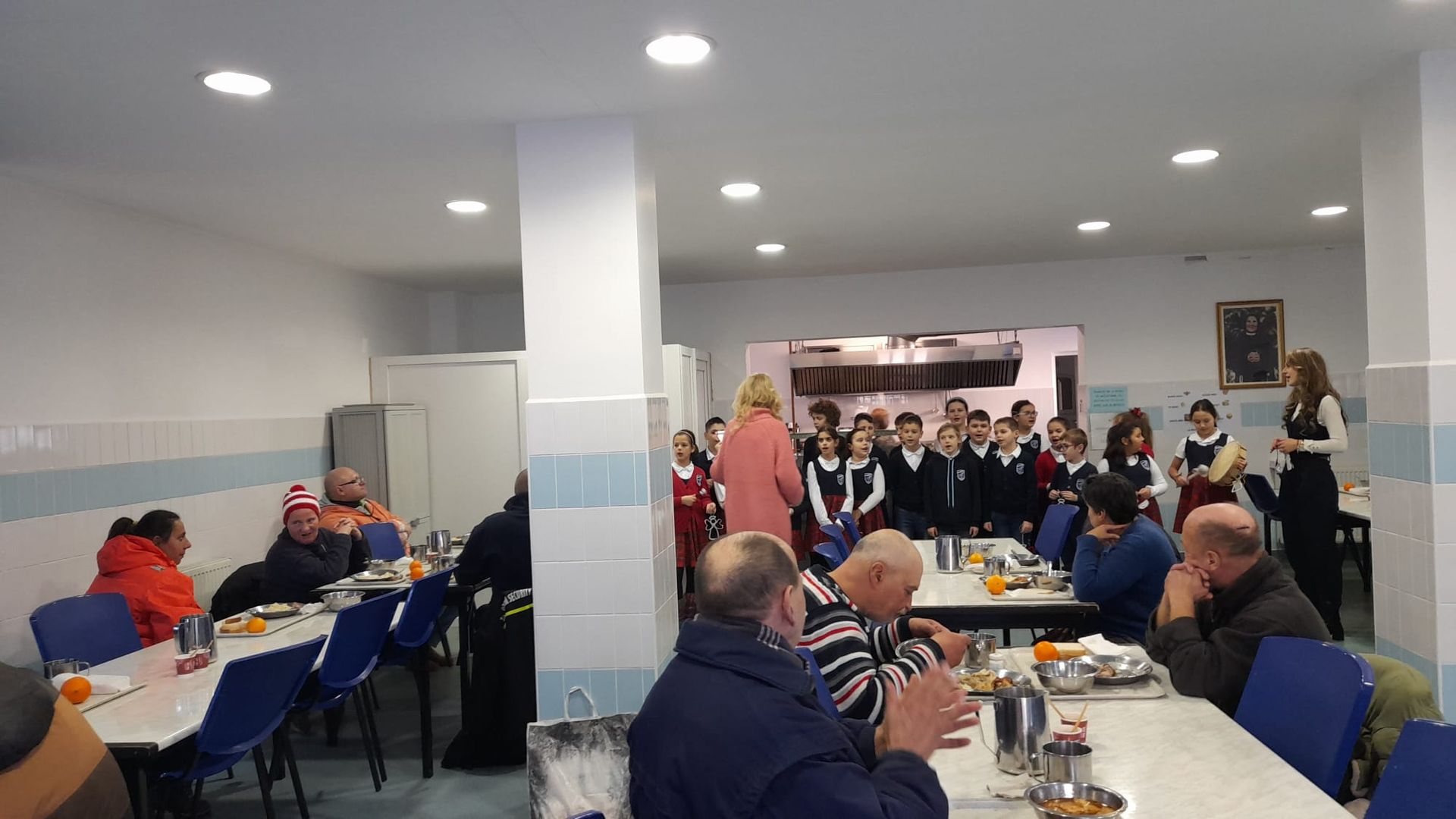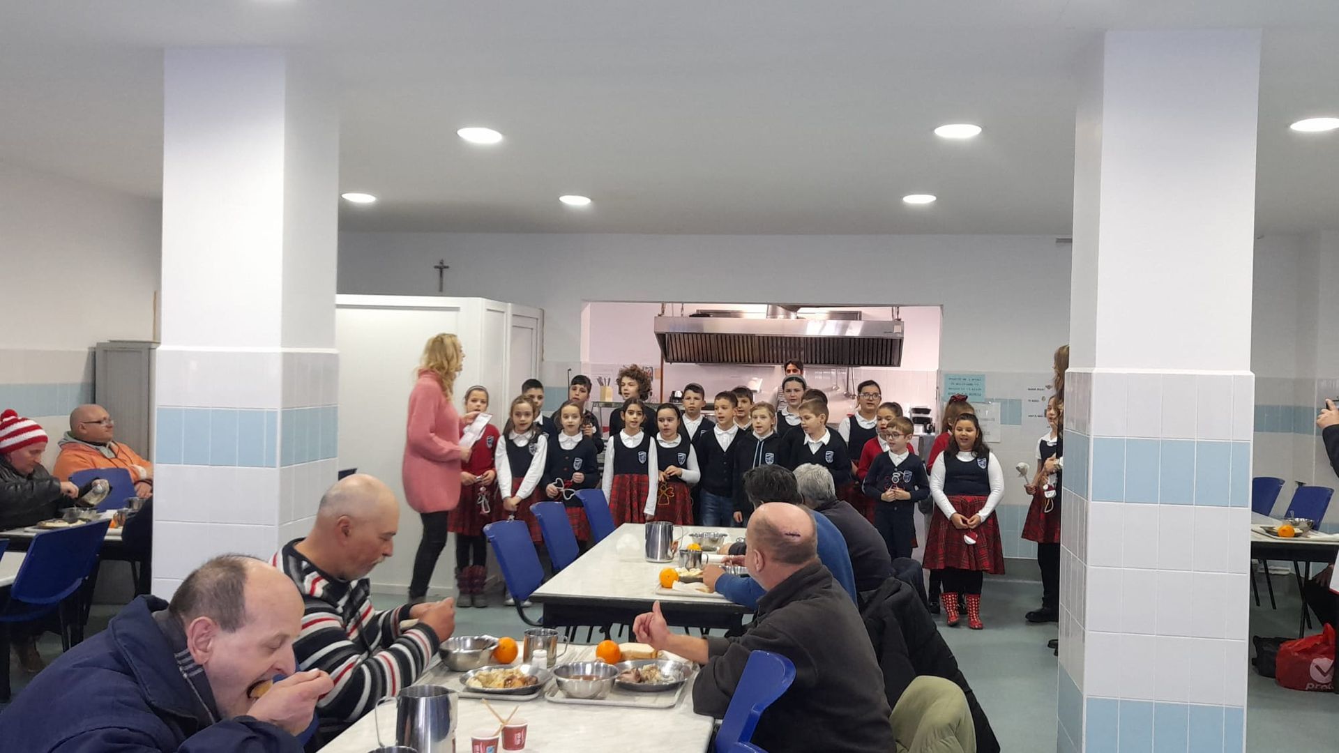 am primit cu brațele deschise copiii îmbujorați și veseli care s-au pregătit temeinic pentru a încălzi sufletele beneficiarilor prezenți la masa de prânz - persoane fără adăpost, persoane care nu mai au o familie și nici bucuria de a asculta glasuri de copii care să îi colinde, în prag de sărbători.