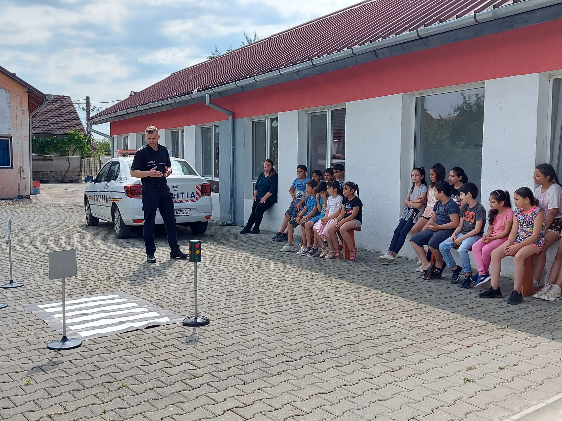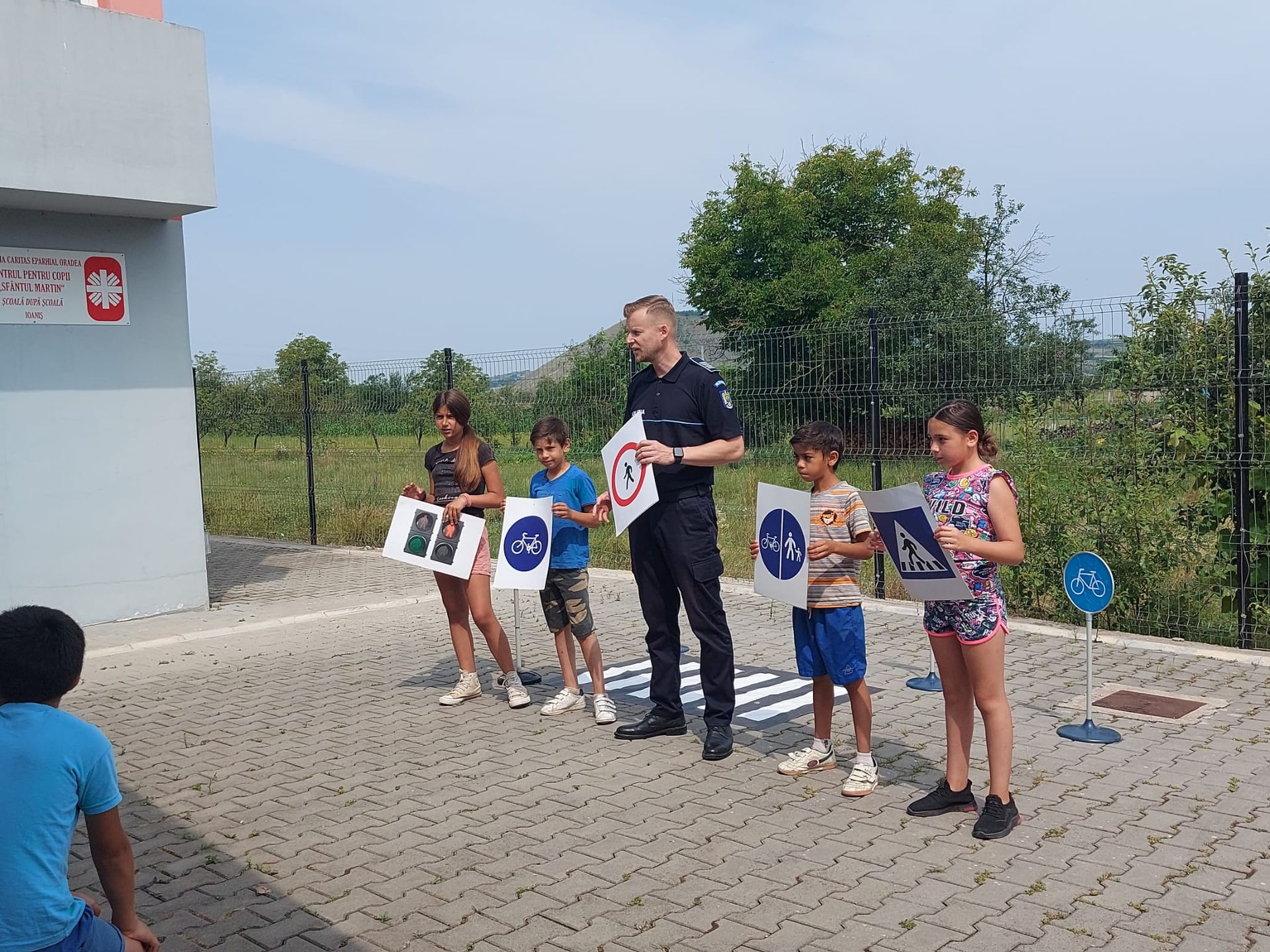 În cadrul activității pentru siguranța rutieră au fost prezentate noțiuni specifice circulației rutiere, noțiuni privind siguranța copiilor pe stradă și la locurile de joacă. Cu această ocazie li s-au oferit informații utile privind modul în care pot fi în siguranță atunci când folosesc bicicleta și trotineta, informații despre vârsta legală și măsurile de protecție care trebuie luate atât ziua, precum și când se înserează. De asemenea, au fost informați despre cum se circulă corect în calitate de pietoni, cum se traversează strada marcată cu indicatoare rutiere sau semaforizată, dar și în lipsa acestora.