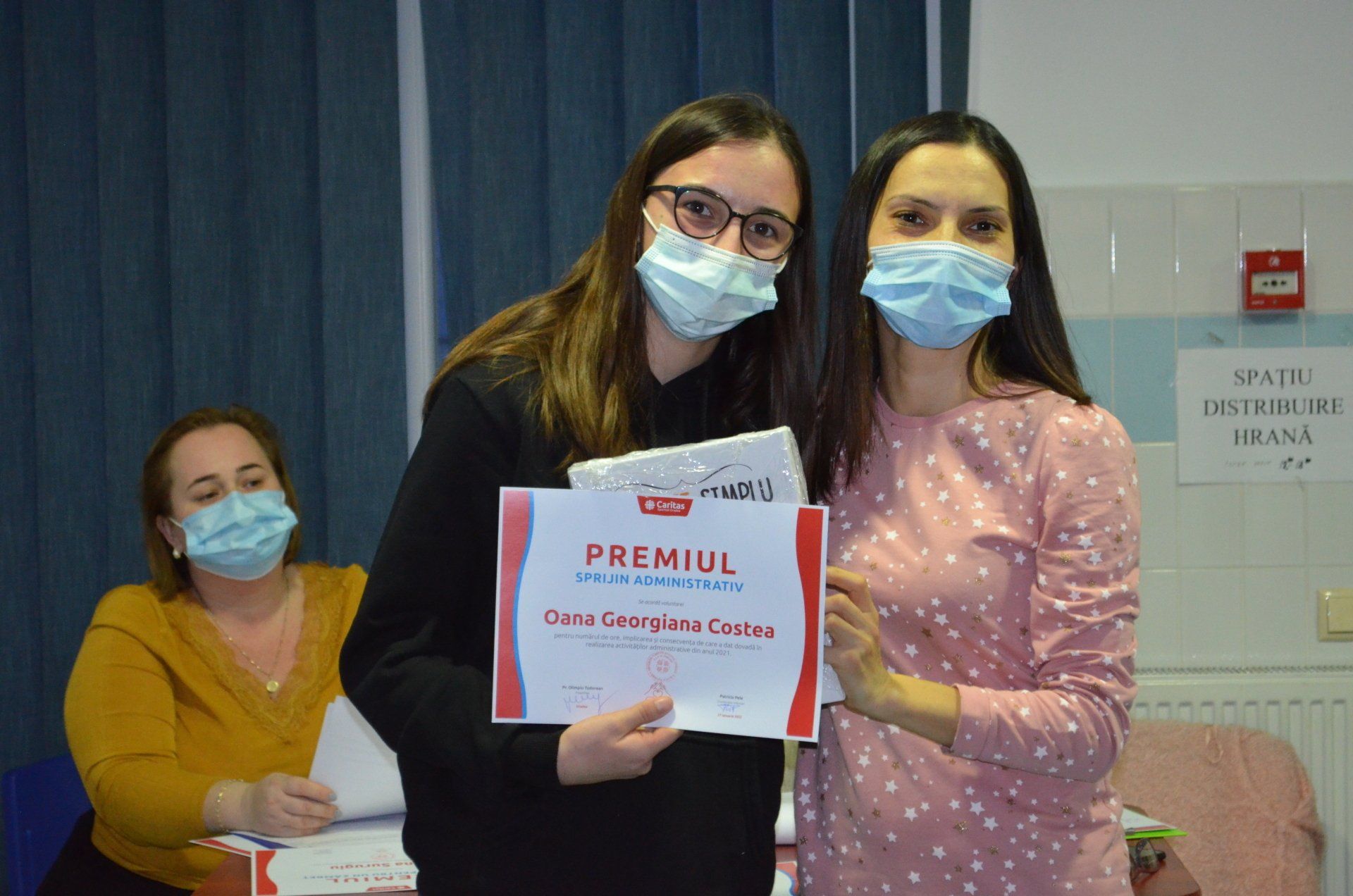 Pentru respectarea măsurilor impuse de autorități, a fost necesar ca, anul acesta, Campania 3,5% și Cutia de Crăciun să fie mutate exclusiv în mediul online. Drept urmare ne-am reorganizat, iar premiul pentru Administrativ ne-am gândit să îl acordăm pentru implicarea și ajutorul în activitățile care au vizat magazinul și depozitul de haine.