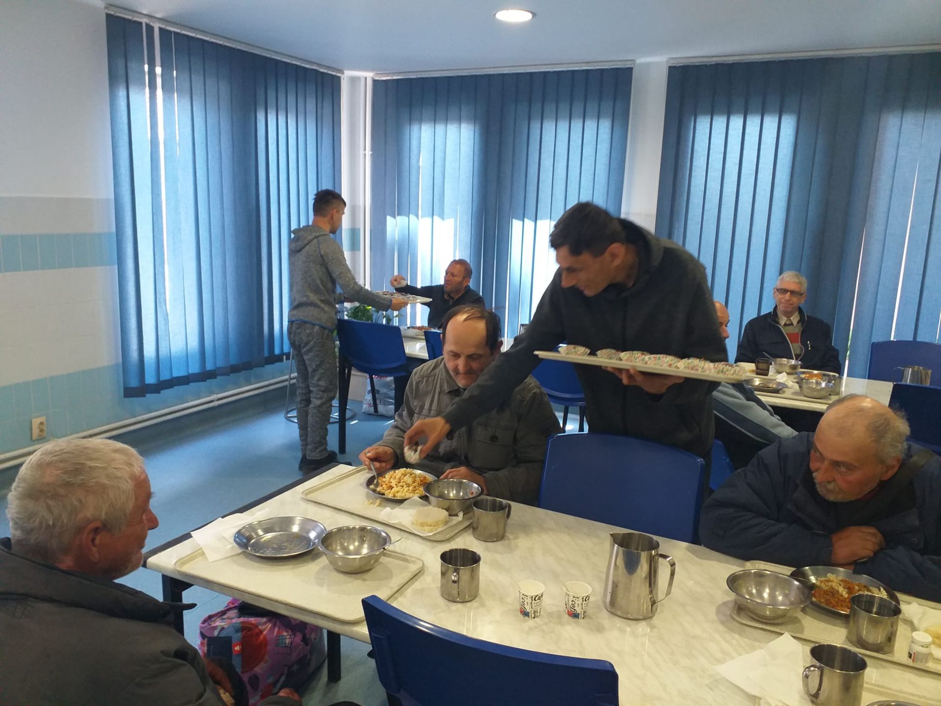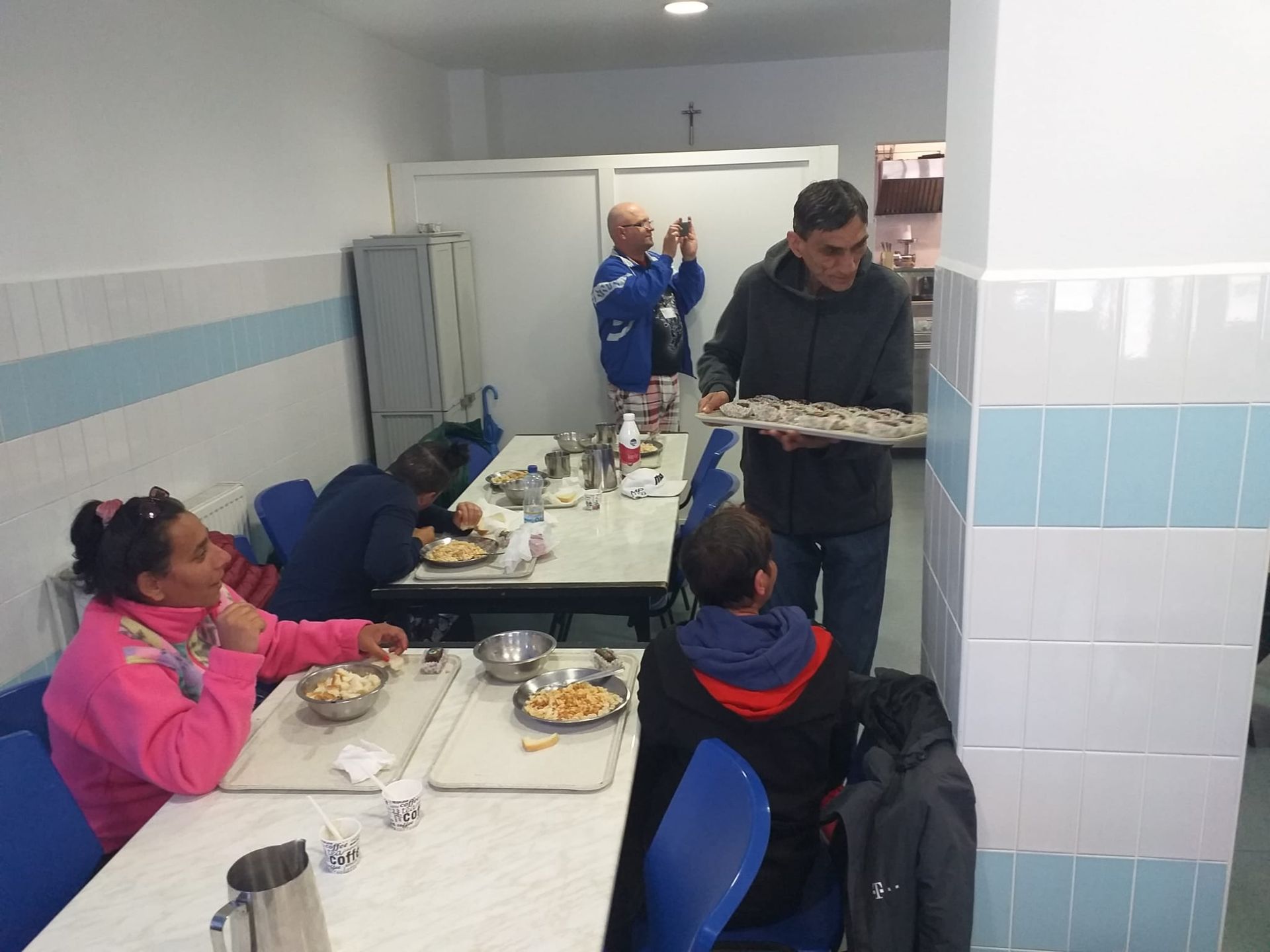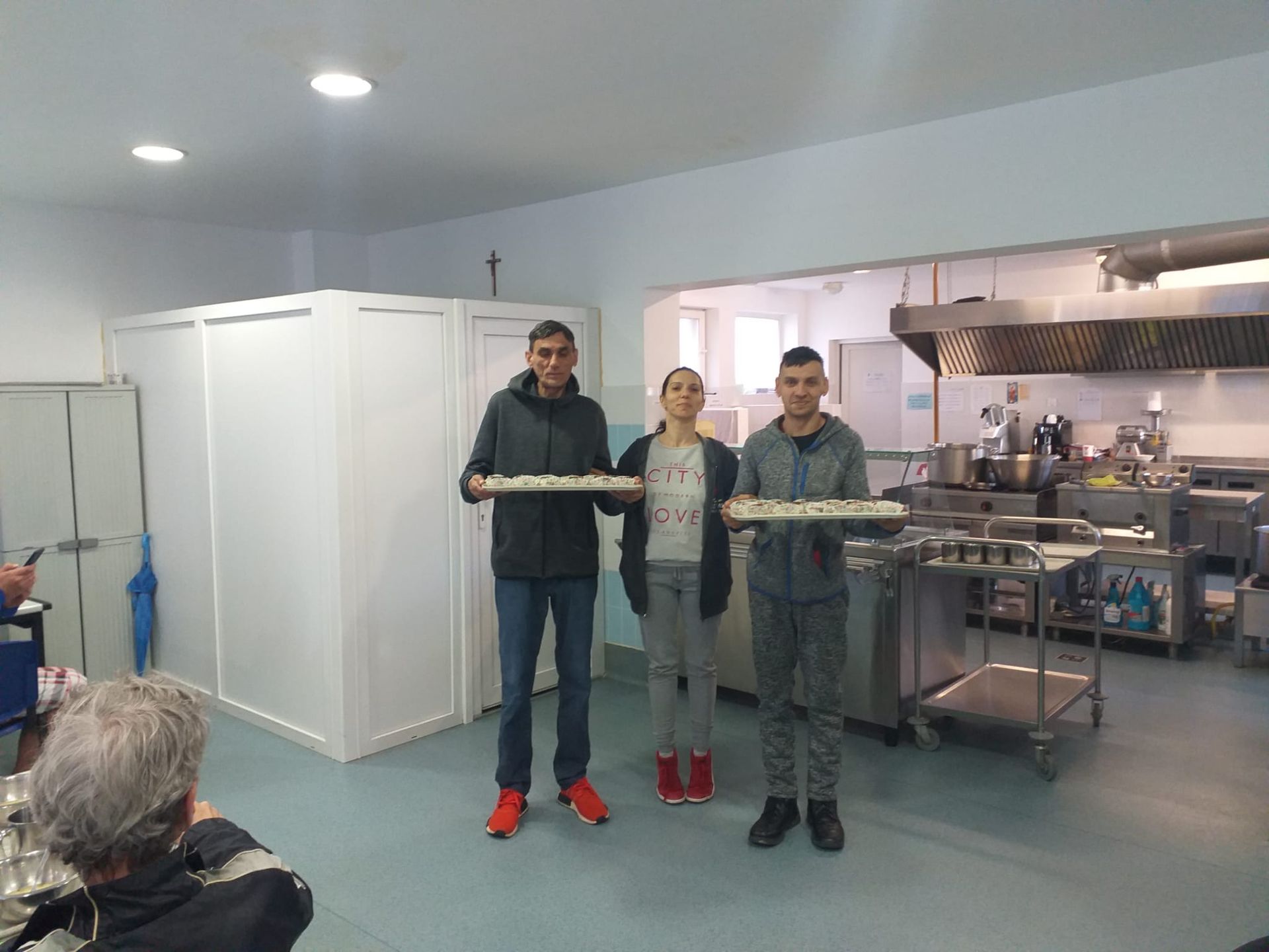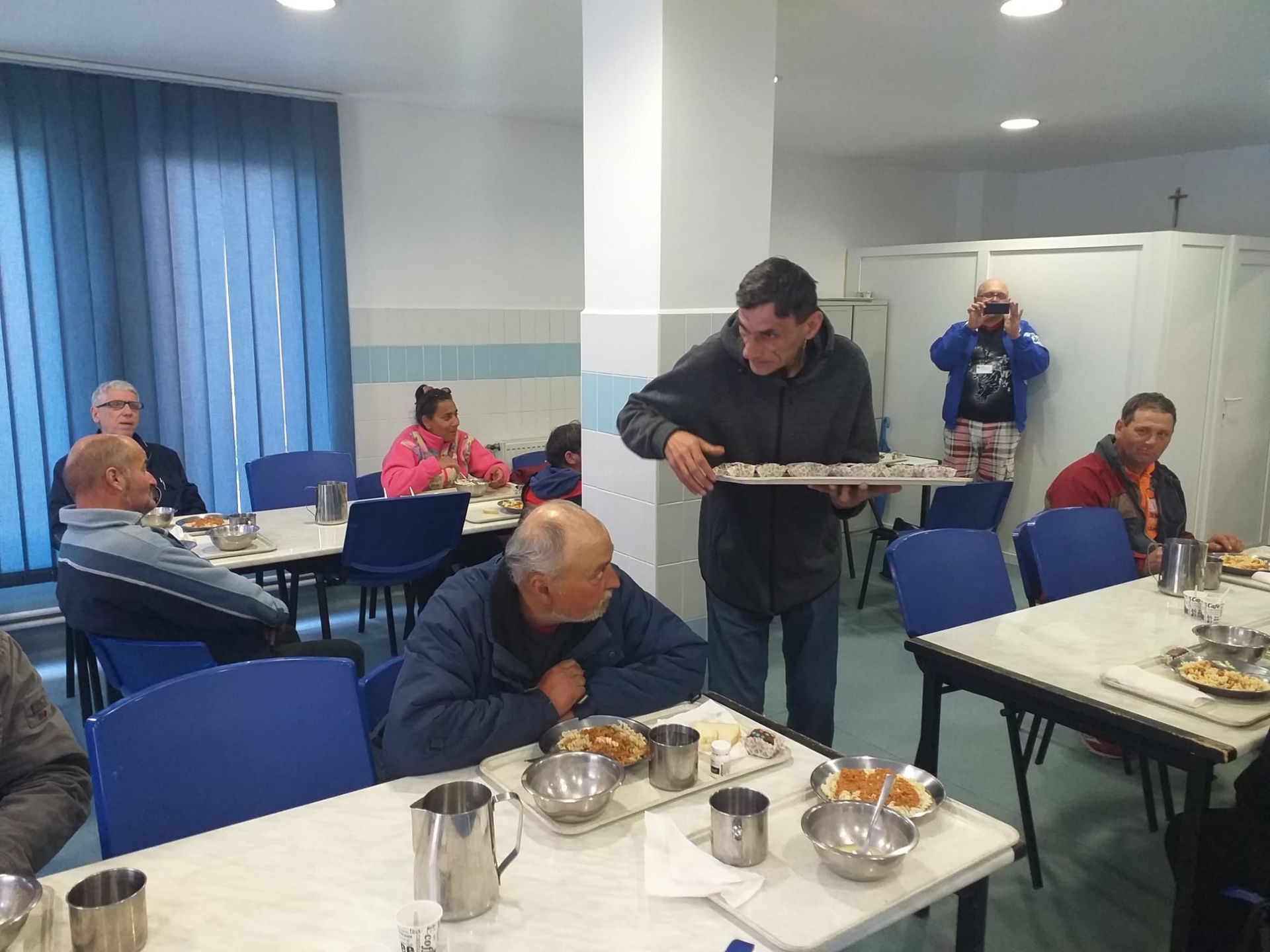 Cu o stângăcie care trădează lipsa de afecțiune care le caracterizează existența, dar și cu momente care au stârnit râsul celorlalți beneficiari prezenți, am servit astăzi un desert delicios pregătit de doamna Cornelia Vesea, care oferă, nu pentru prima dată, toată priceperea sa pentru a aduce zâmbete pe chipurile beneficiarilor cantinei sociale. Mulțumim cu recunoștință nu doar pentru acest desert ci și pentru tot ajutorul pe care îl oferă Asociației Caritas Eparhial Oradea, în calitate de voluntar al organizației!