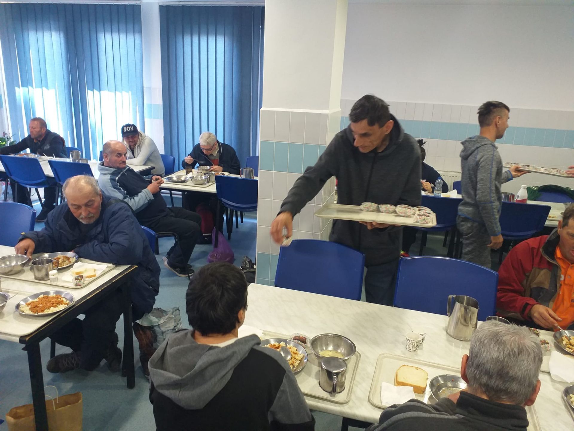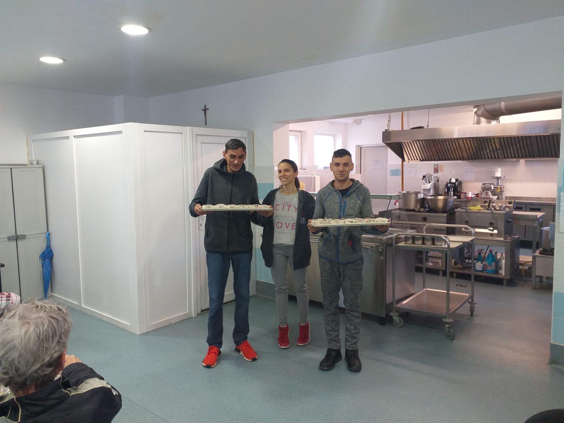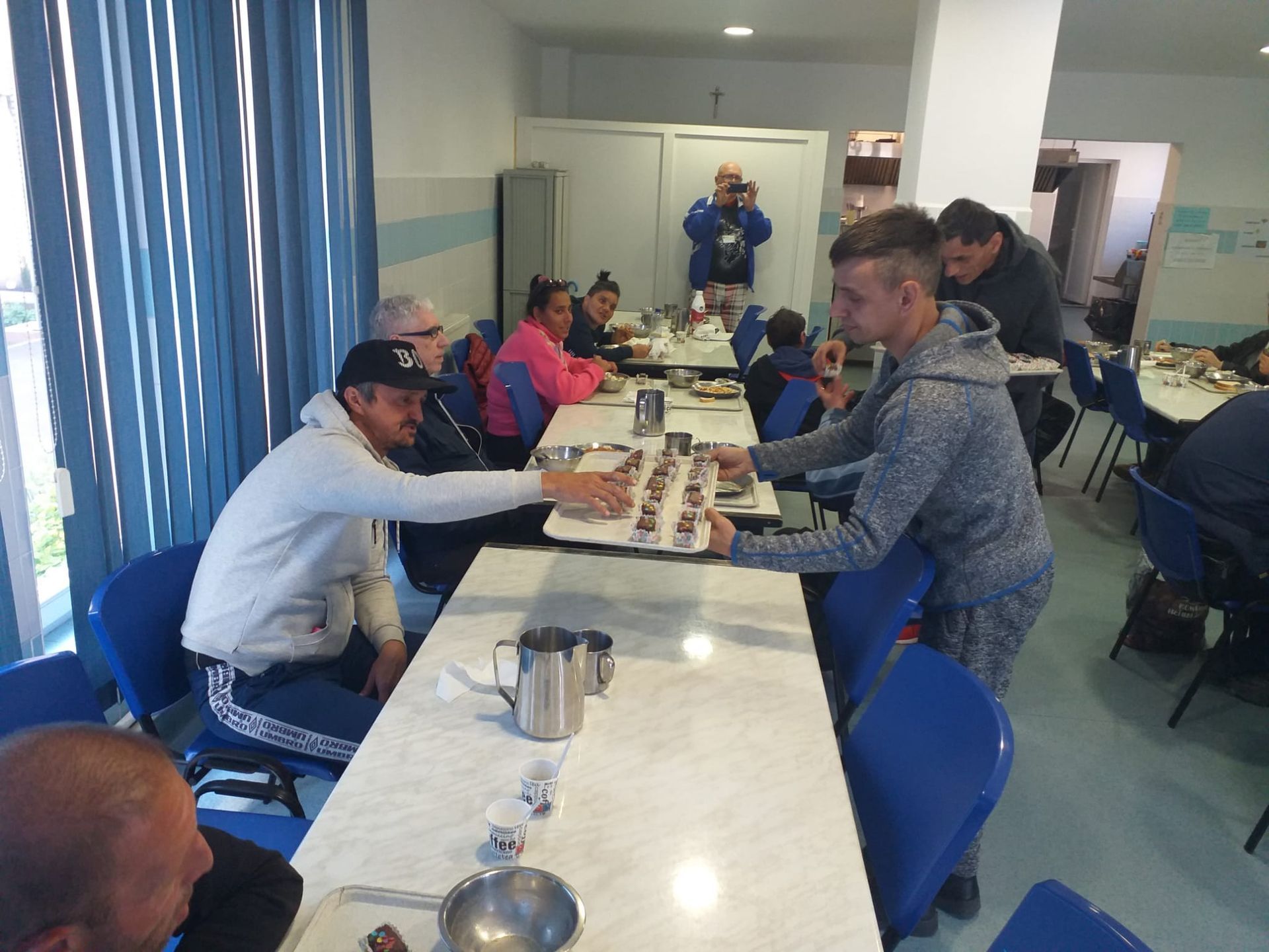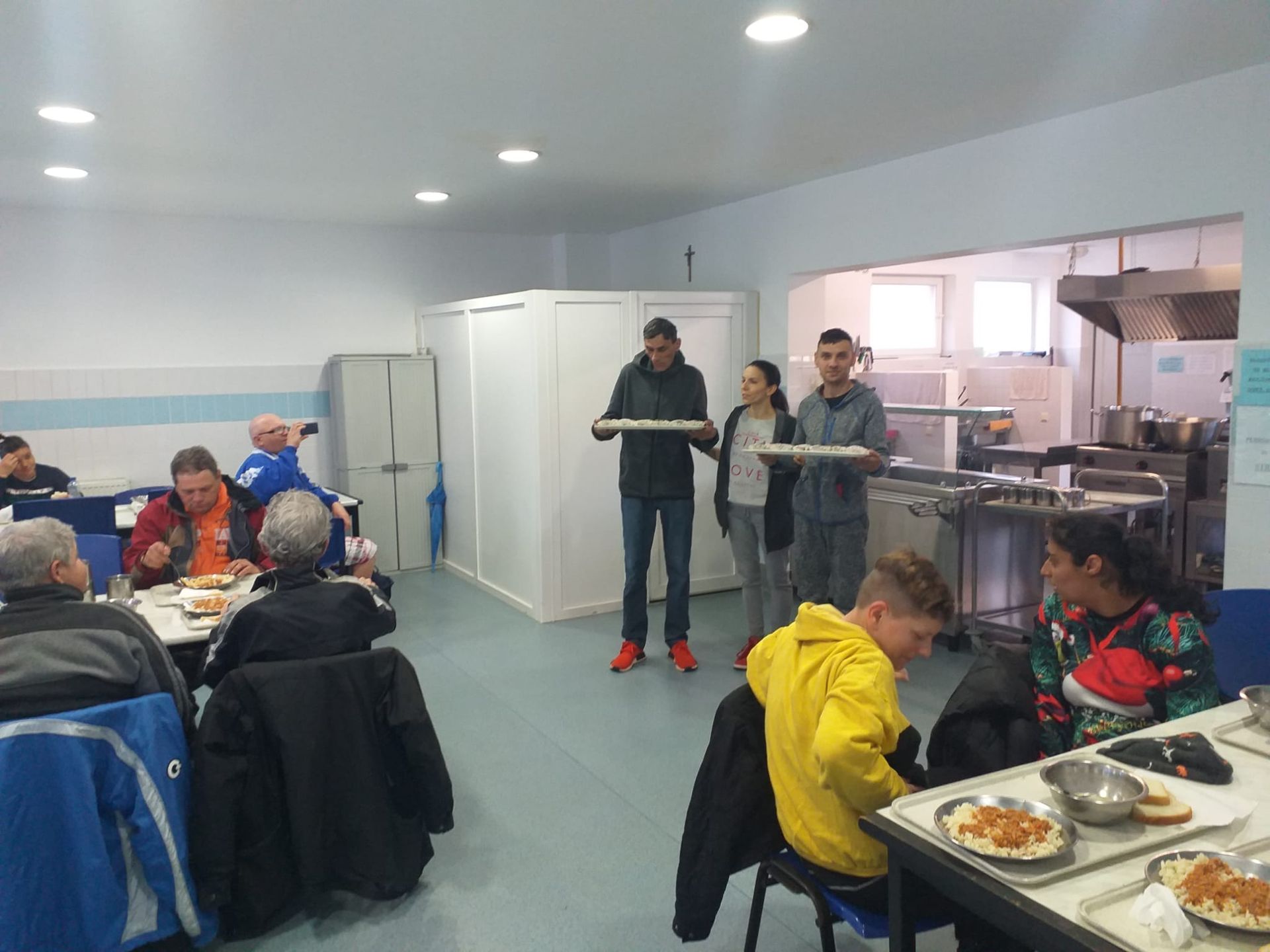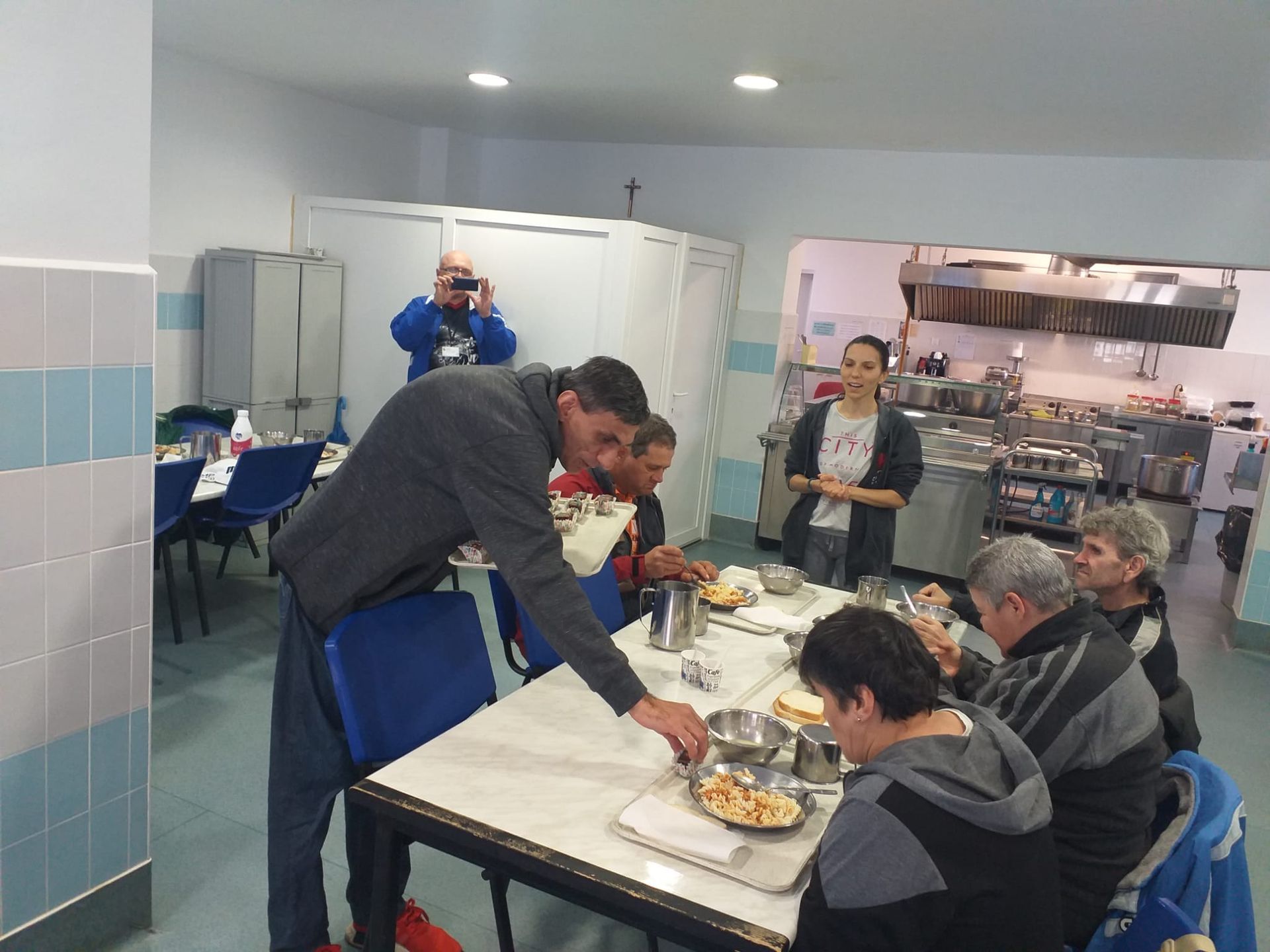 Cu o stângăcie care trădează lipsa de afecțiune care le caracterizează existența, dar și cu momente care au stârnit râsul celorlalți beneficiari prezenți, am servit astăzi un desert delicios pregătit de doamna Cornelia Vesea, care oferă, nu pentru prima dată, toată priceperea sa pentru a aduce zâmbete pe chipurile beneficiarilor cantinei sociale. Mulțumim cu recunoștință nu doar pentru acest desert ci și pentru tot ajutorul pe care îl oferă Asociației Caritas Eparhial Oradea, în calitate de voluntar al organizației!