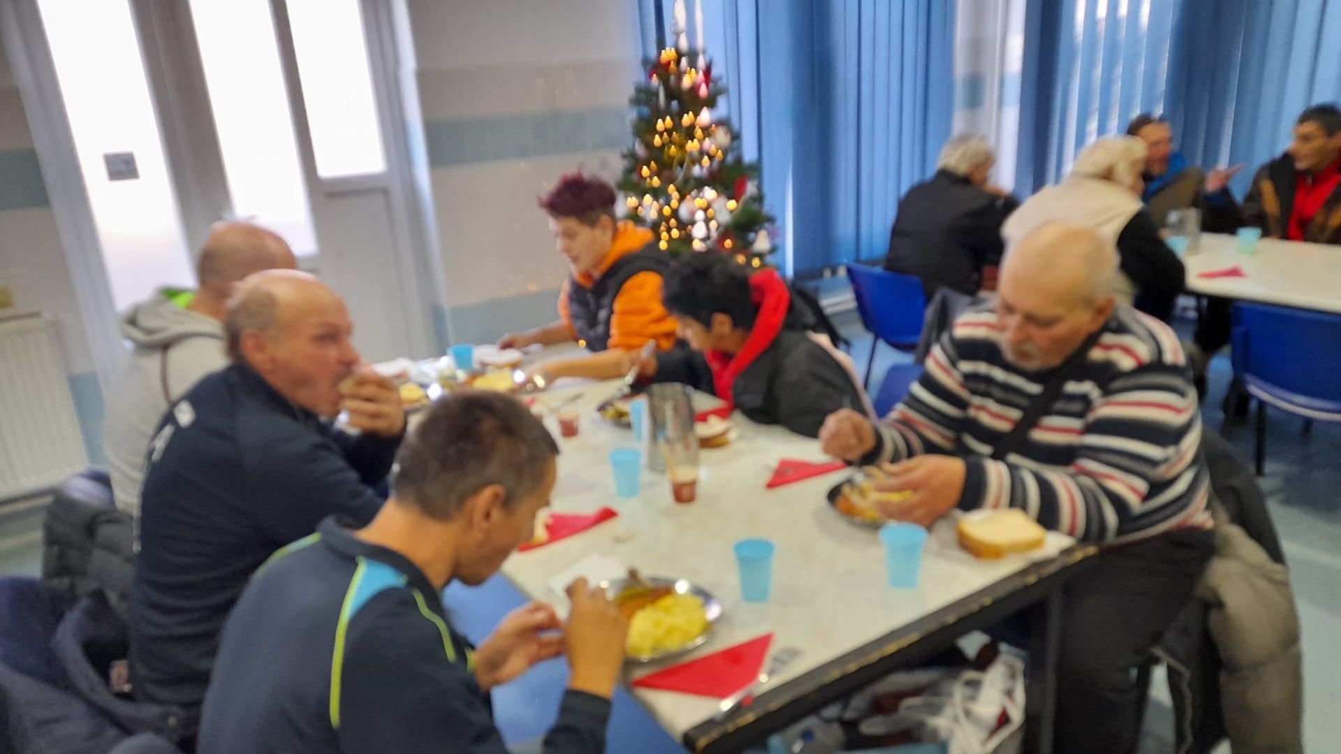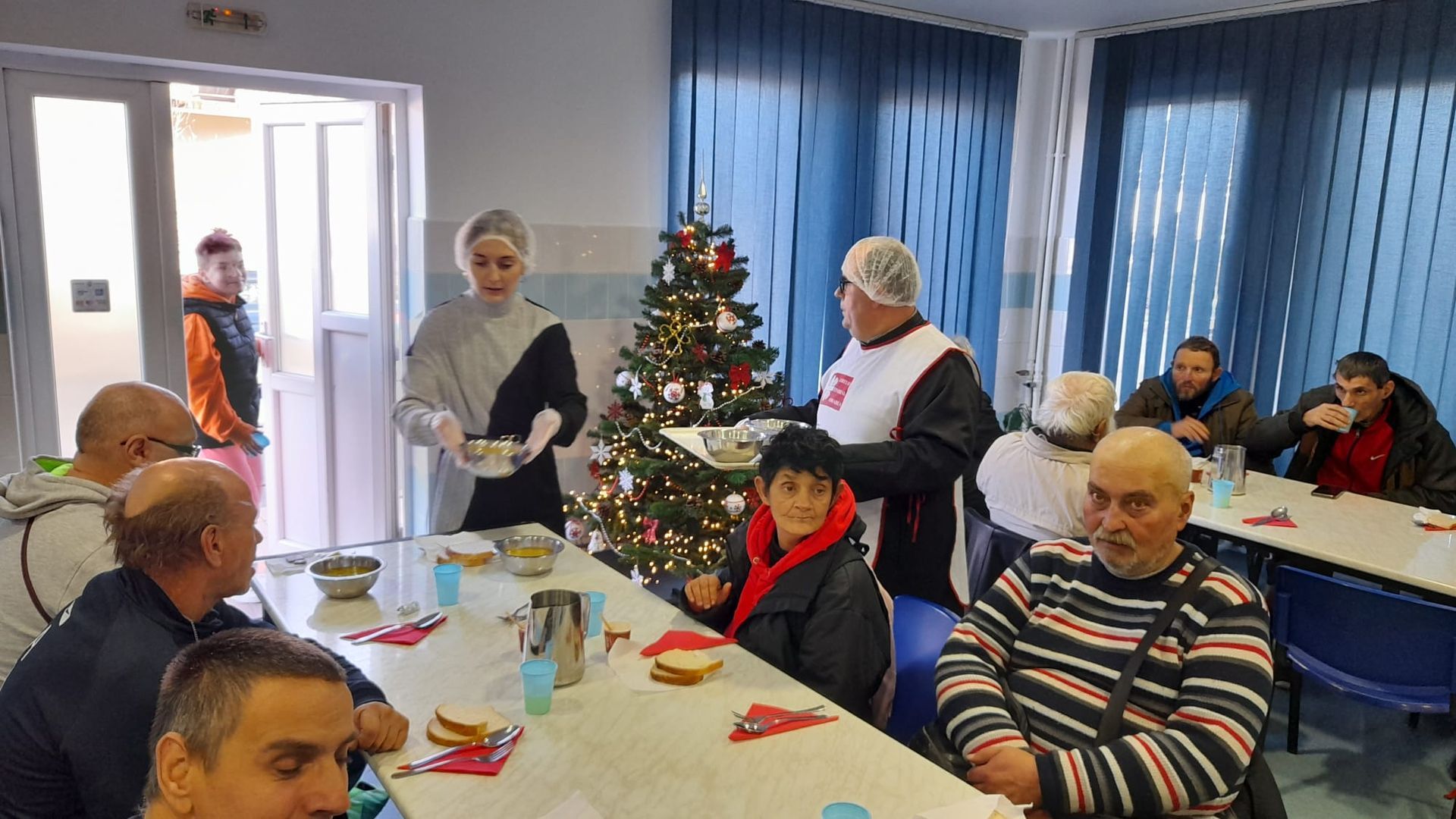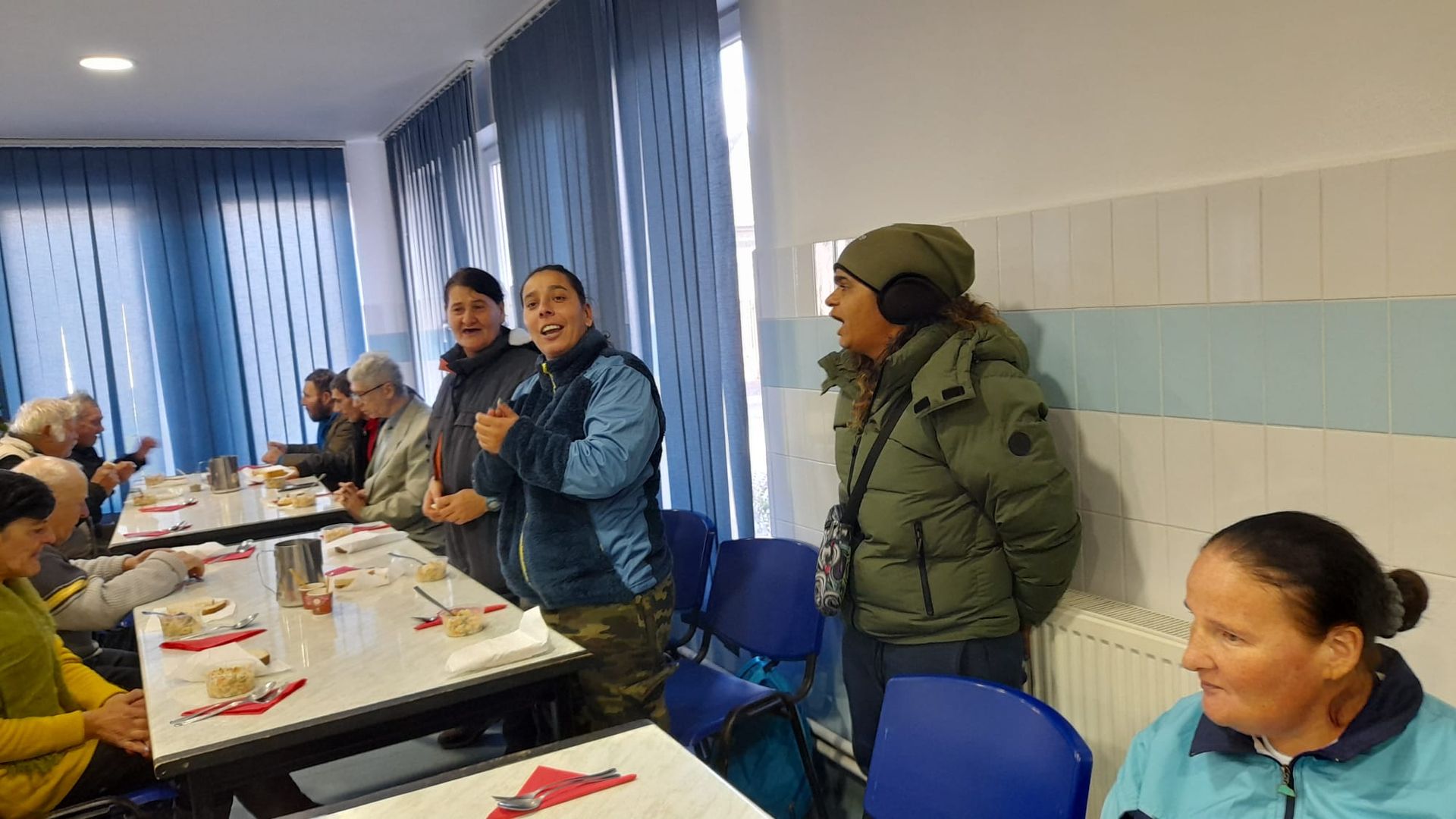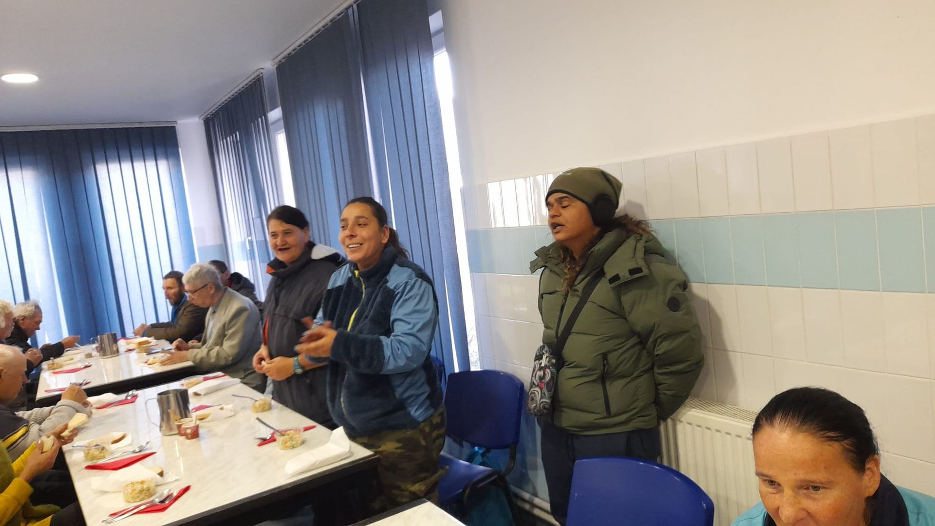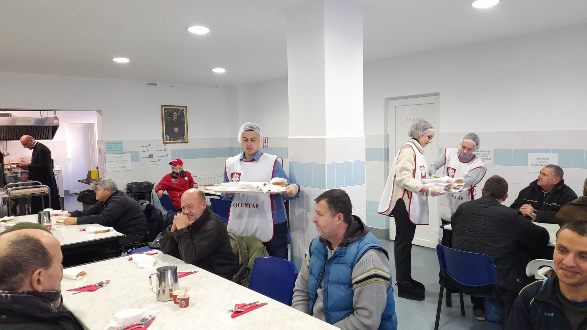 Atmosfera a fost una veselă, prietenoasă, familială. S-a râs, s-a socializat și, la plecare, beneficiarii constanți ai serviciului social au primit un pachet cu hrană rece pentru zilele în care cantina va fi închisă, dar și un pachet cu articole de îmbrăcăminte de care au nevoie în sezonul rece. La sfârșitul evenimentului, voluntarii prezenți au asigurat curățenia în sala de mese pentru ca spațiul să fie curat și primitor pentru cei mai sărmani dintre noi.